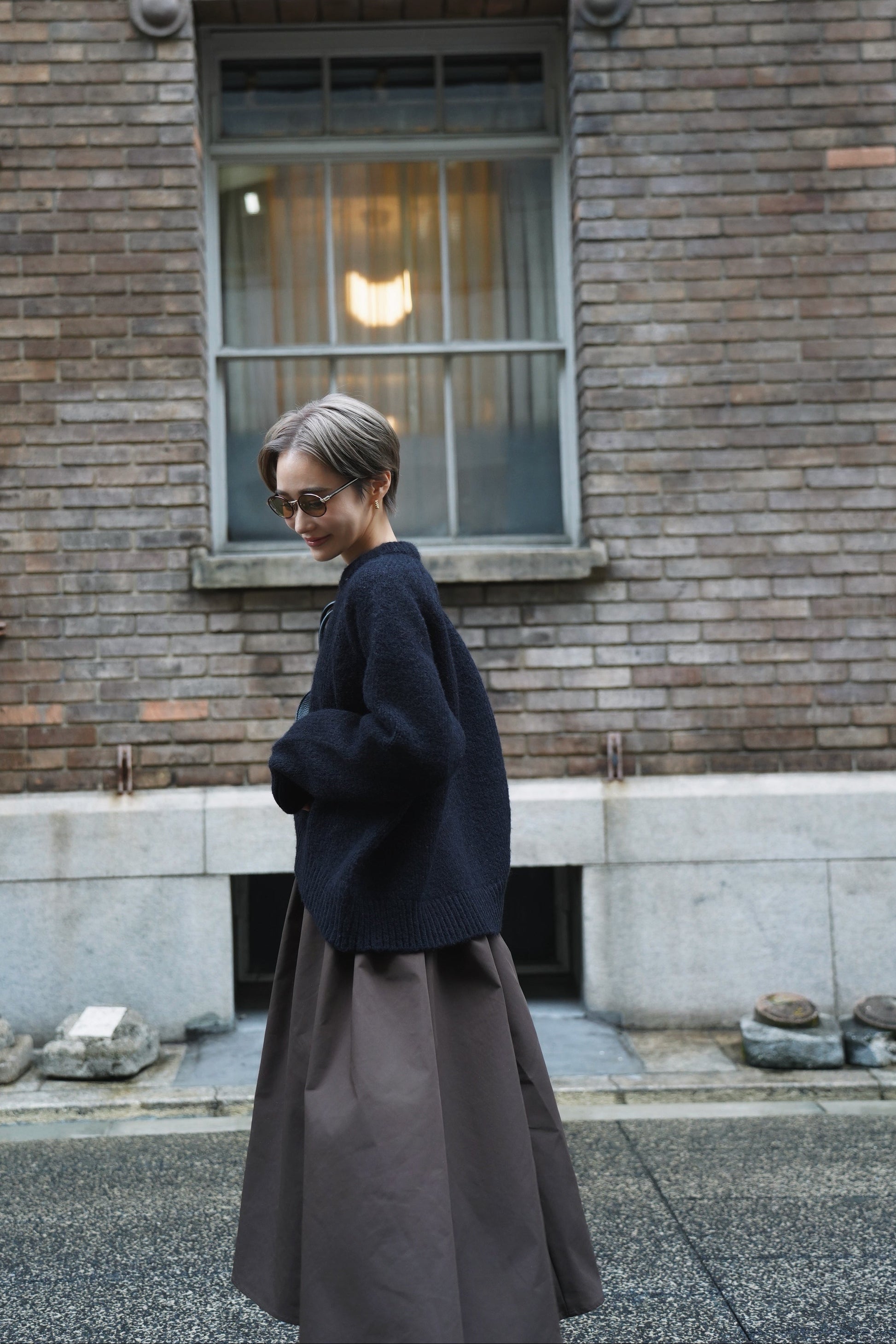 ハリのある素材が生み出す立体的なボリュームと、美しいドレープが特徴。