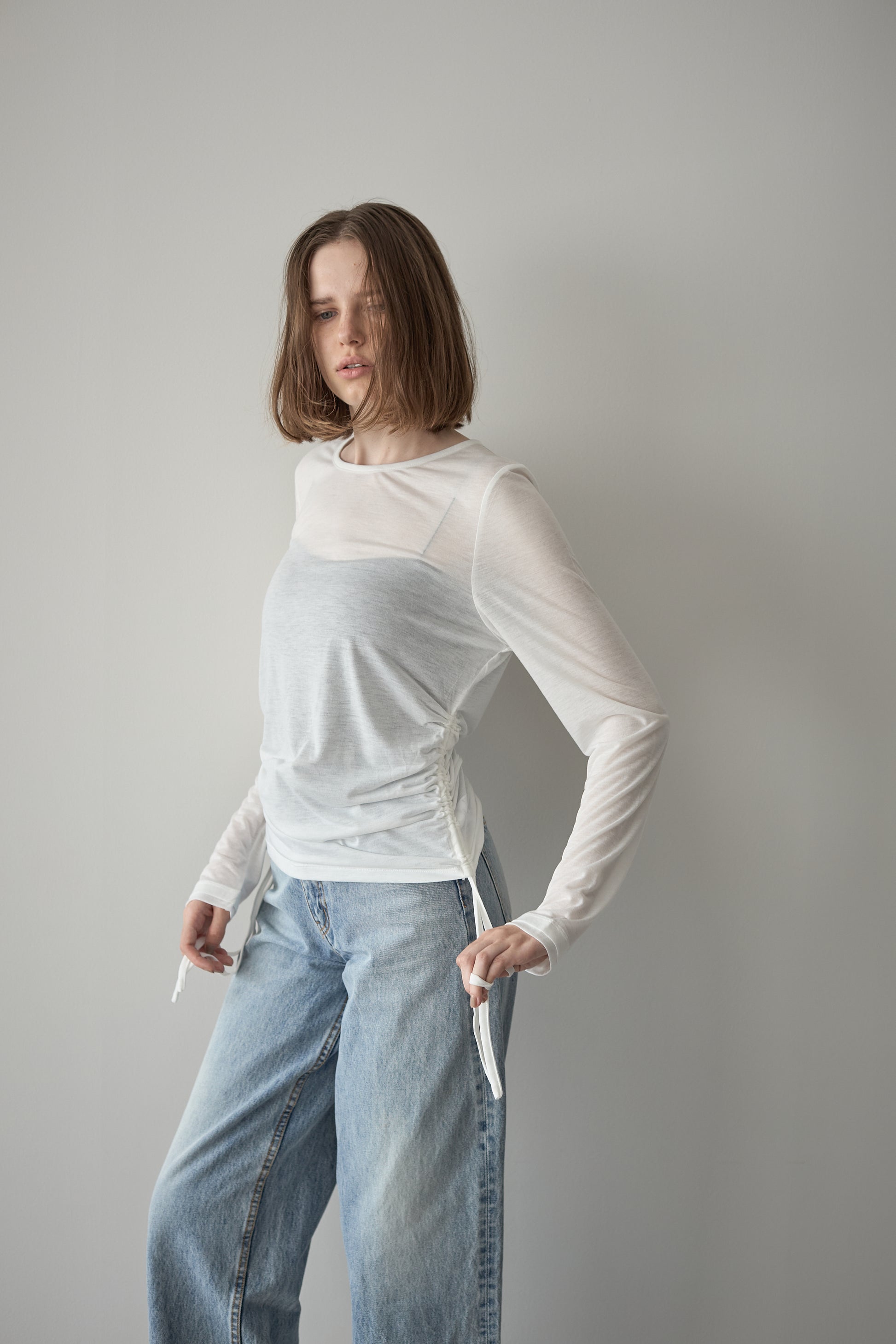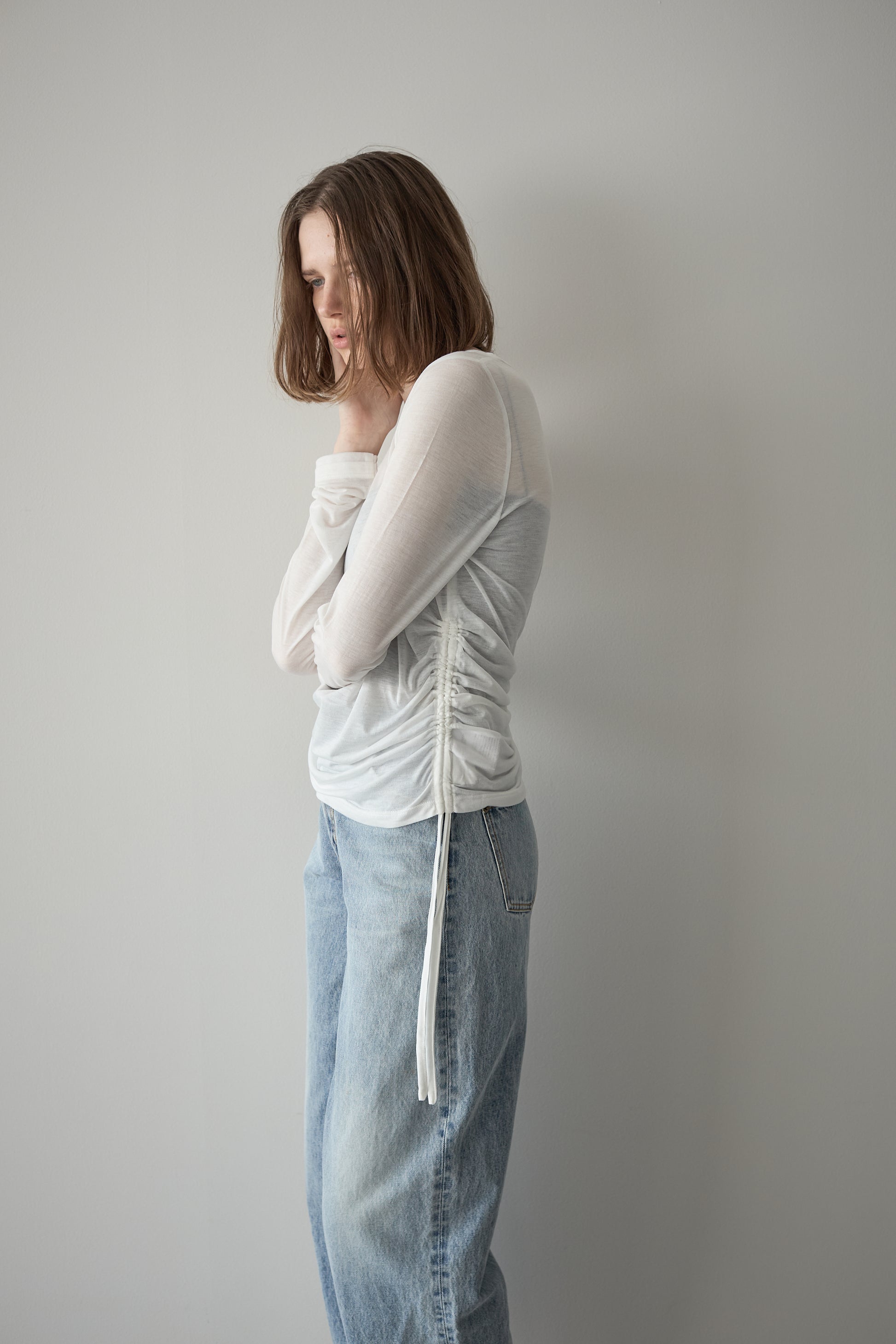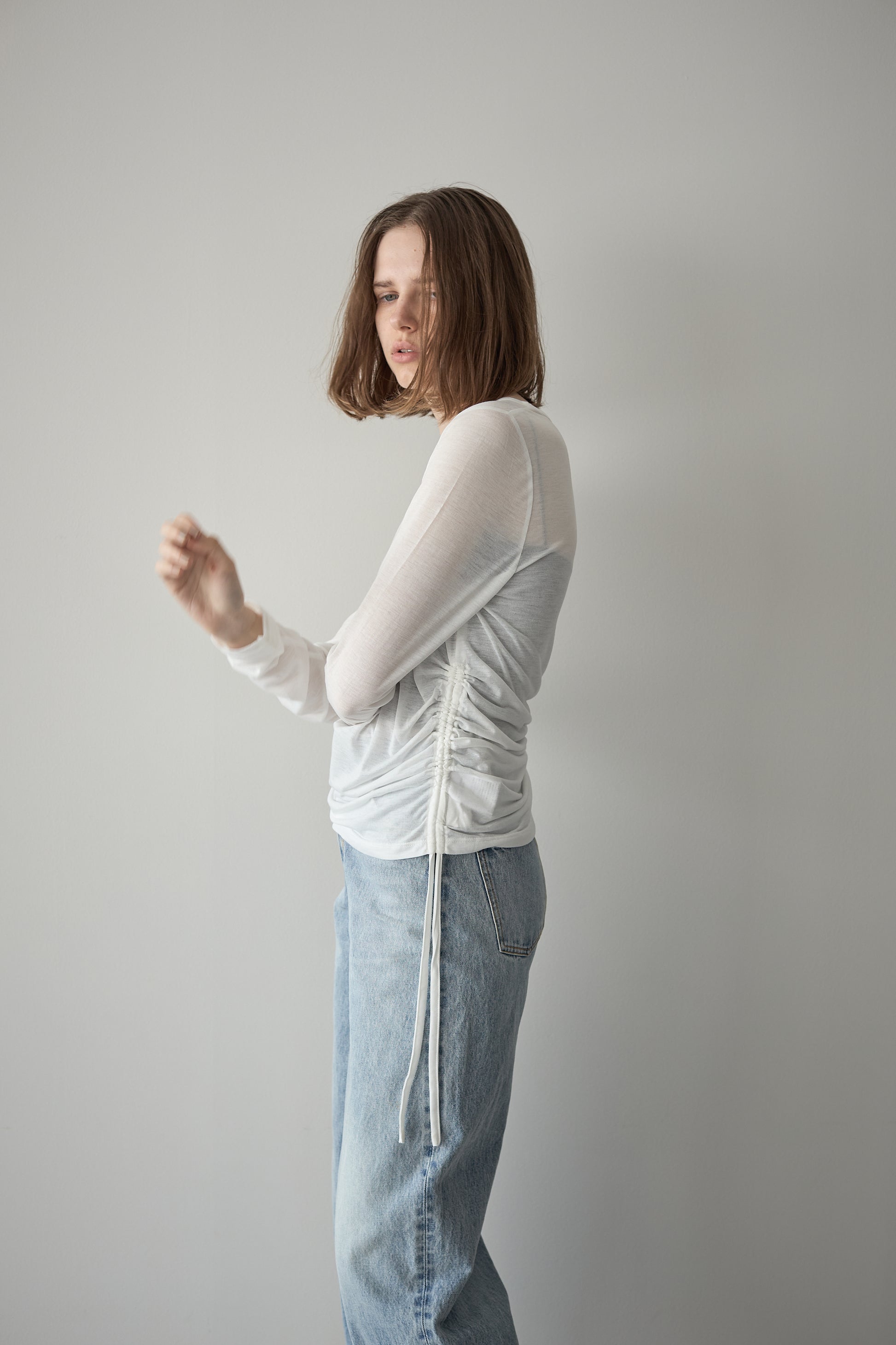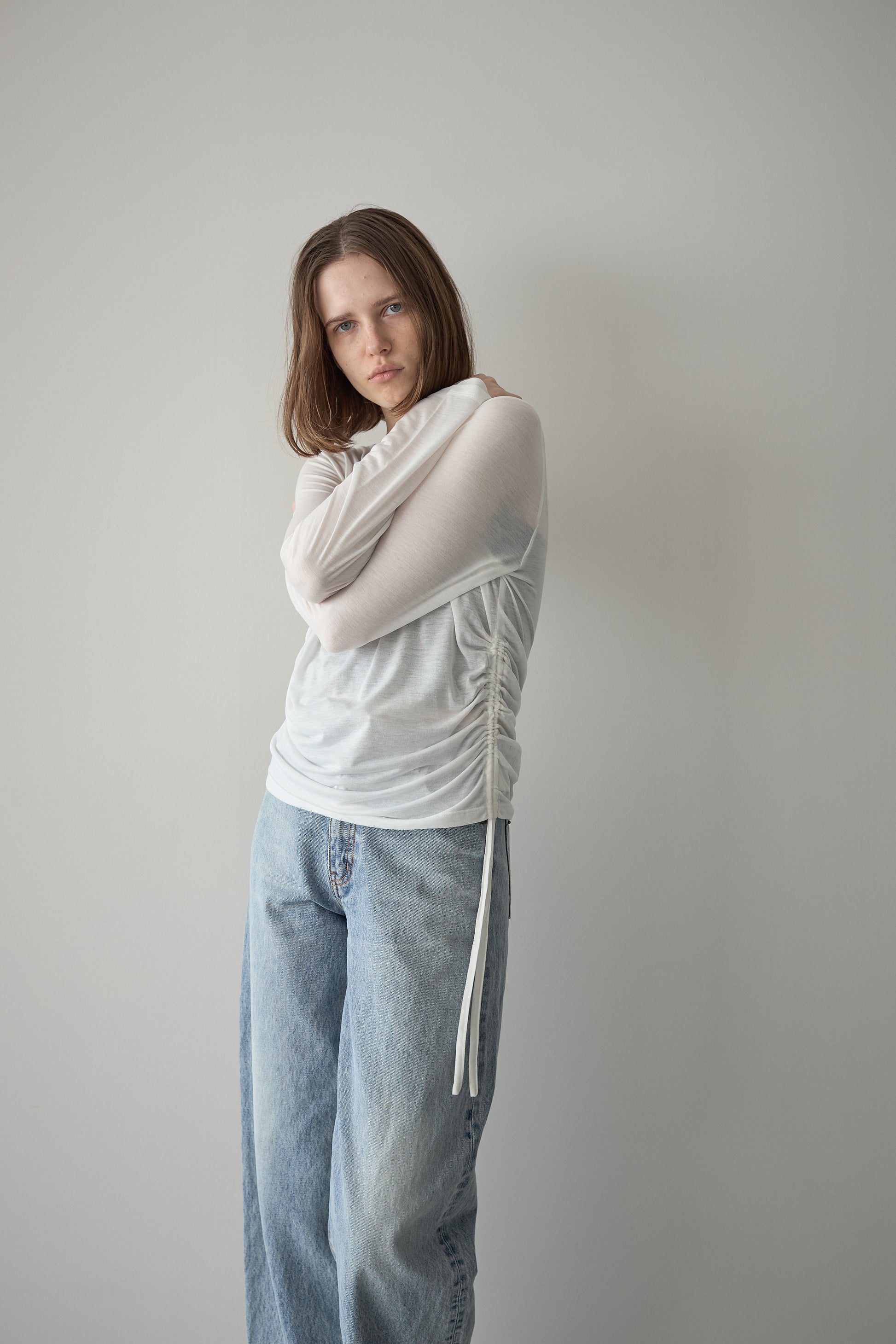 “ふんわり軽やかなシアー素材で仕立てた、サイドギャザーTEEが登場”