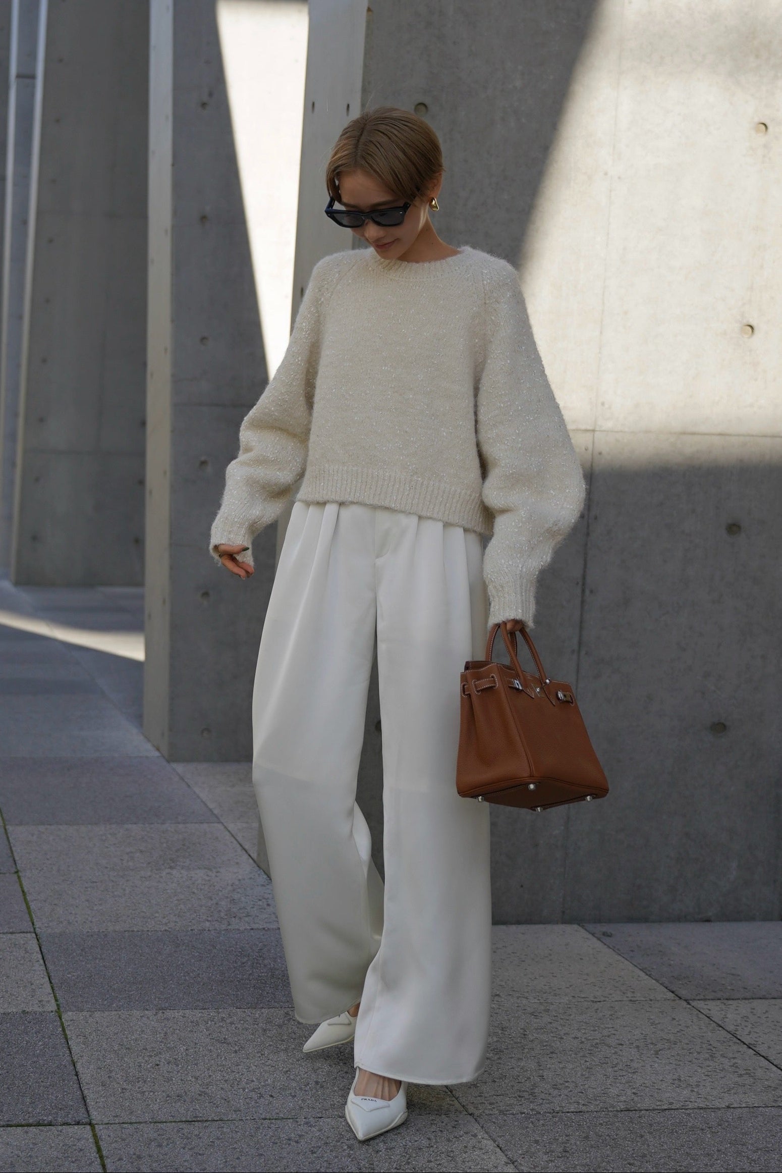 Satin wide pants [WHITE]