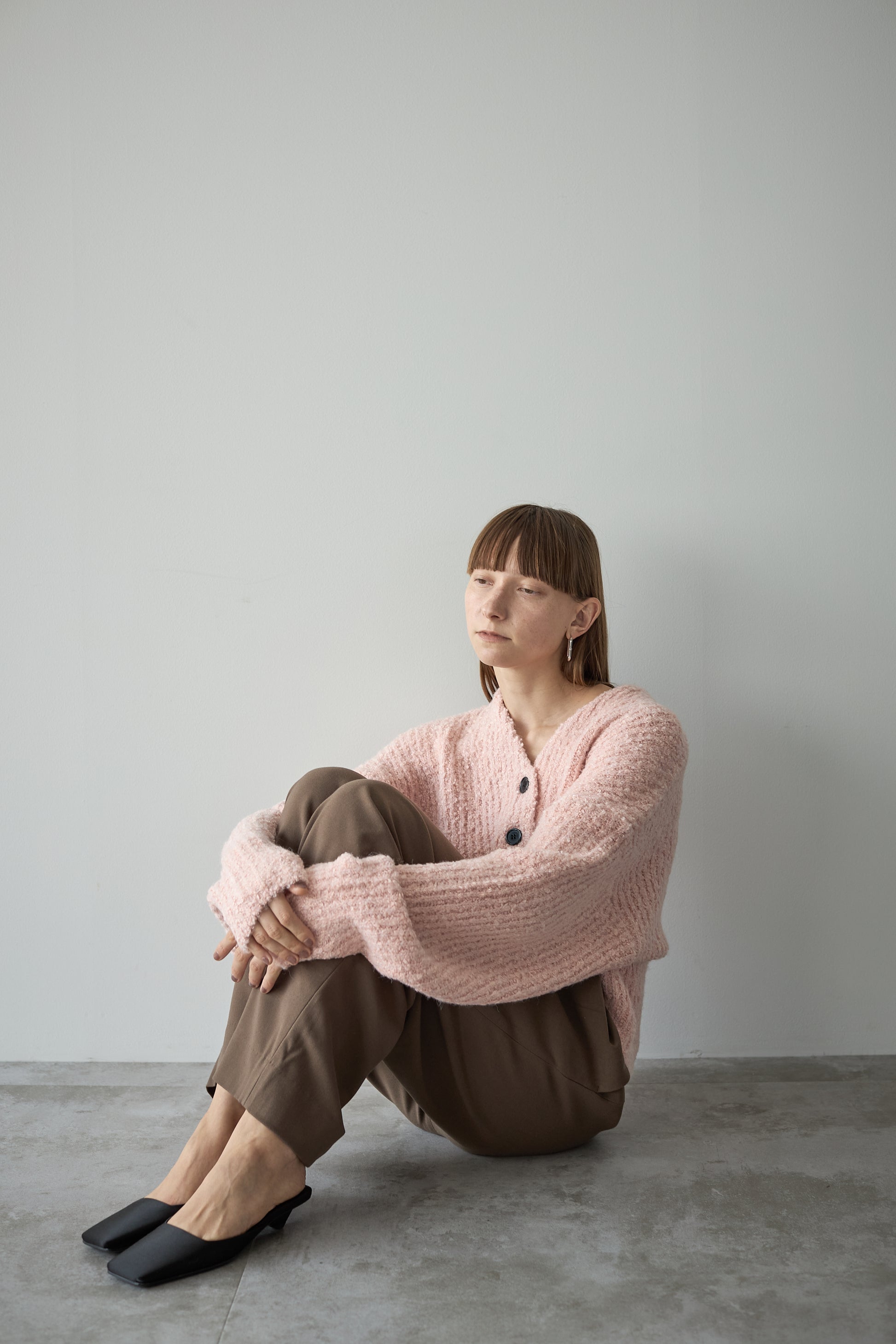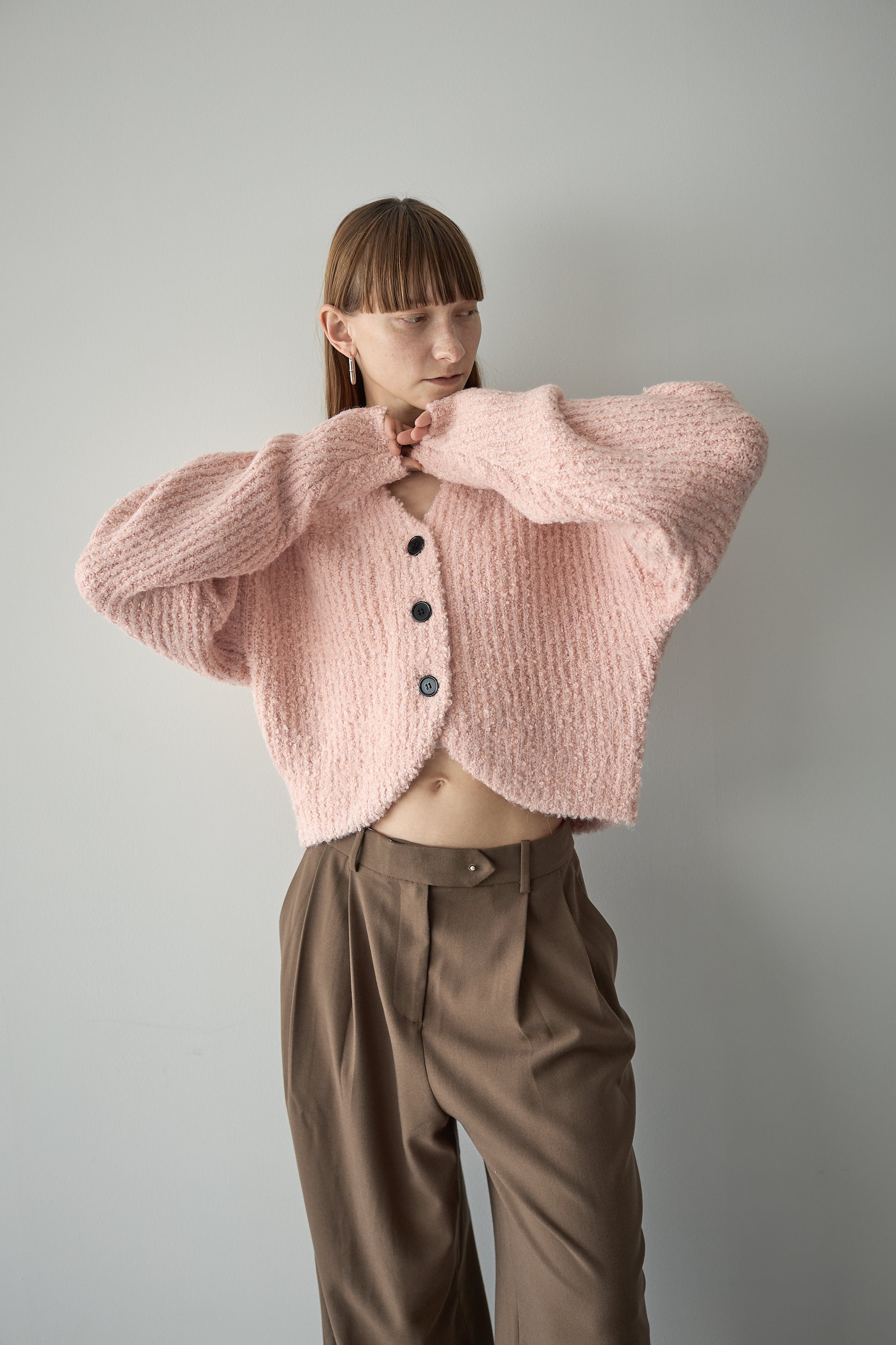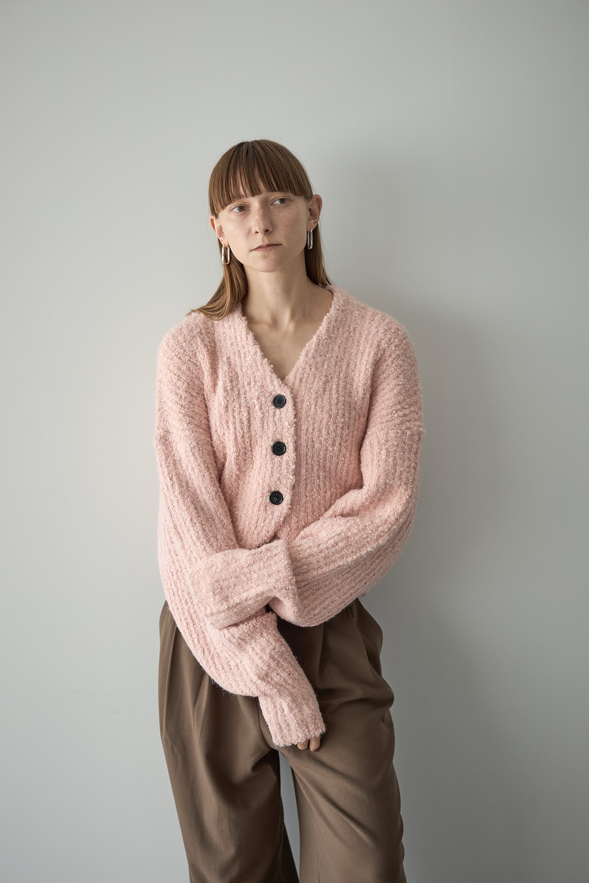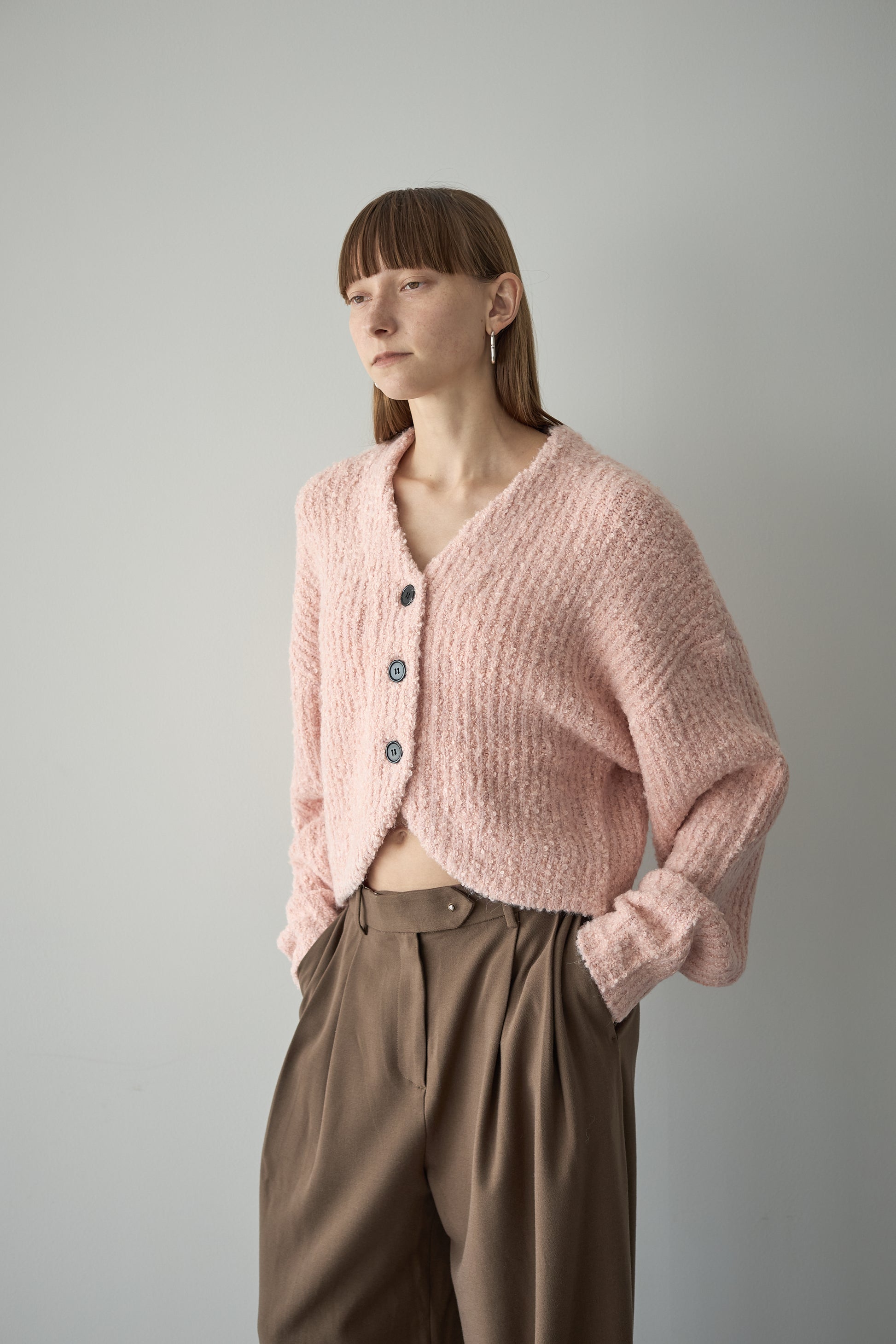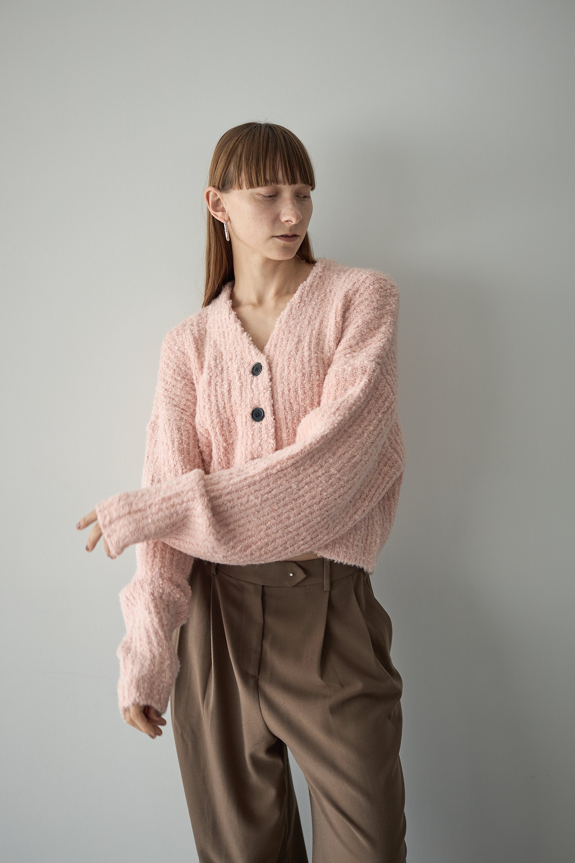 ブークレならではの表情豊かな質感が魅力のショートカーディガン。
