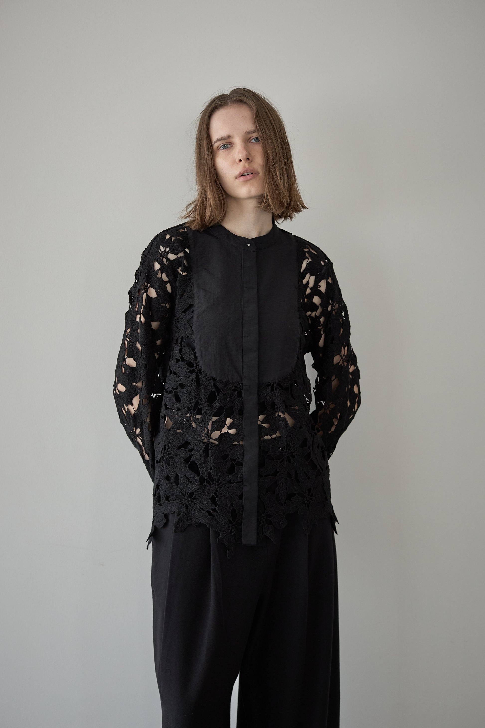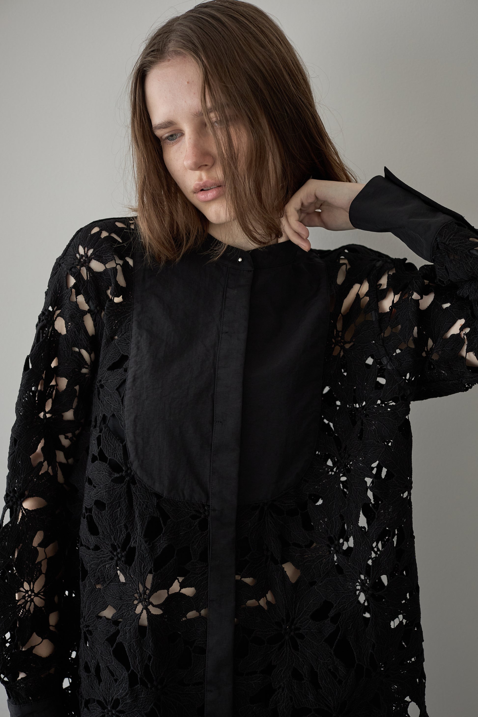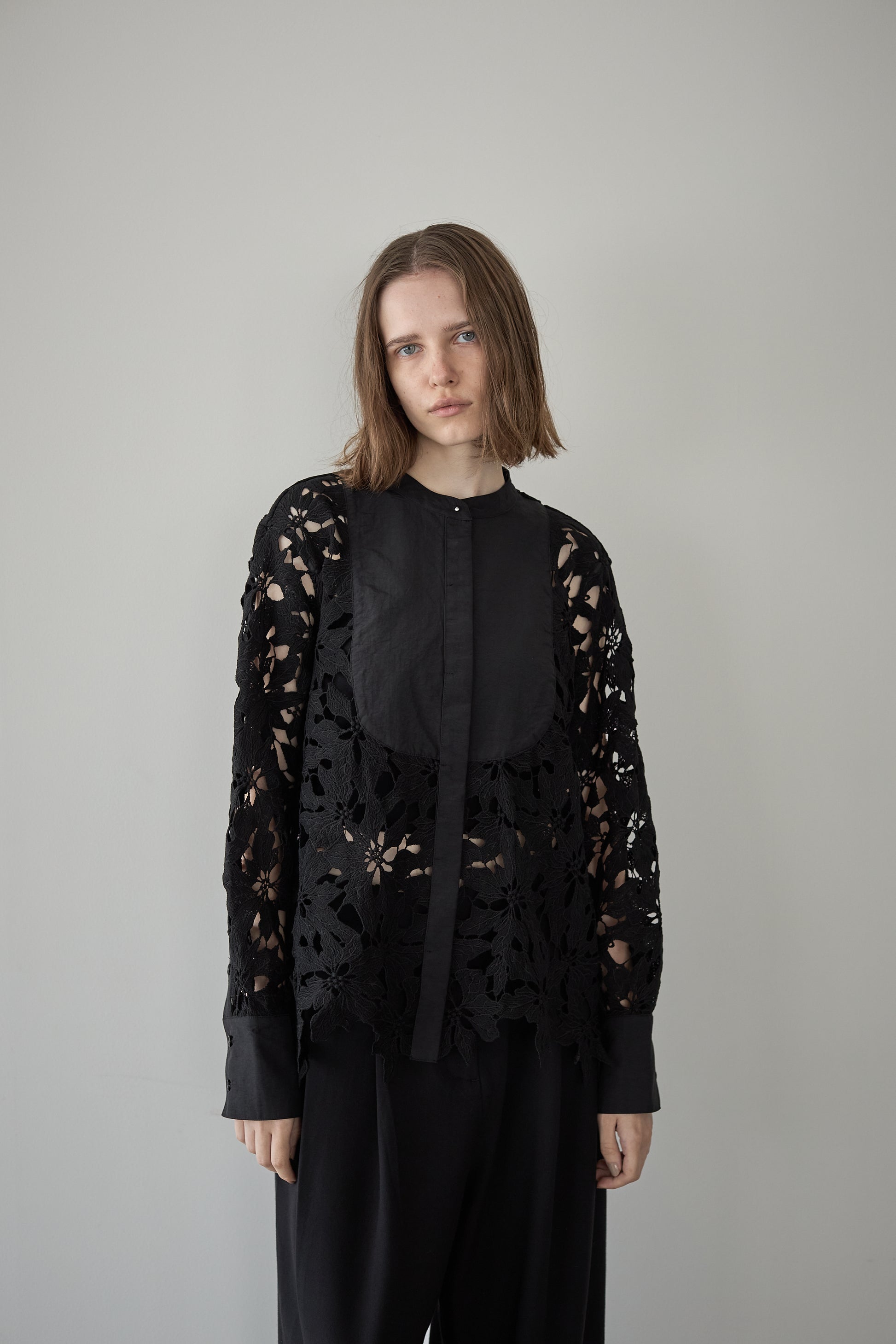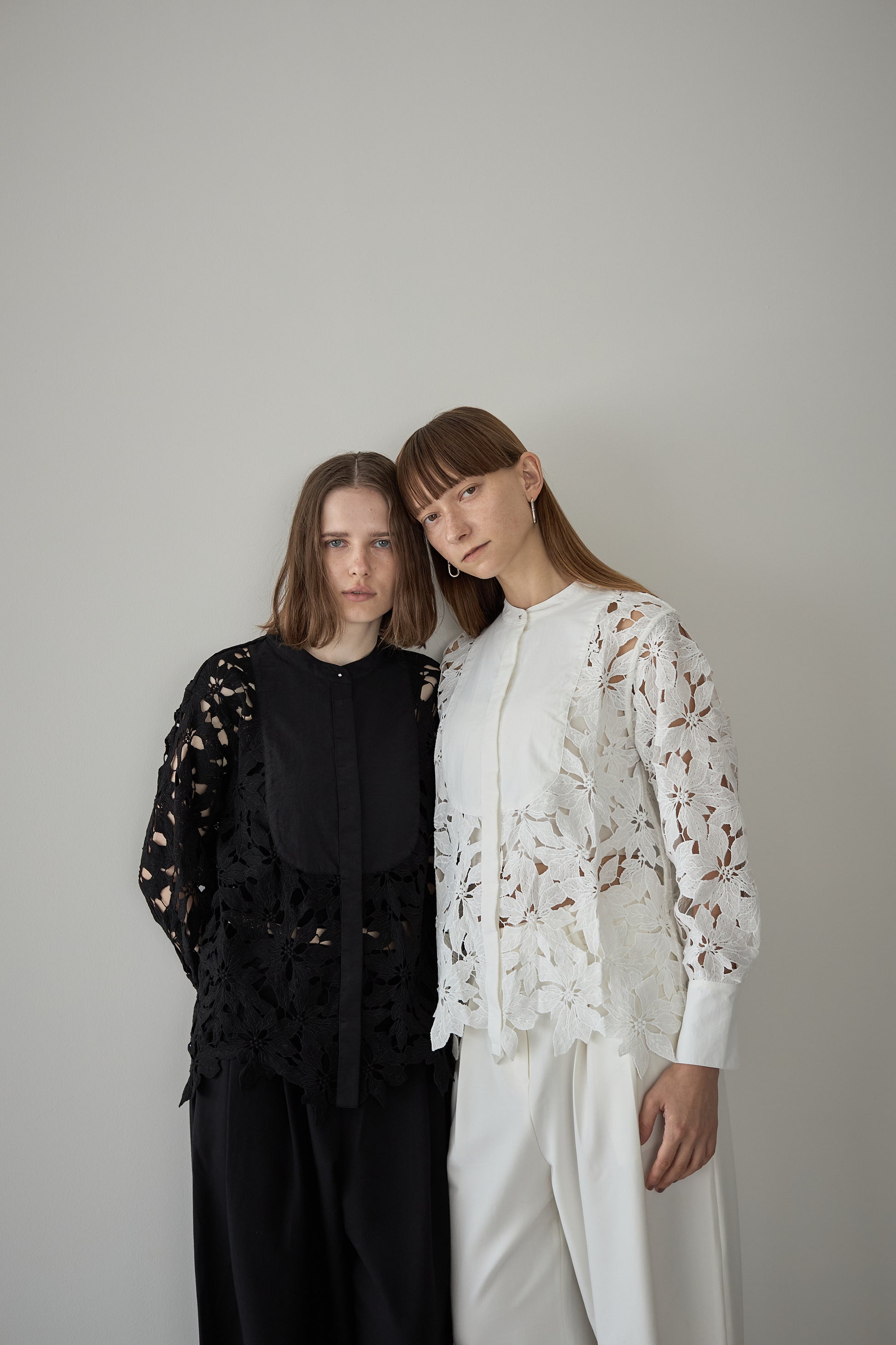 "繊細なレースで魅せる、上品なスタンドカラーレースシャツ"