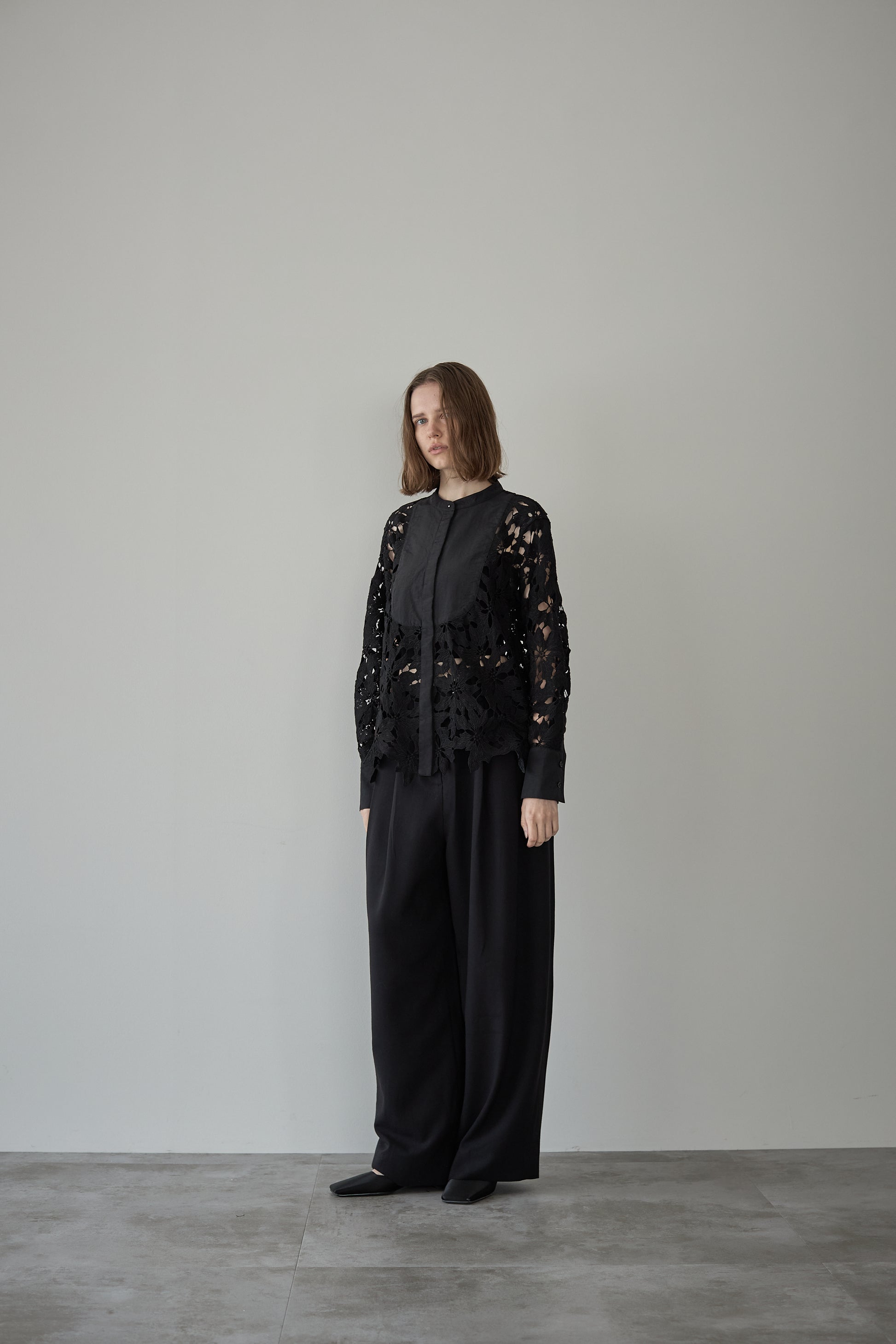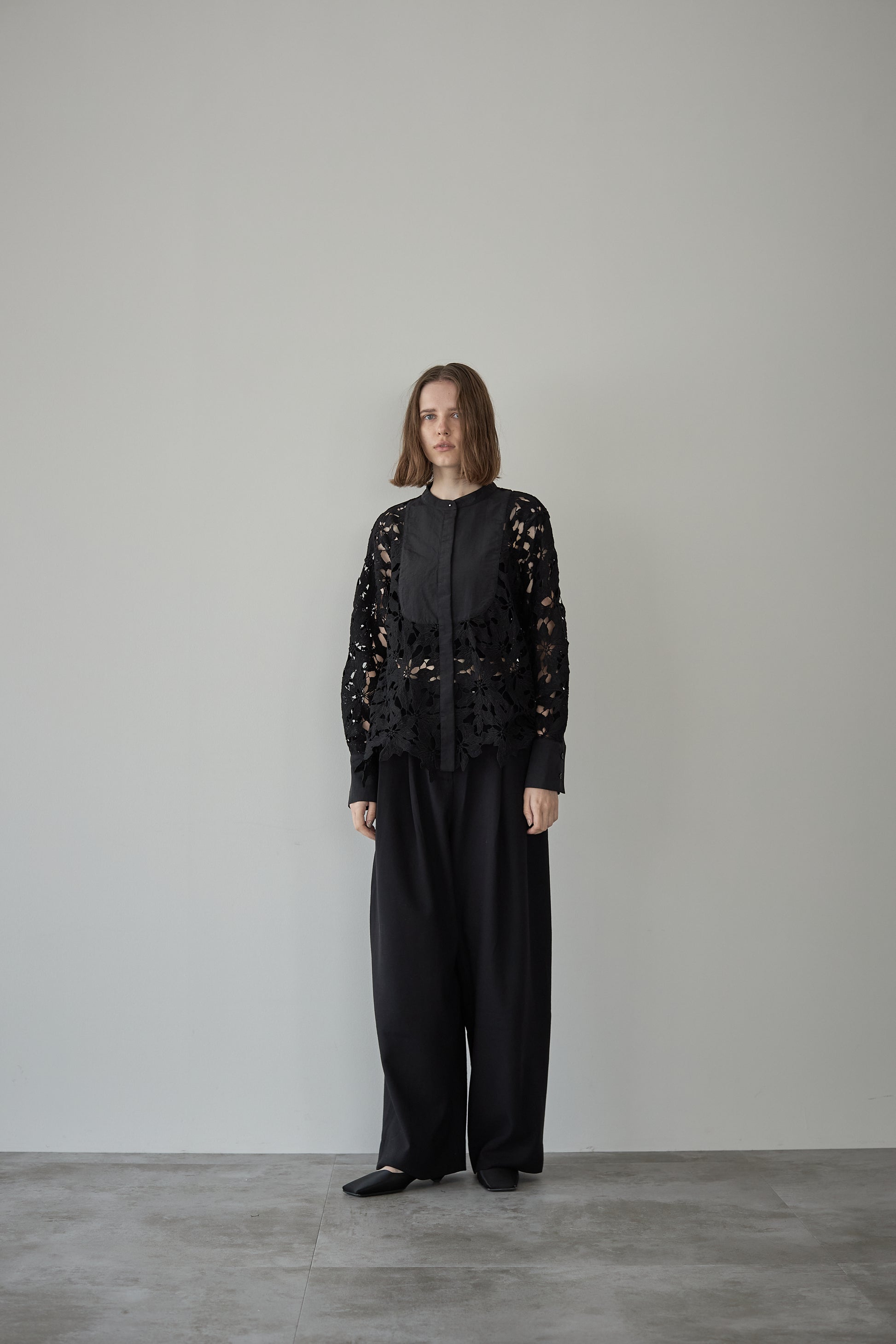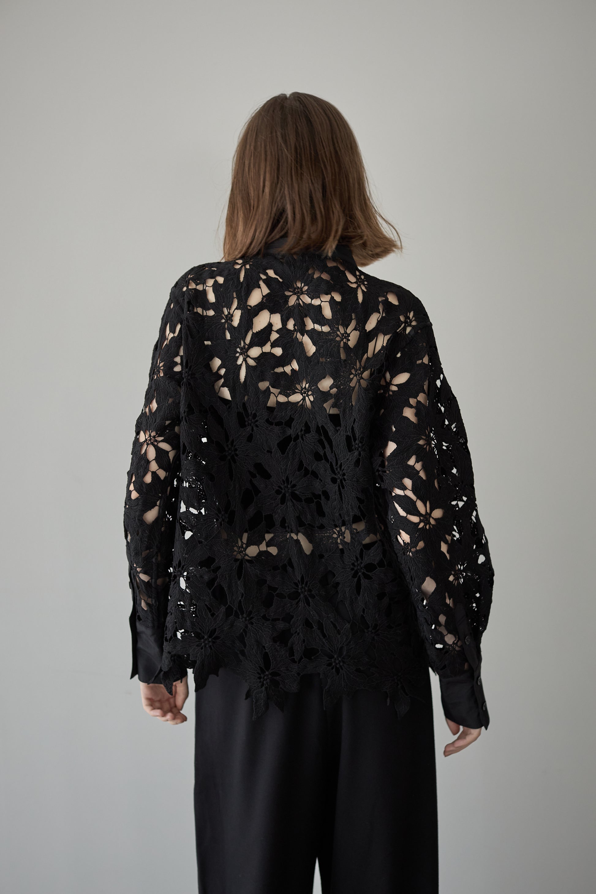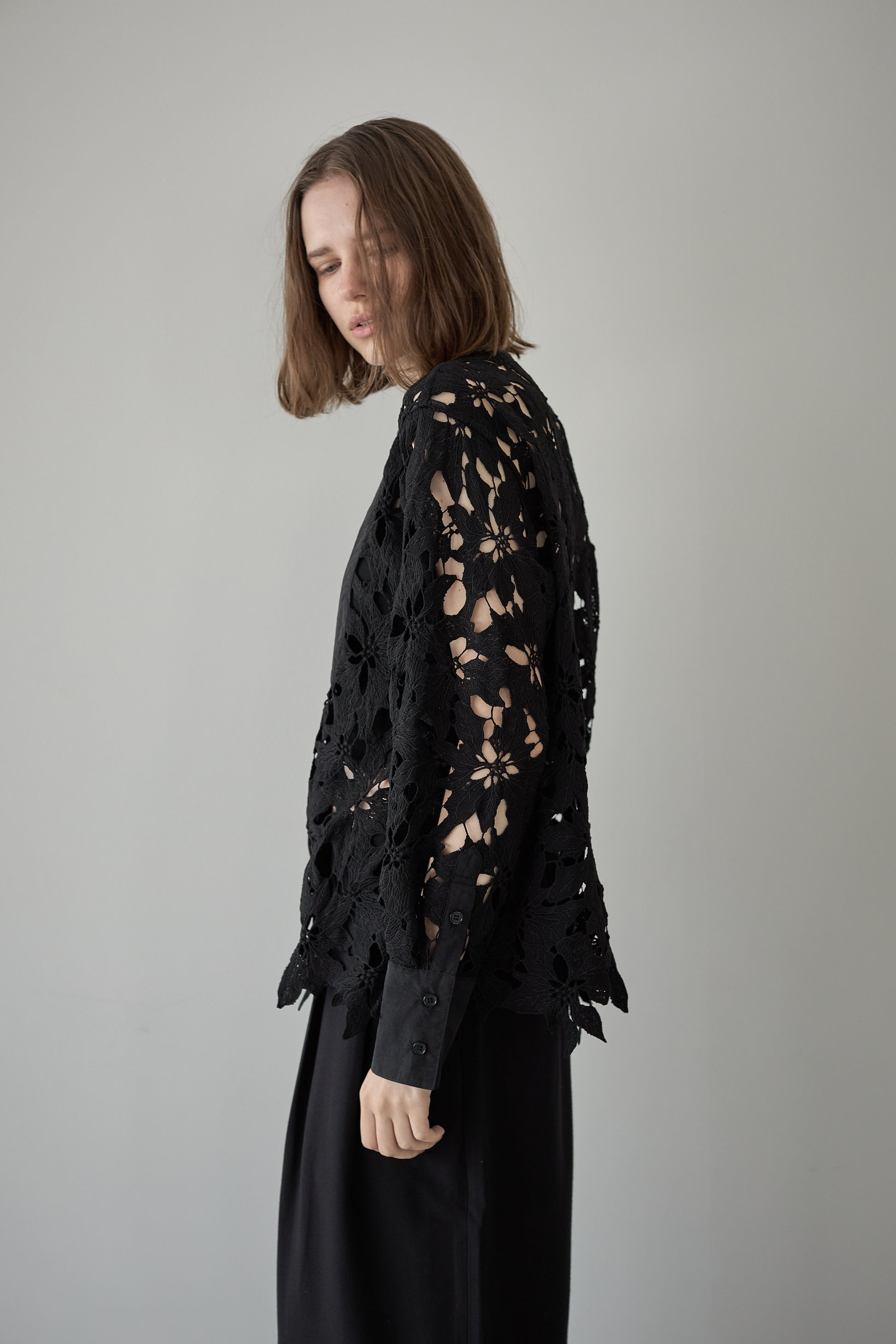 "繊細なレースで魅せる、上品なスタンドカラーレースシャツ"