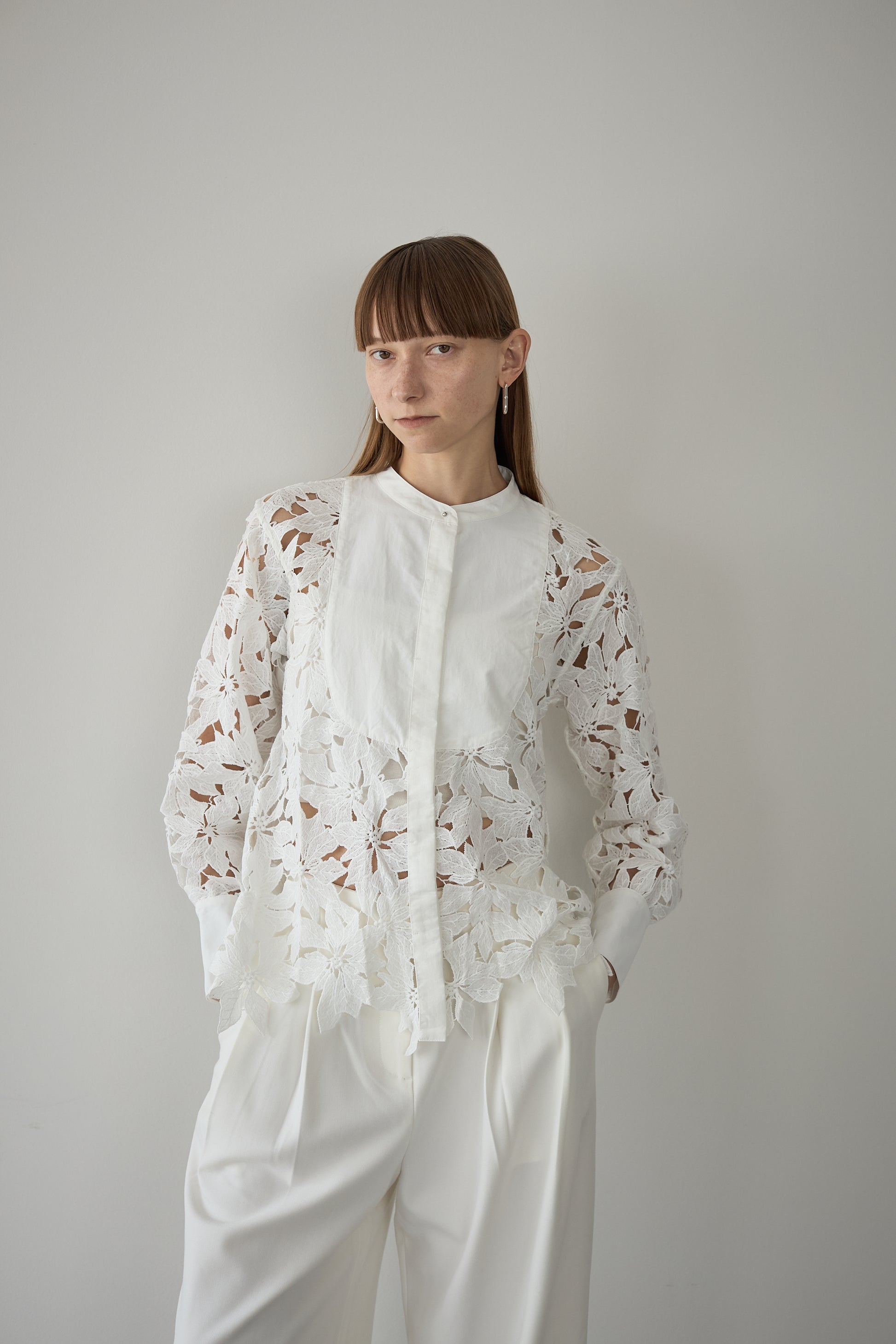 スタンドカラーレースシャツ【WHITE】