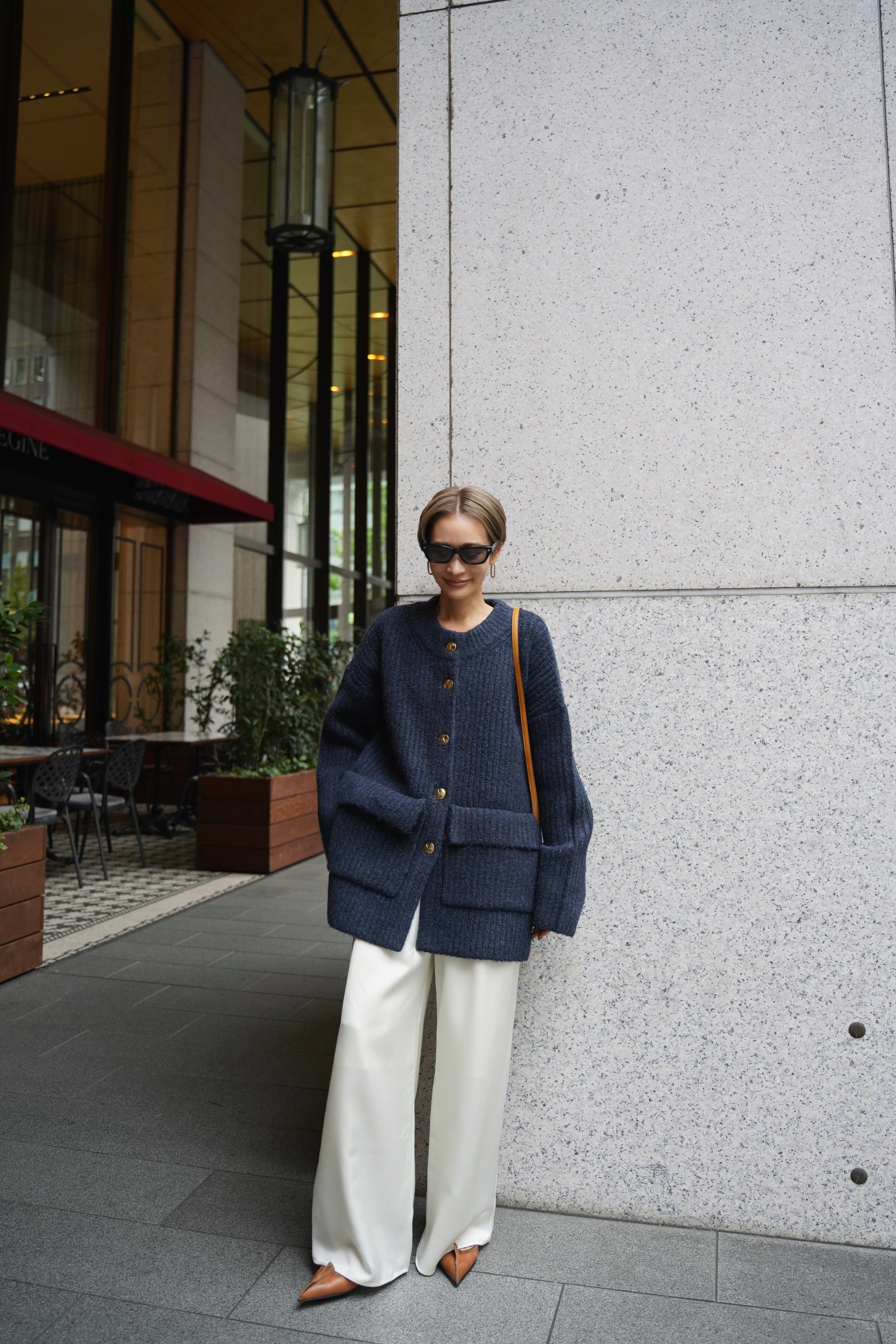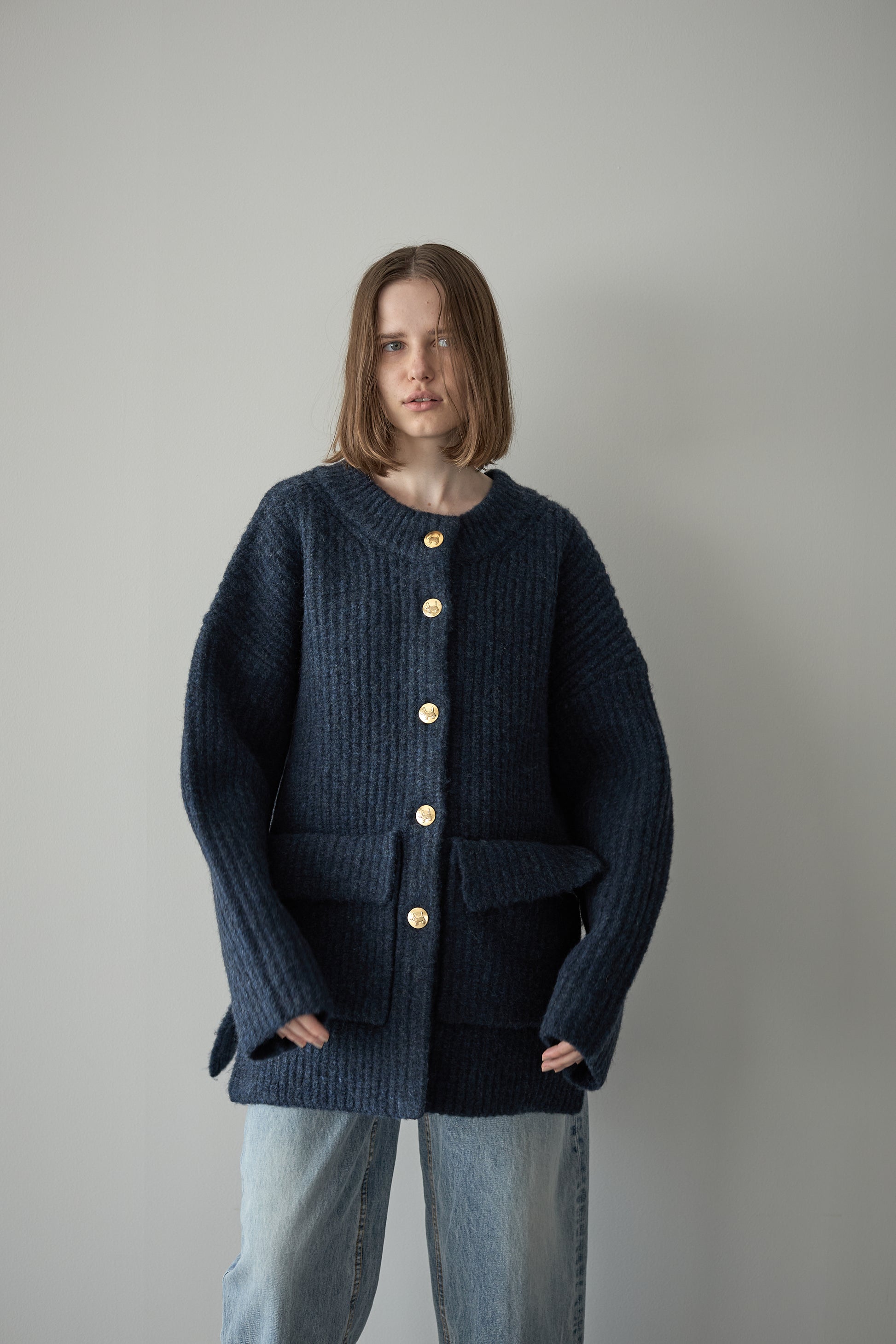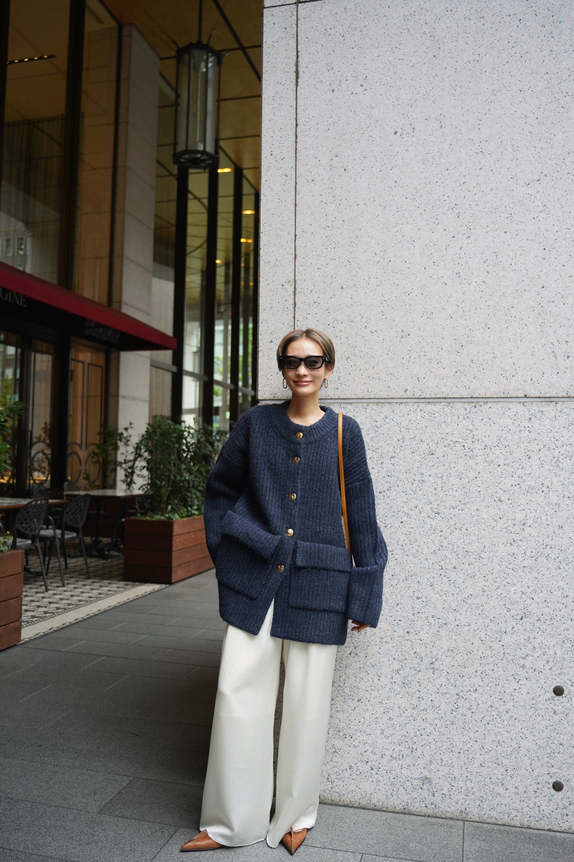 しっかりとした編み地ながら柔らかな風合いで、暖かく軽やかに羽織れます。