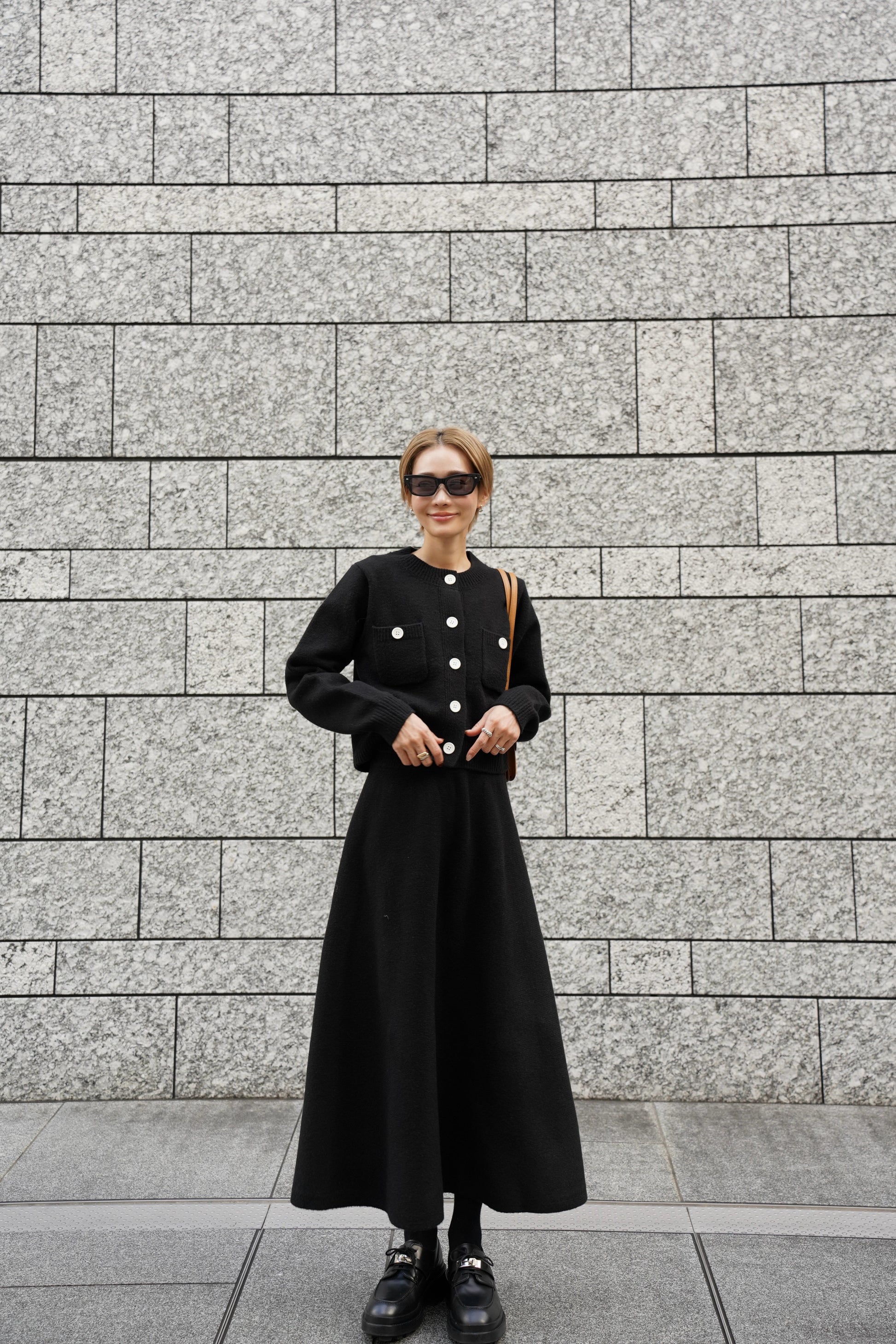 体のラインを拾いすぎず、美しい落ち感でスタイルアップを叶えます。