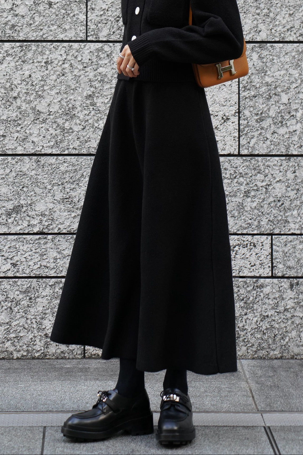 "しなやかに揺れる、女性らしいラインのニットフレアスカート"