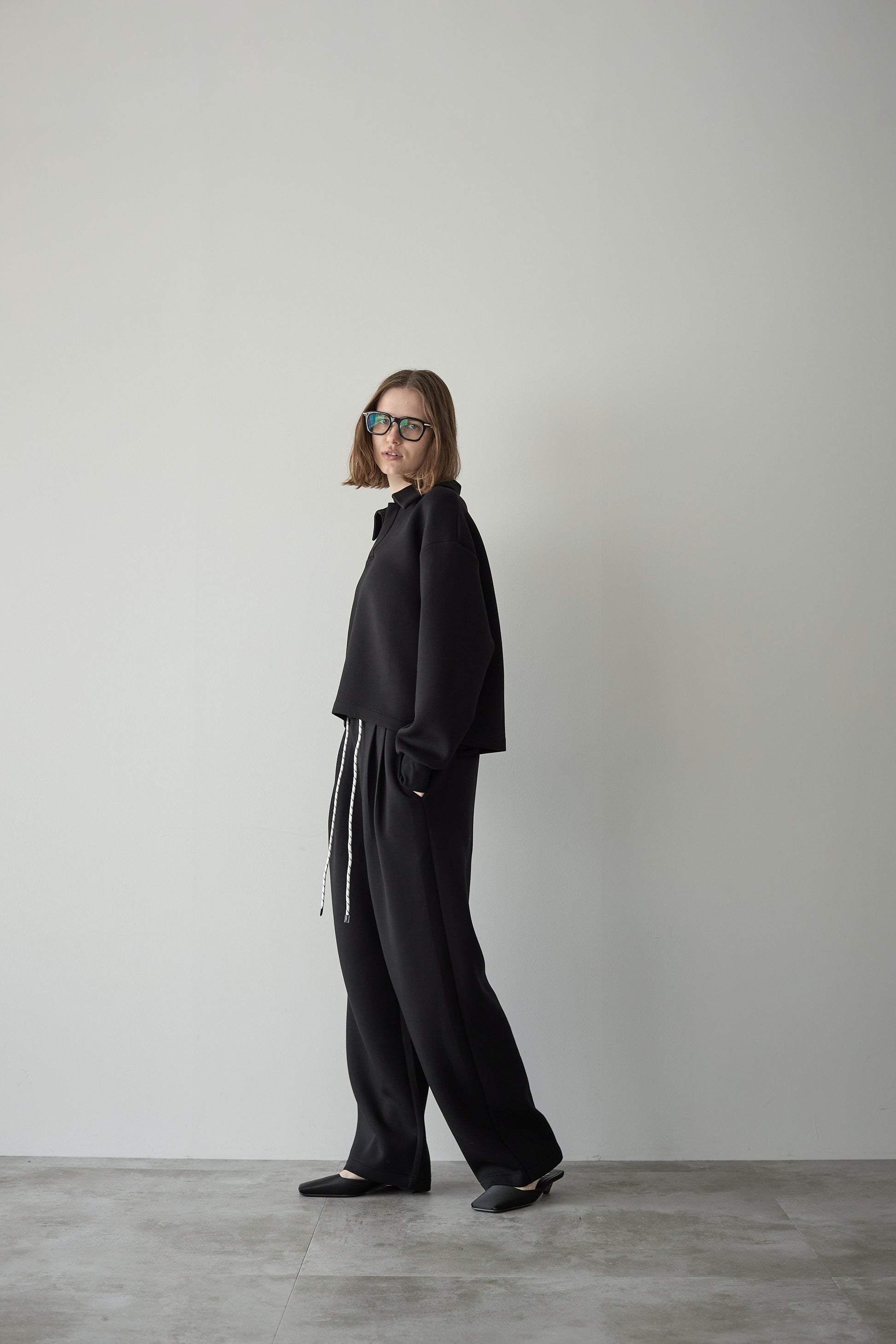 同素材のパンツとセットアップで着こなせば、洗練されたリラックスコーデに。