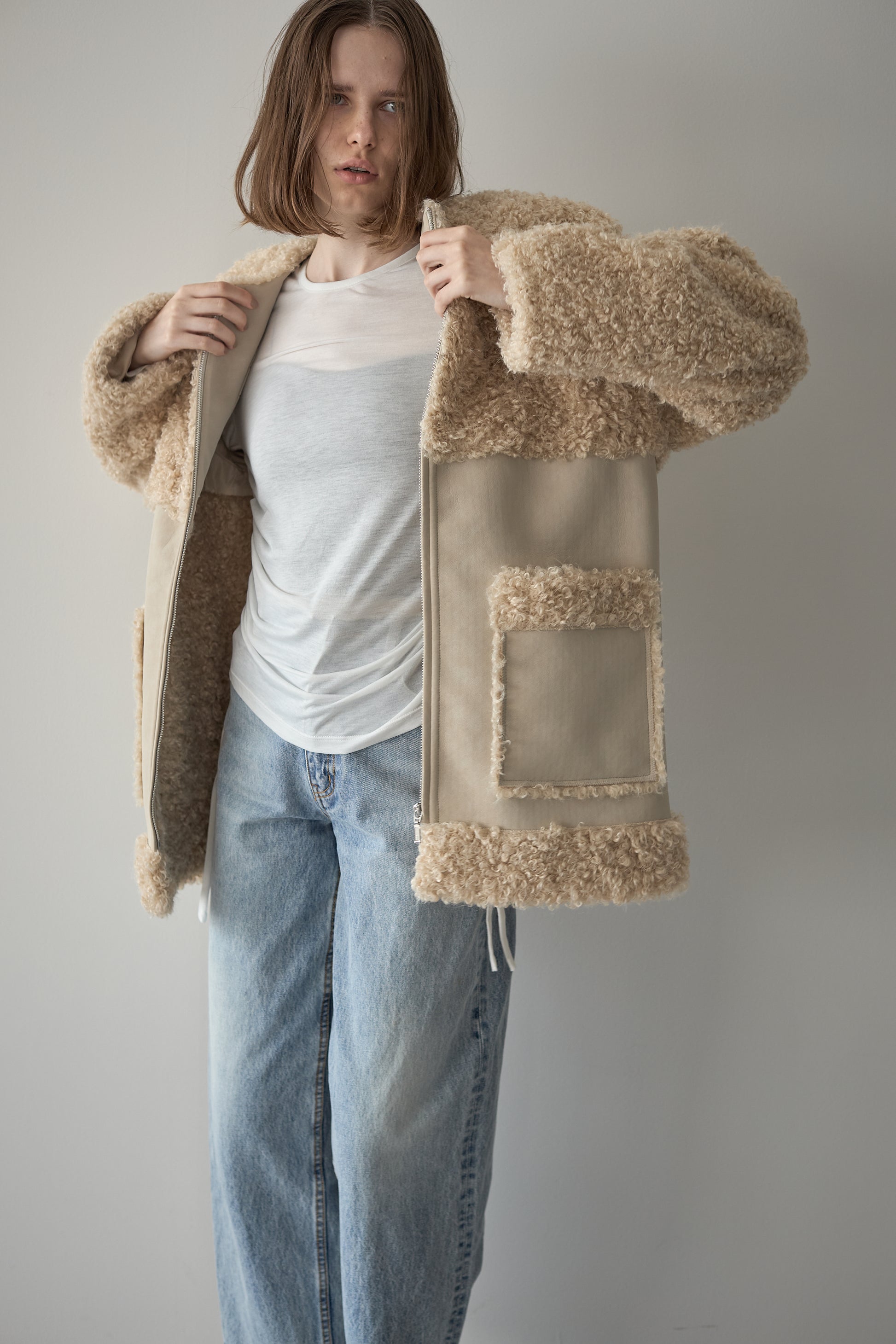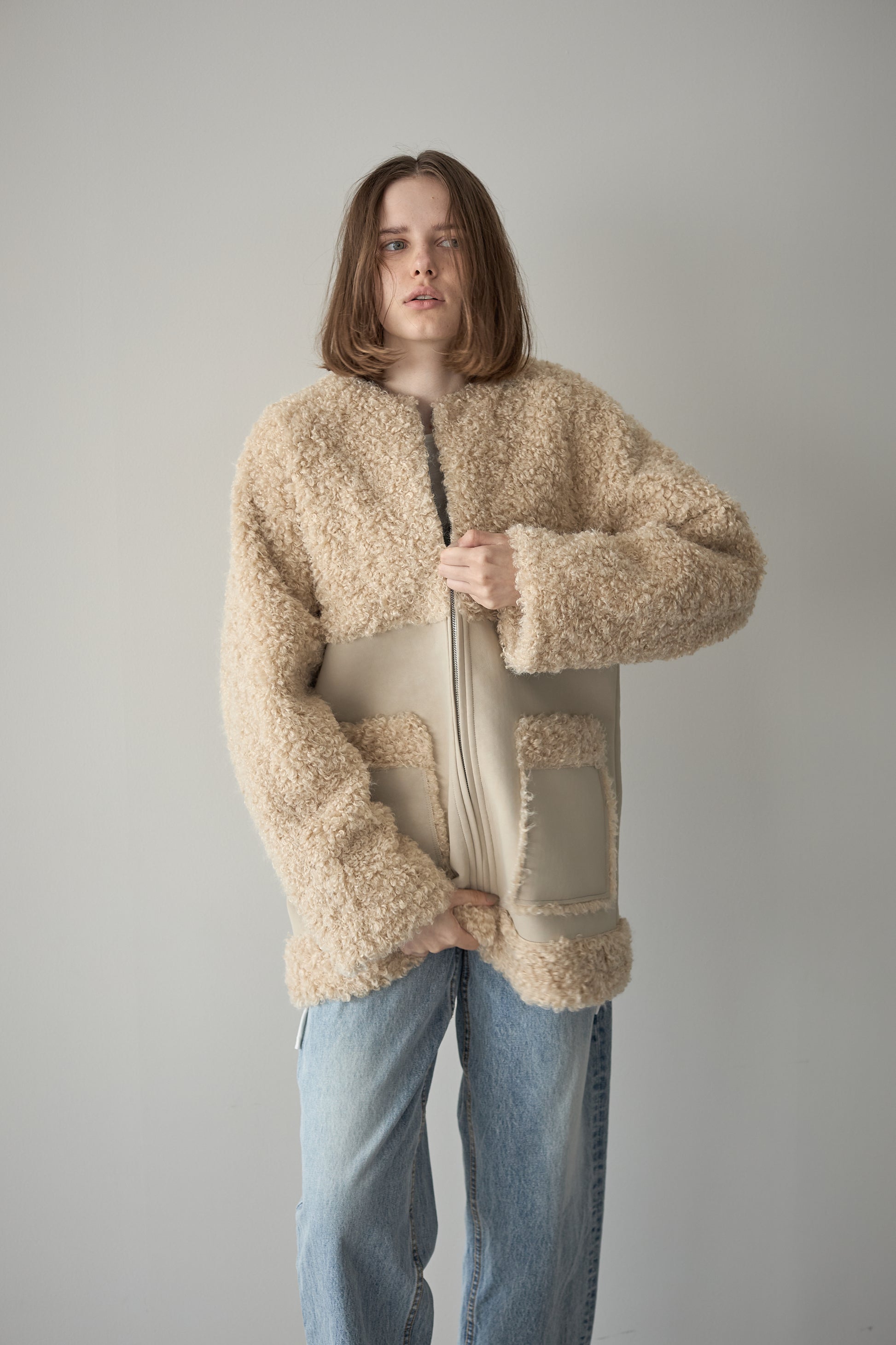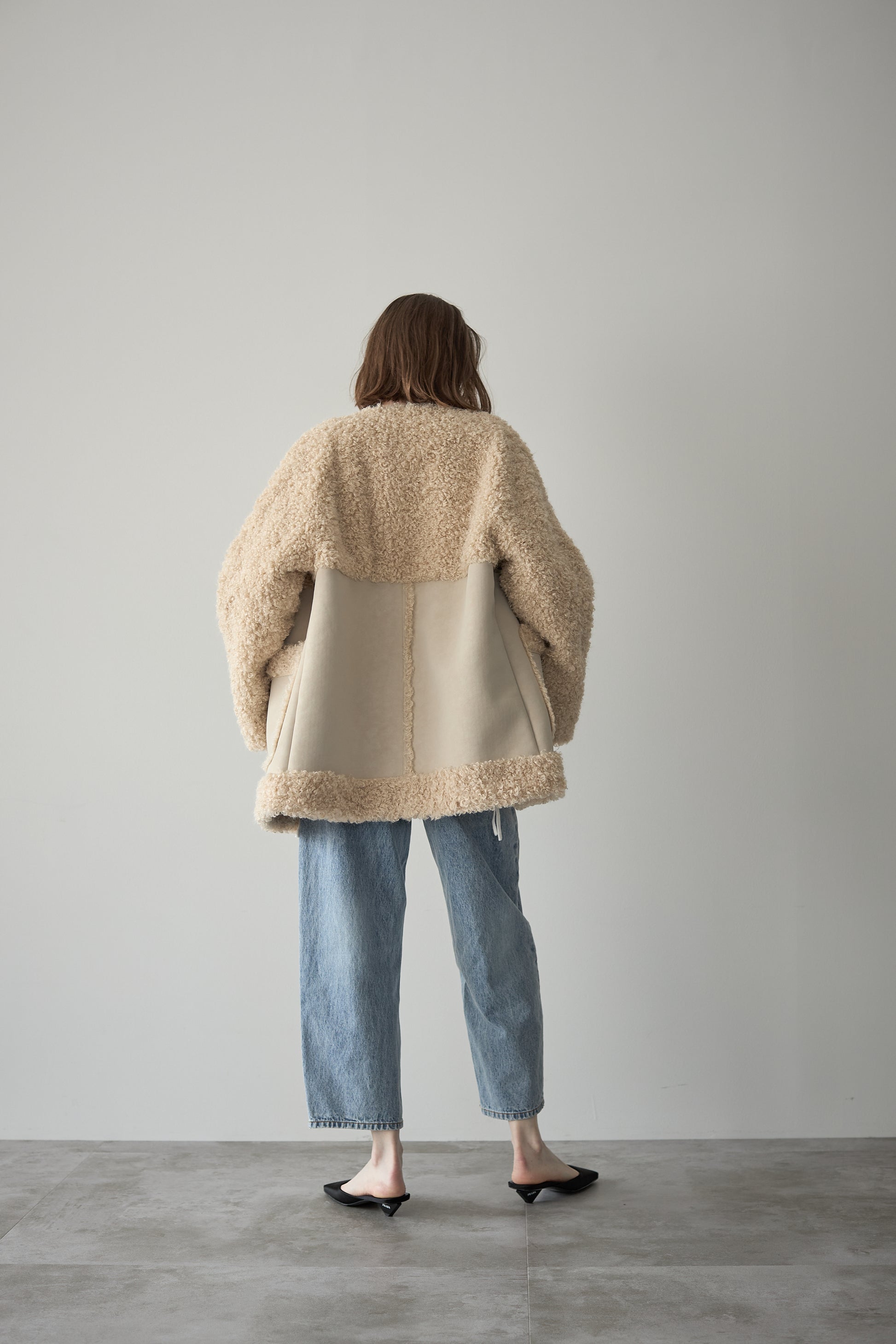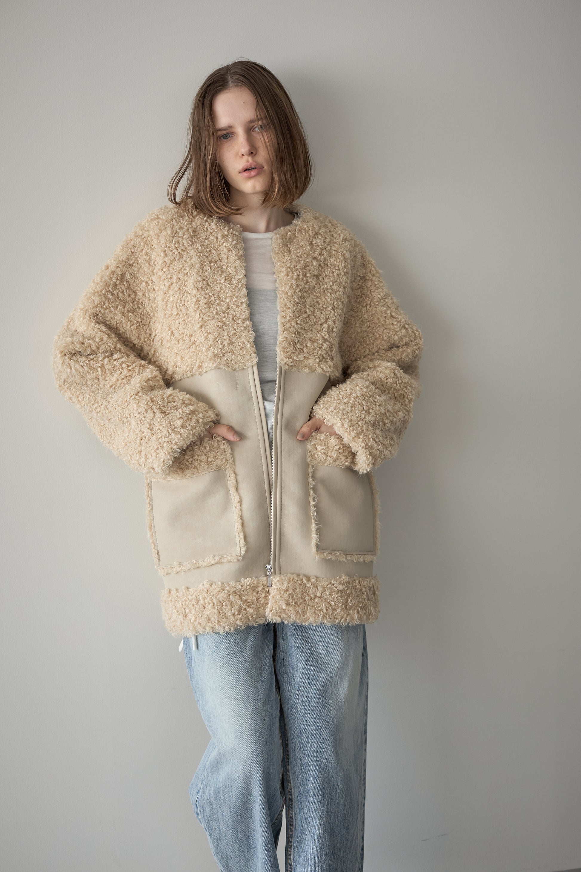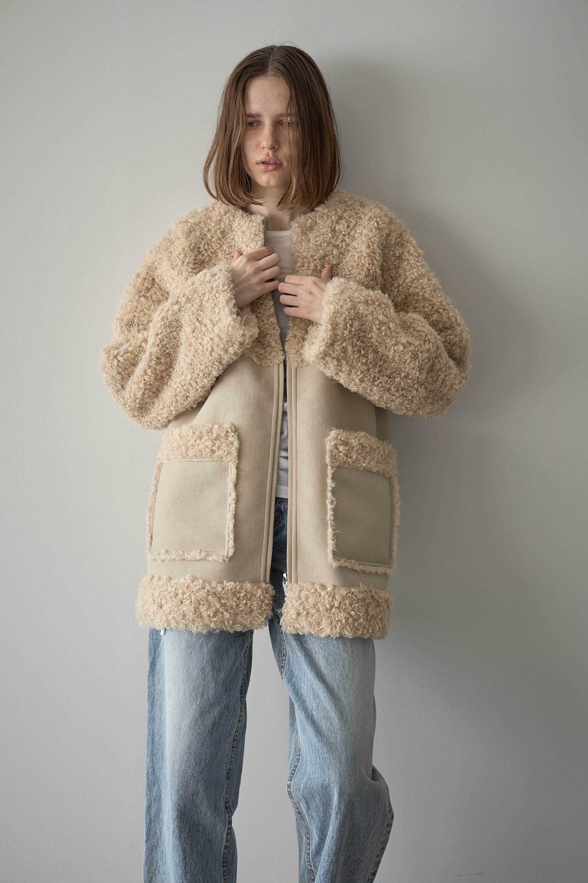 もこもことした質感が愛らしいフェイクムートンアウター。