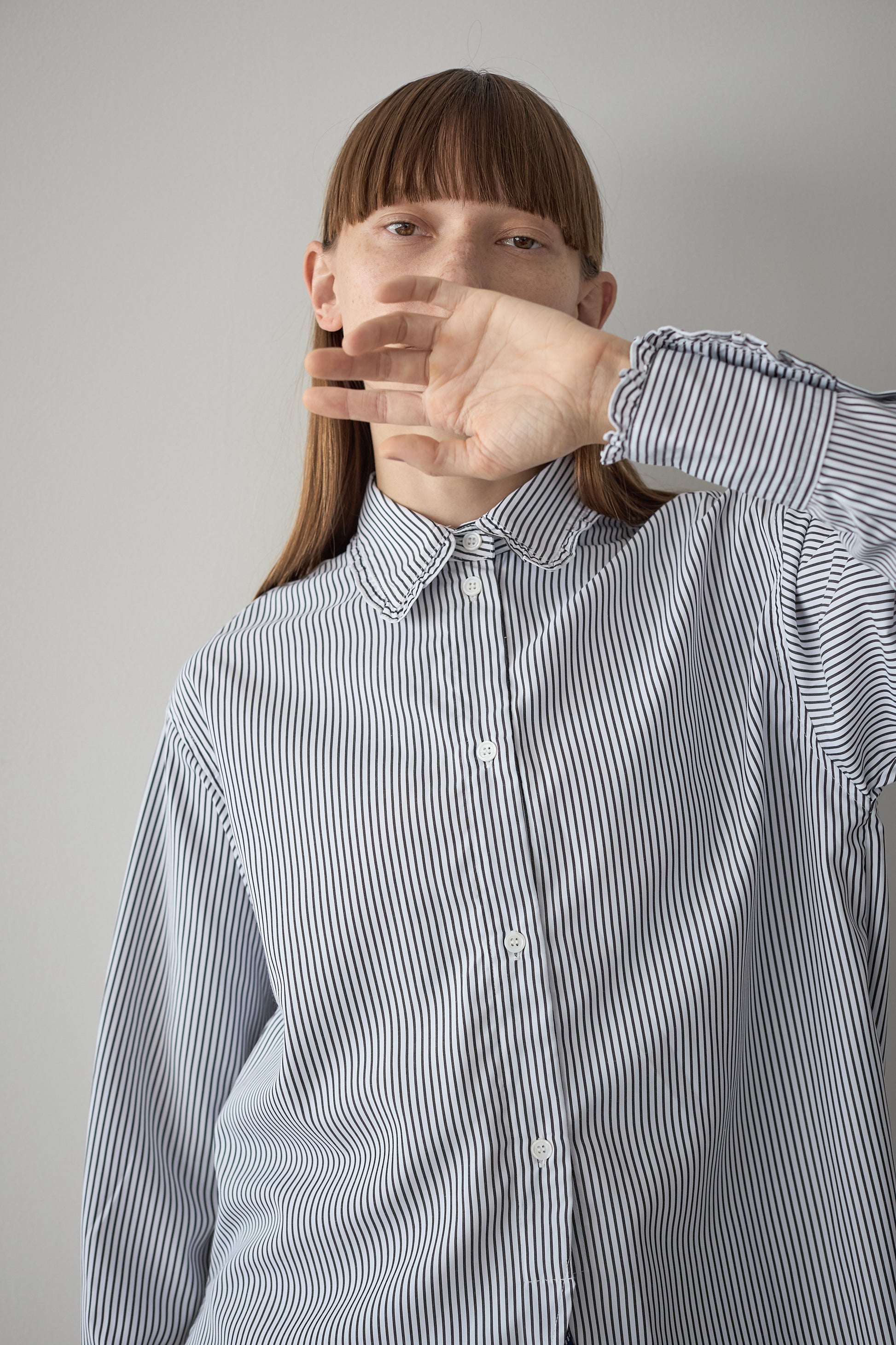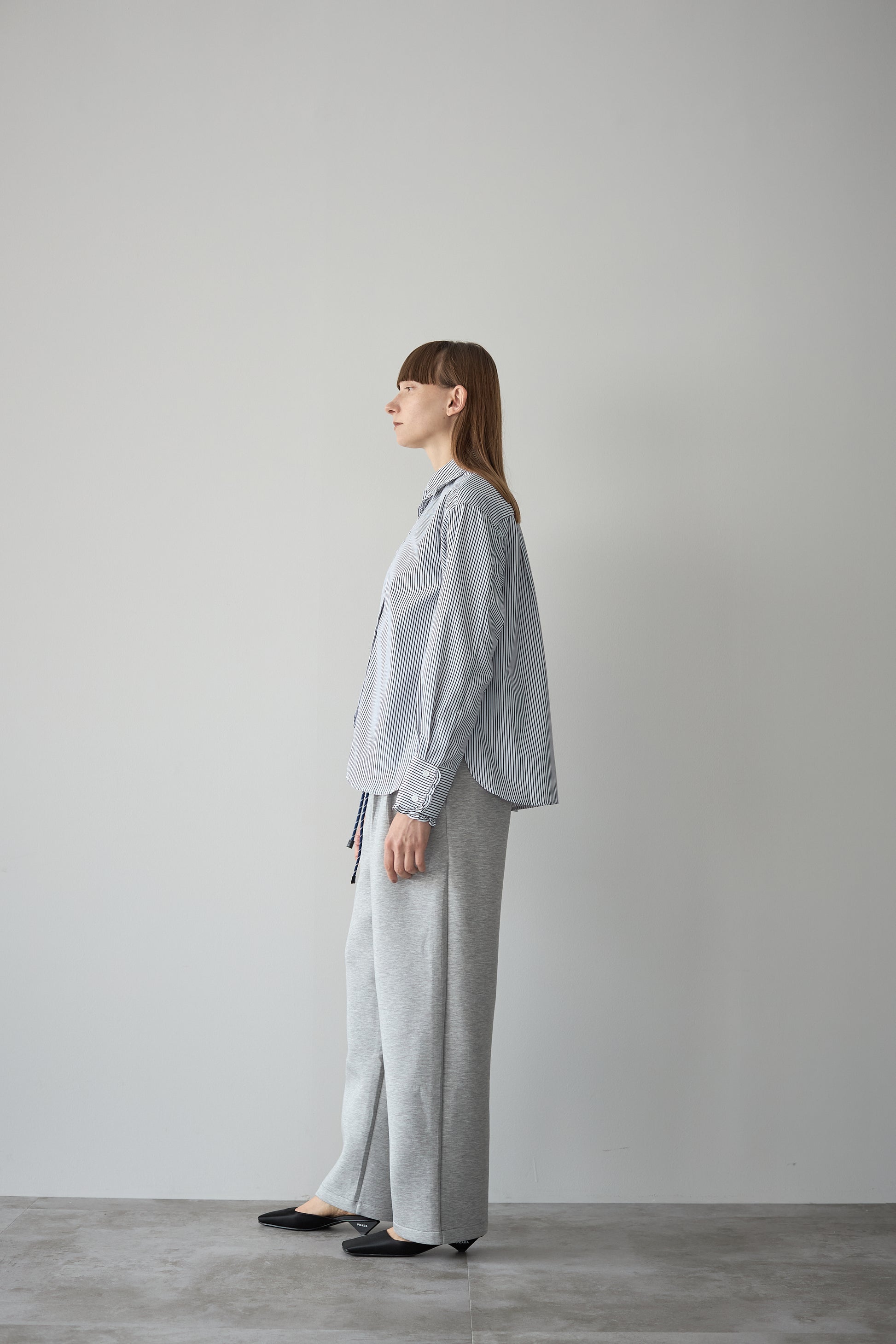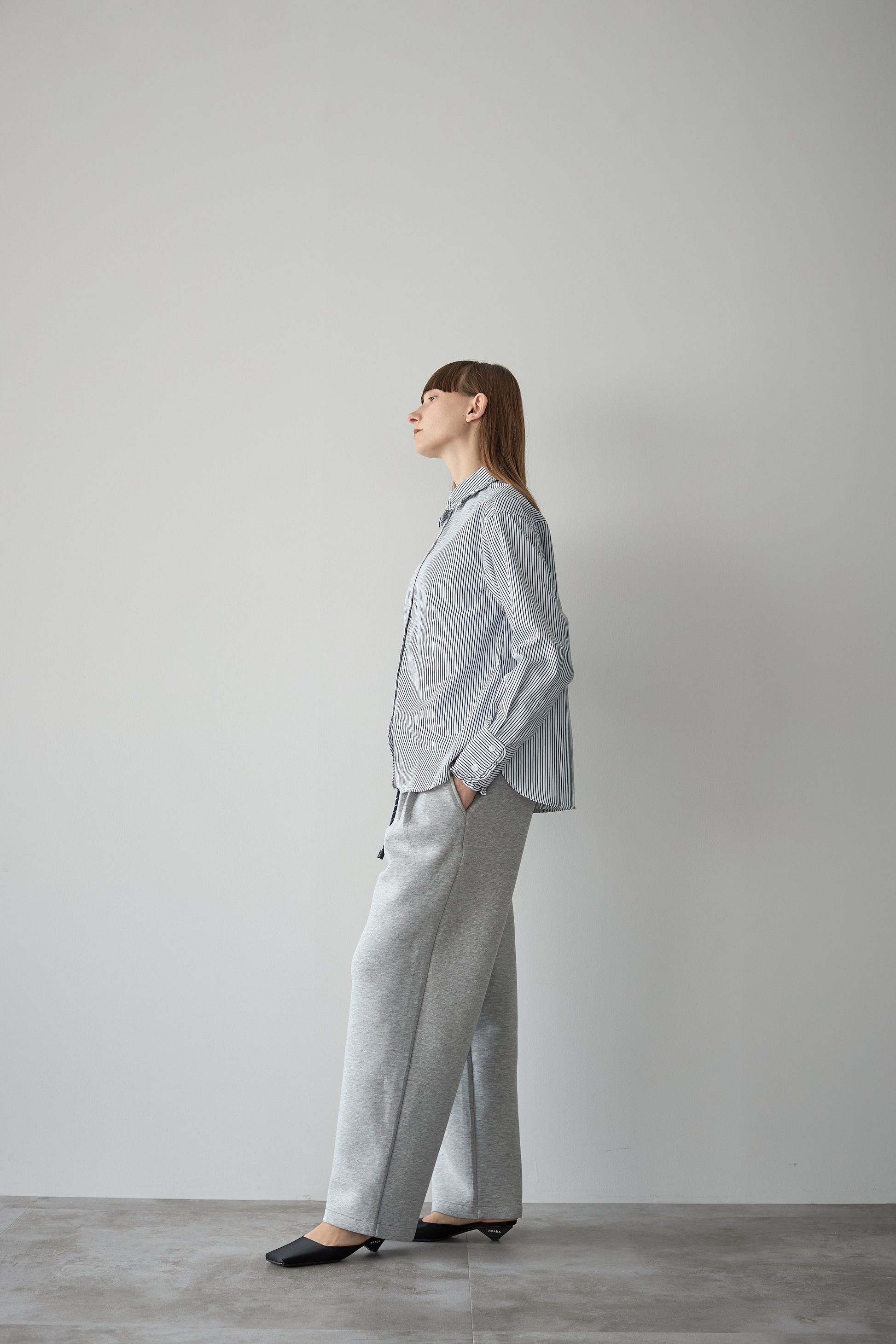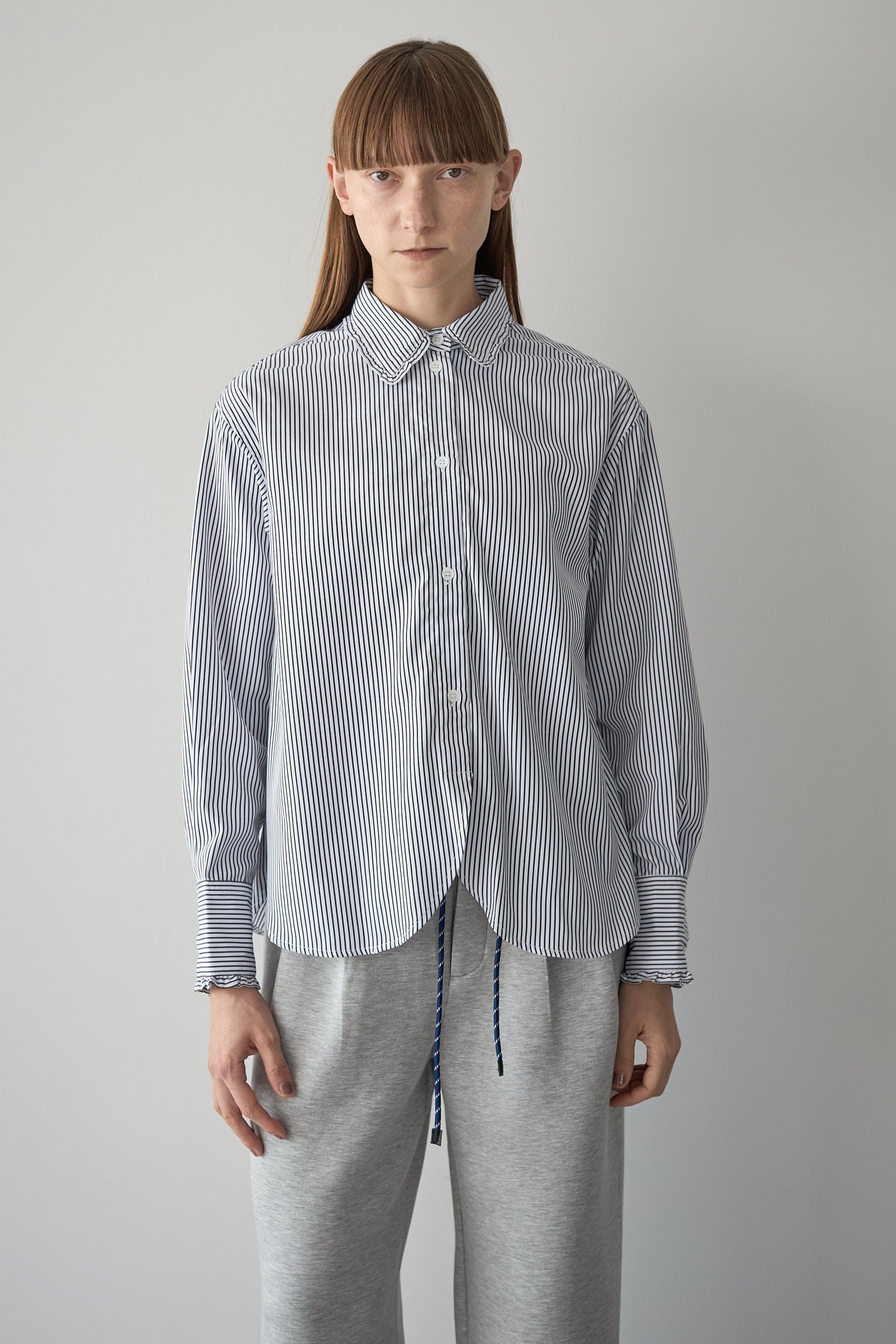 程よくハリのあるコットン素材を使用し、きちんと感と軽やかさを両立。シーズンを問わず着回せる万能な一枚です。