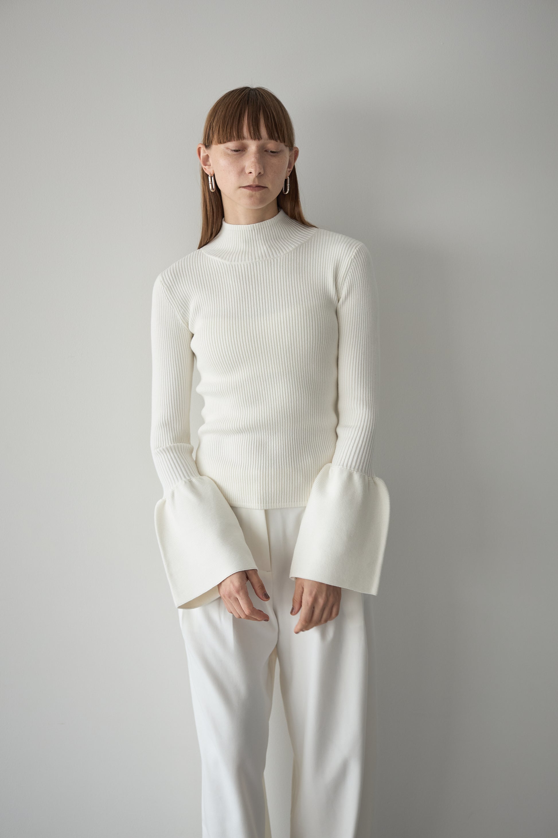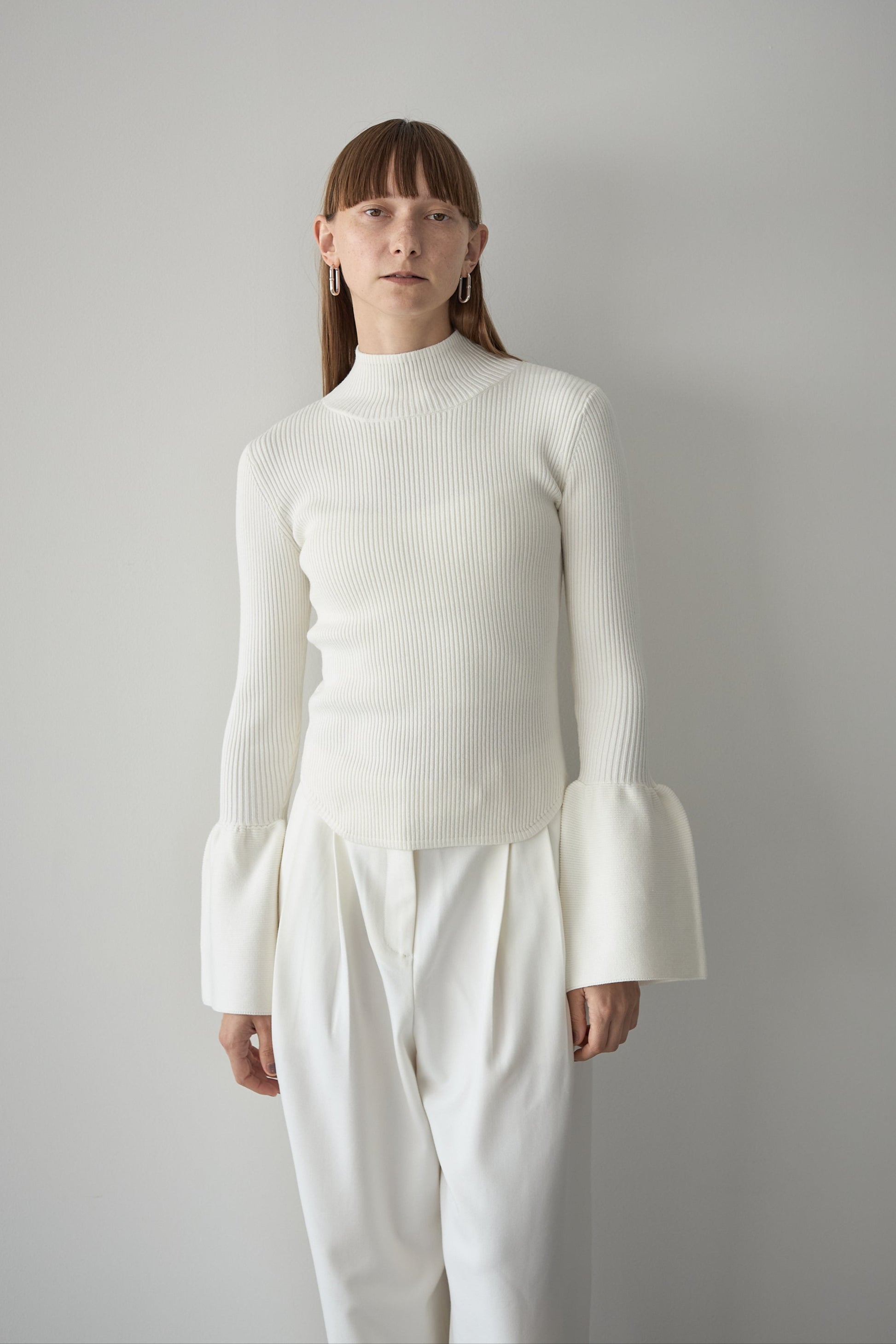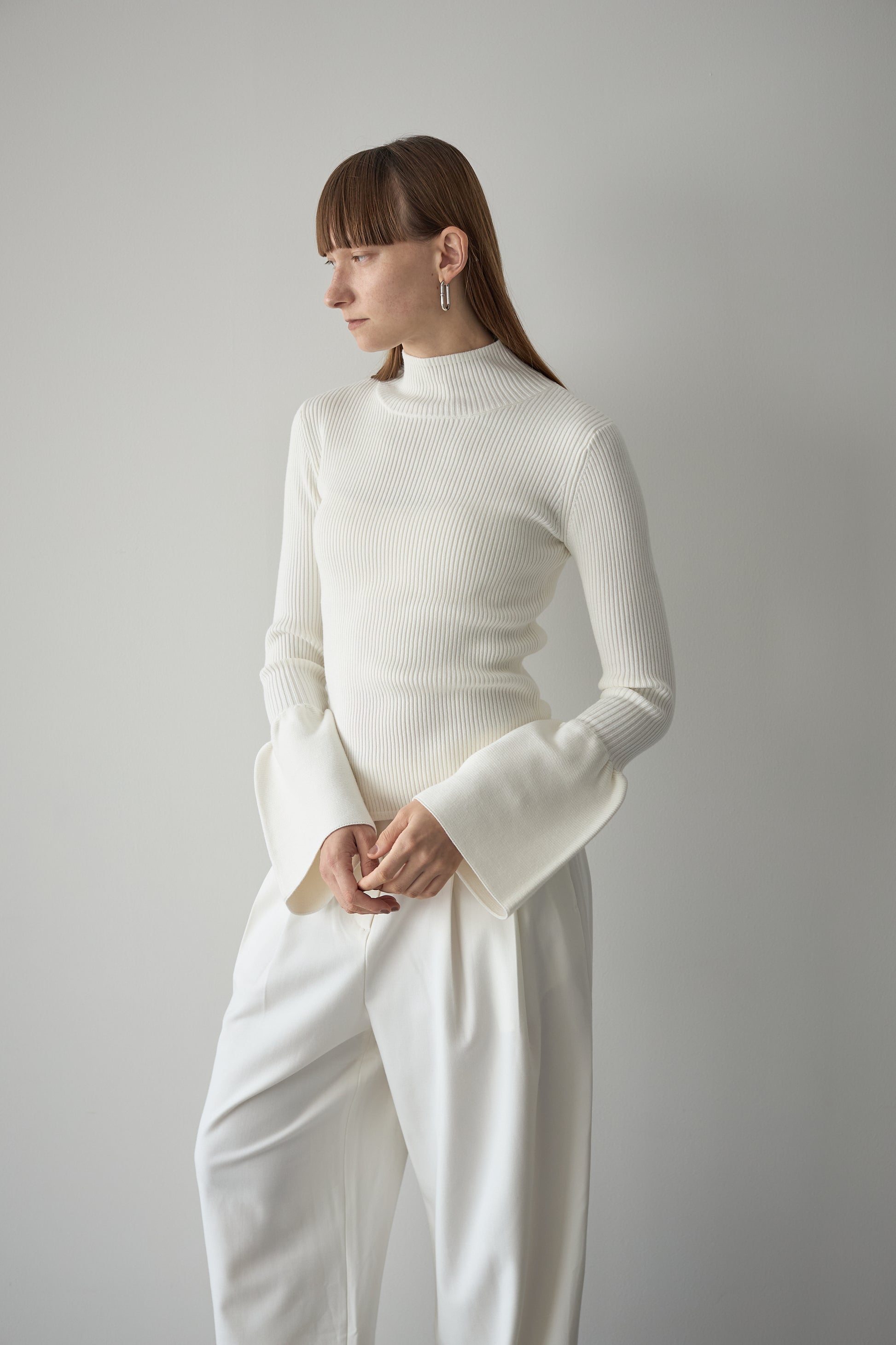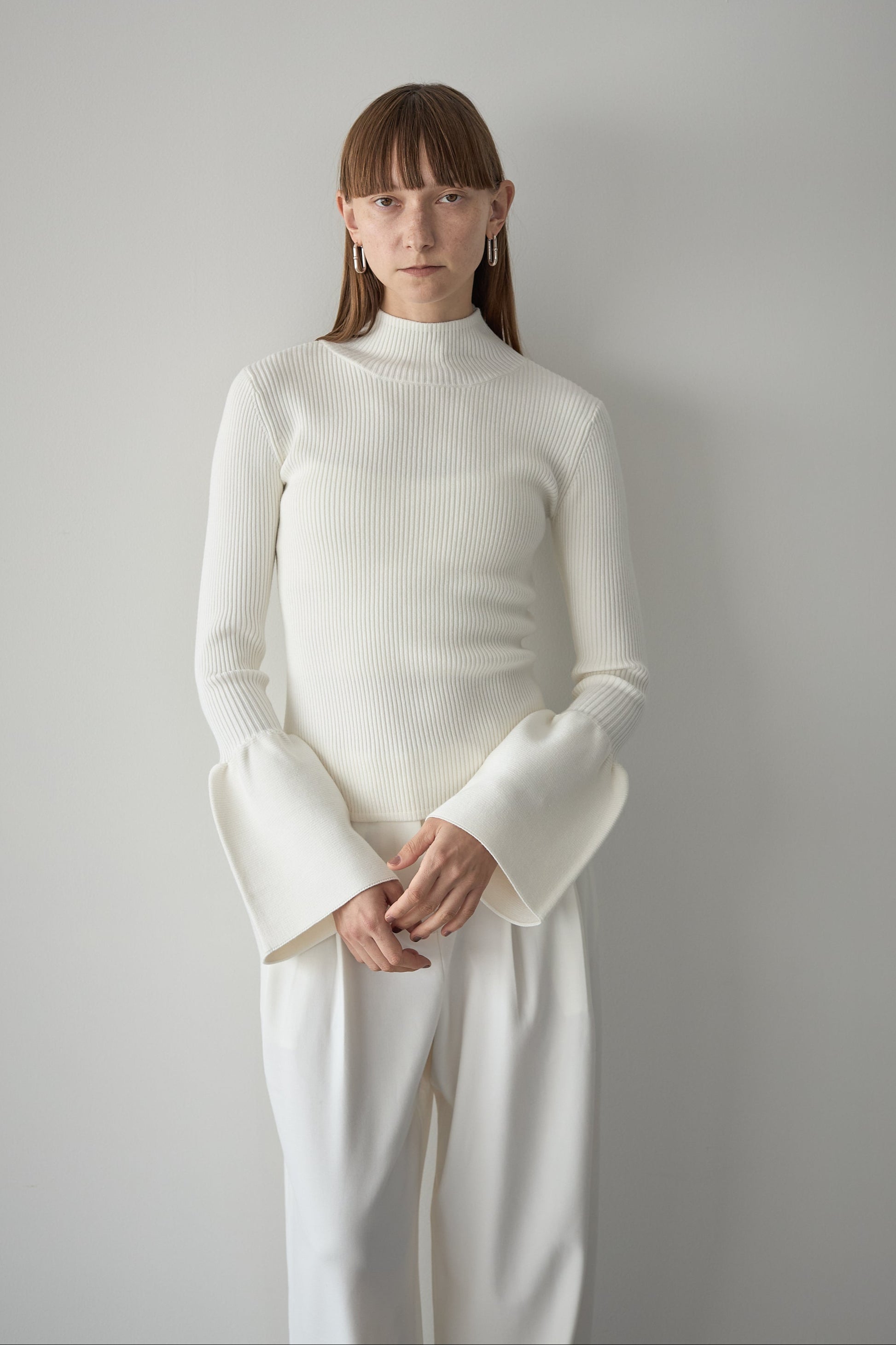 上品なタートルネックに、柔らかく広がるフレアスリーブを添えたデザイン。