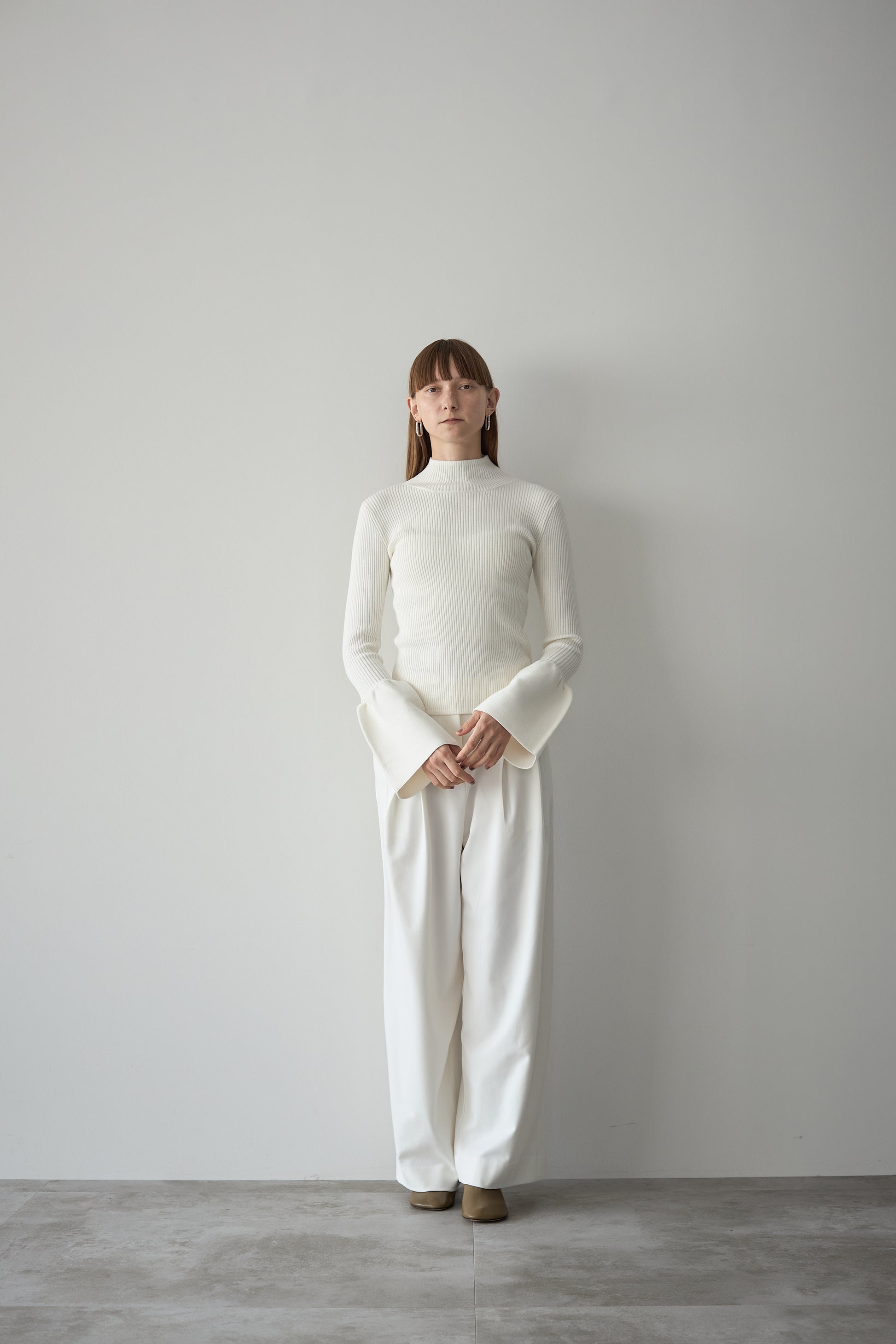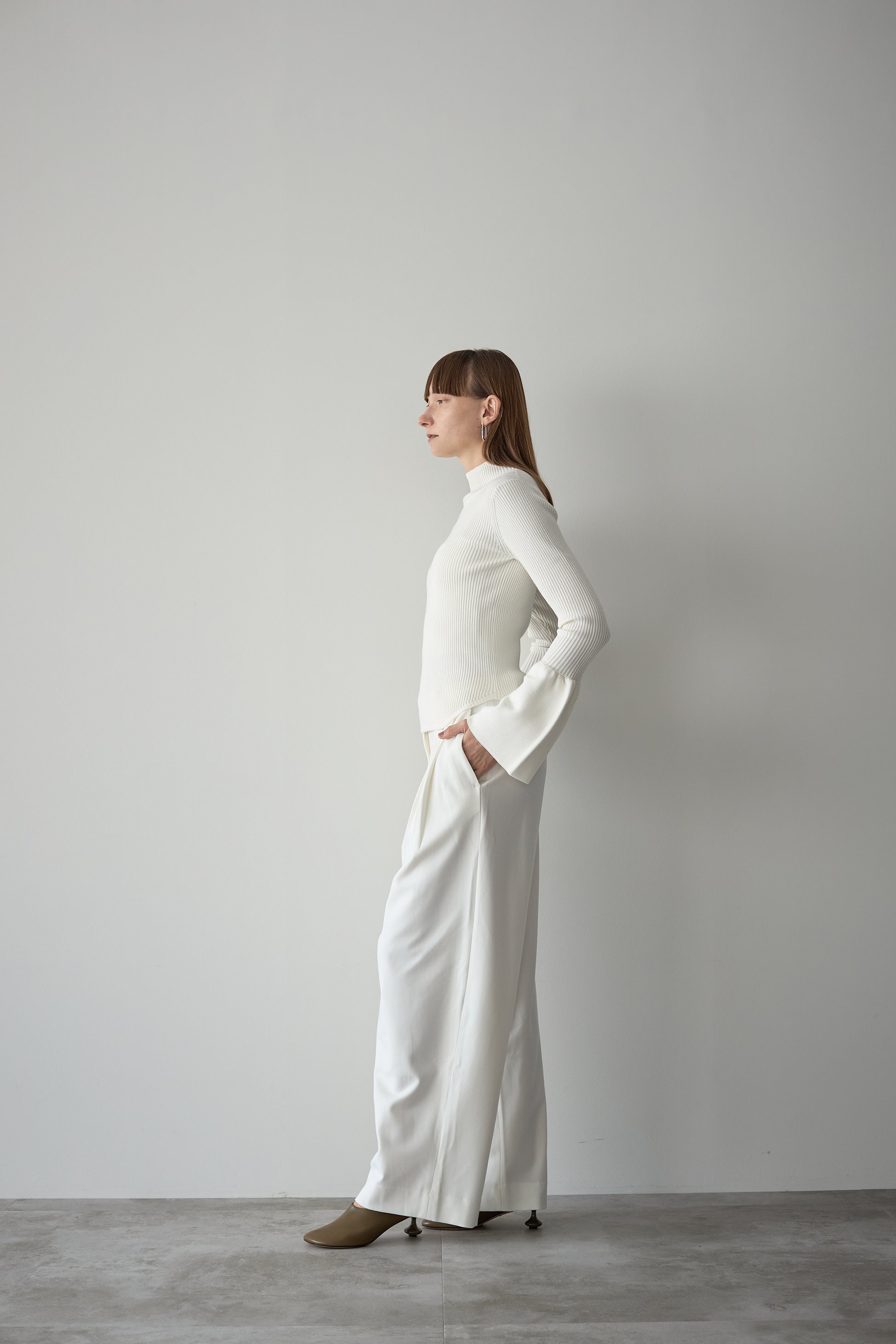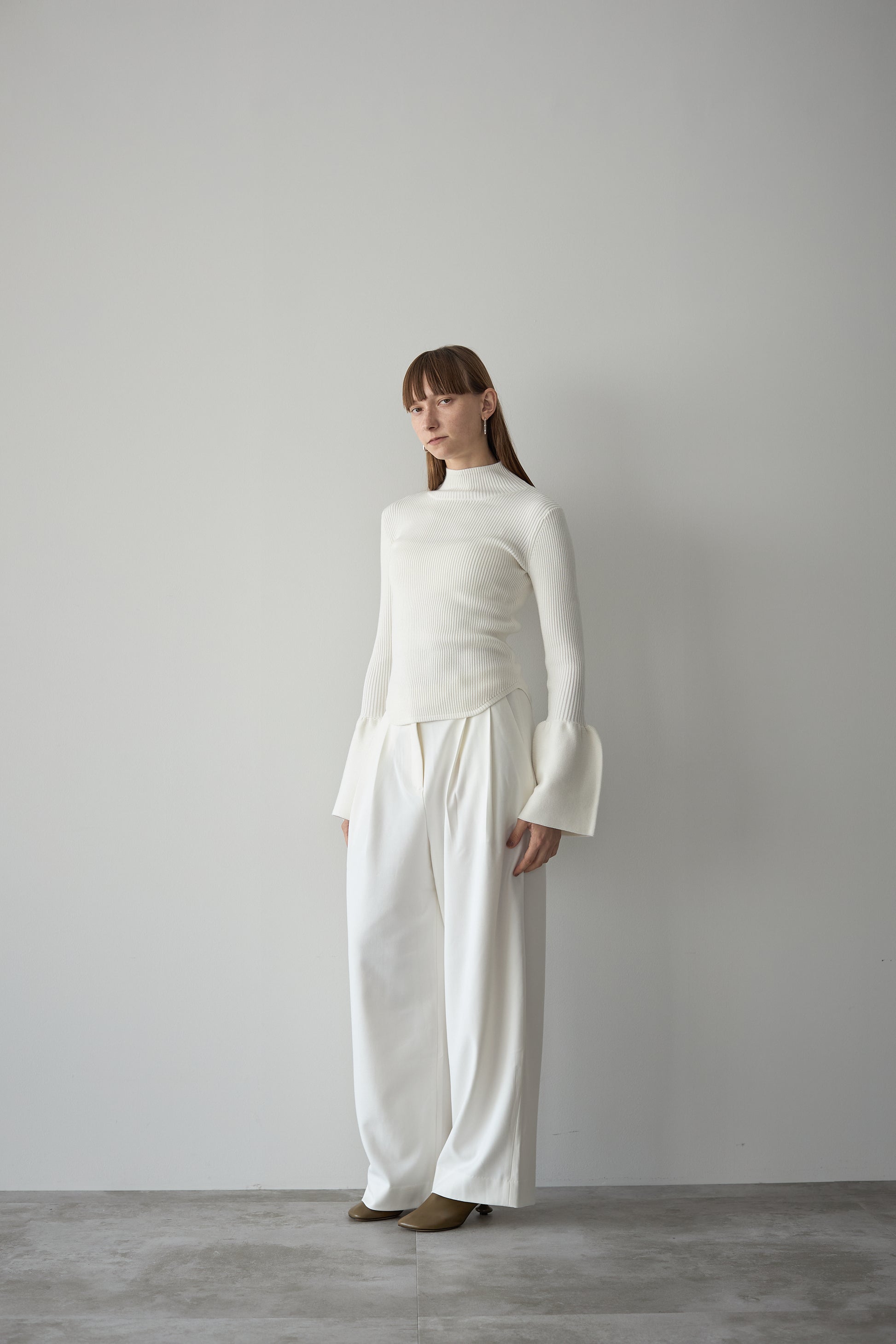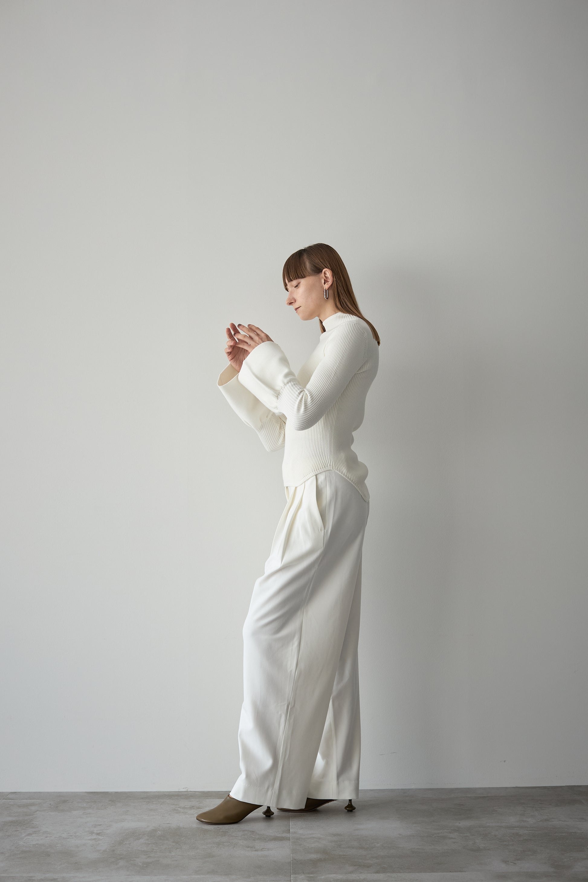上品なタートルネックに、柔らかく広がるフレアスリーブを添えたデザイン。