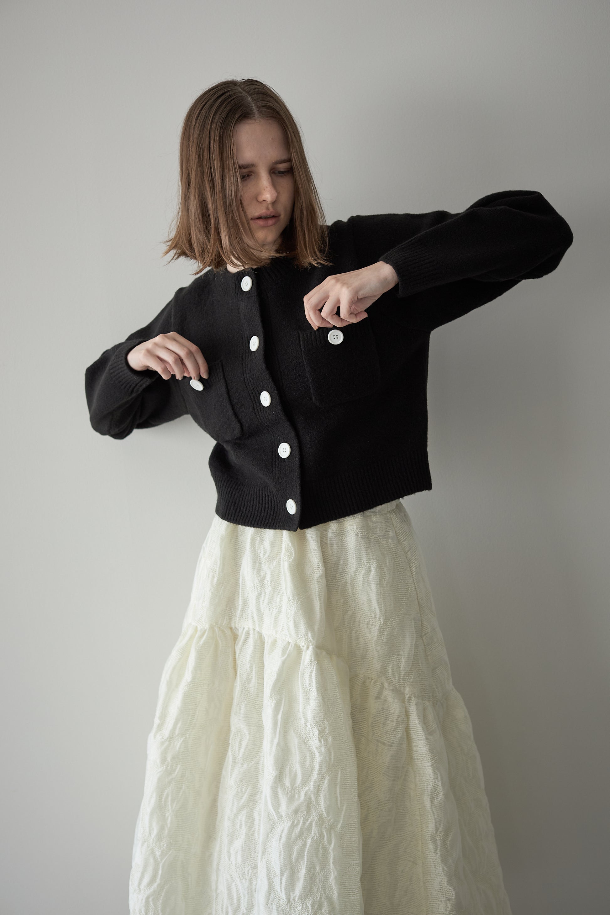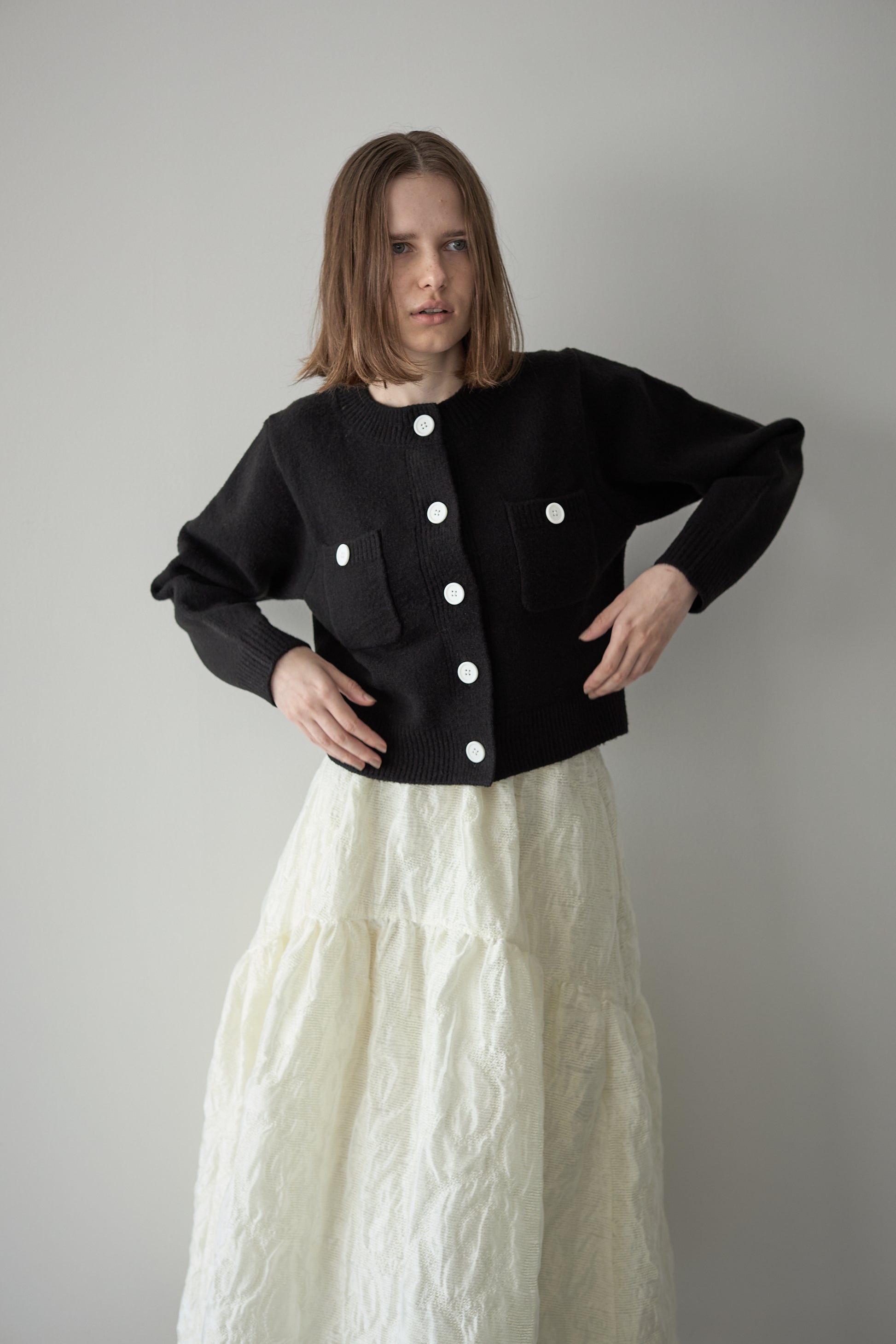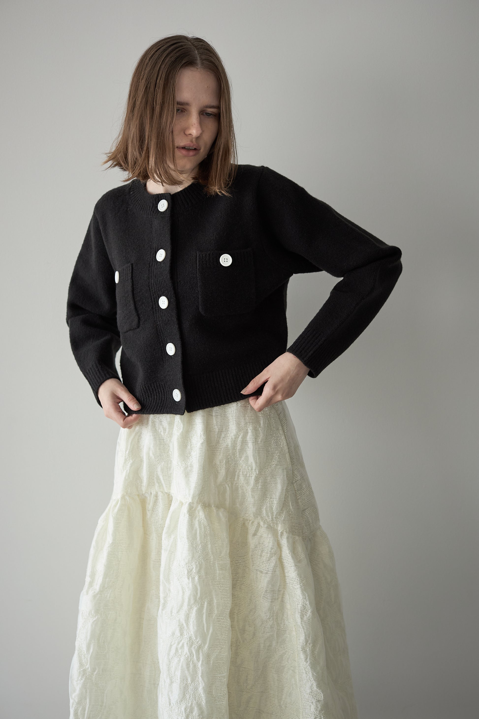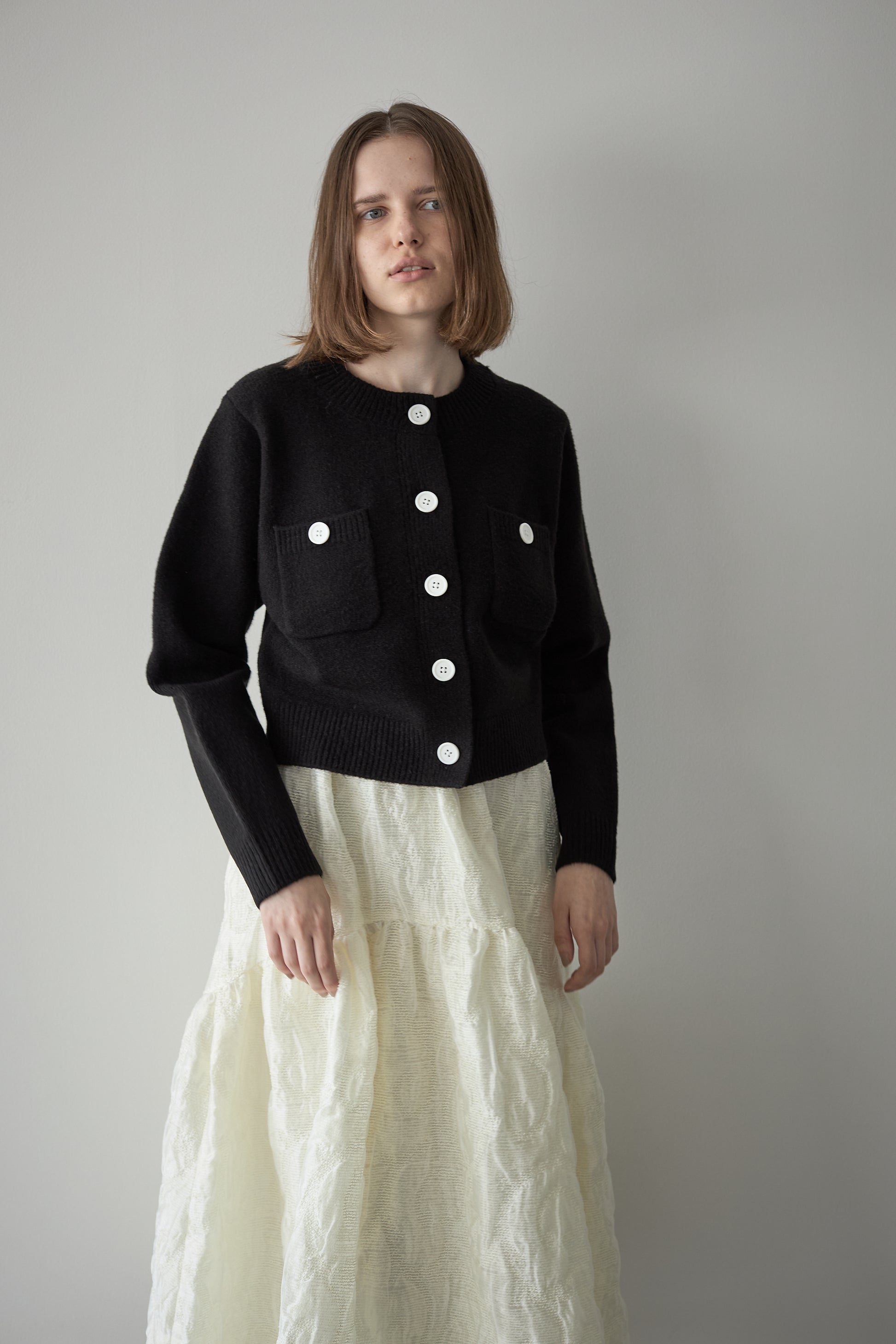 "上品さと抜け感を両立した、モダンなショートカーディガン"