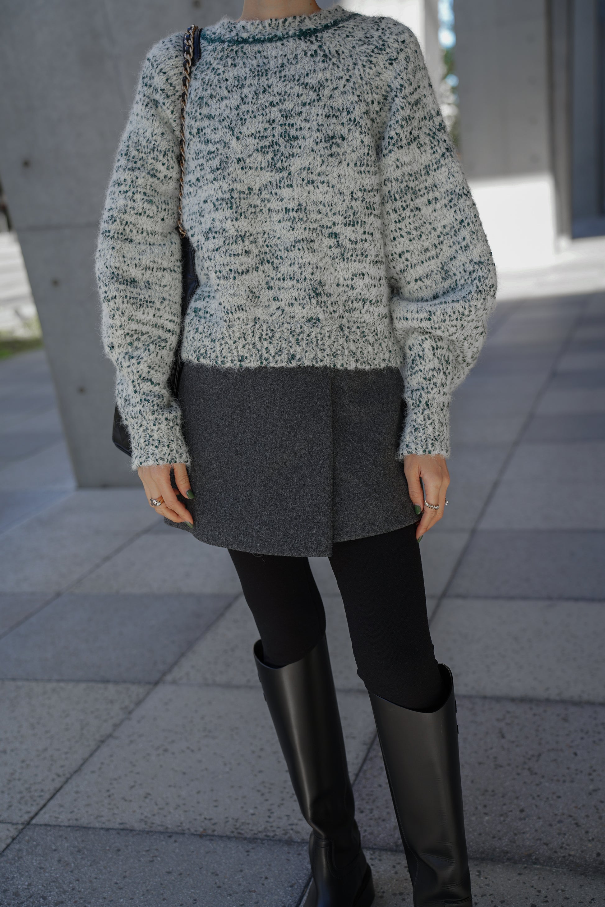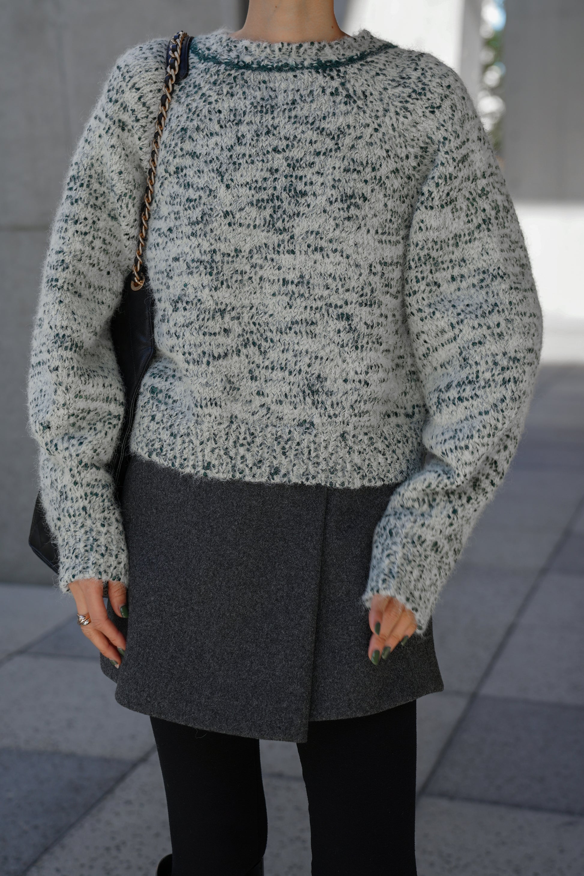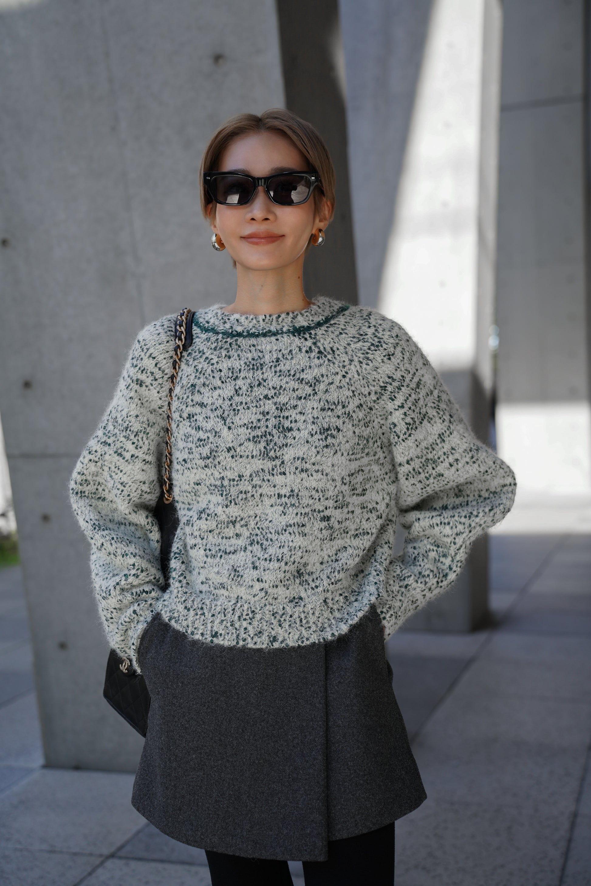 シンプルなボトムに合わせるだけでスタイリングが完成します。