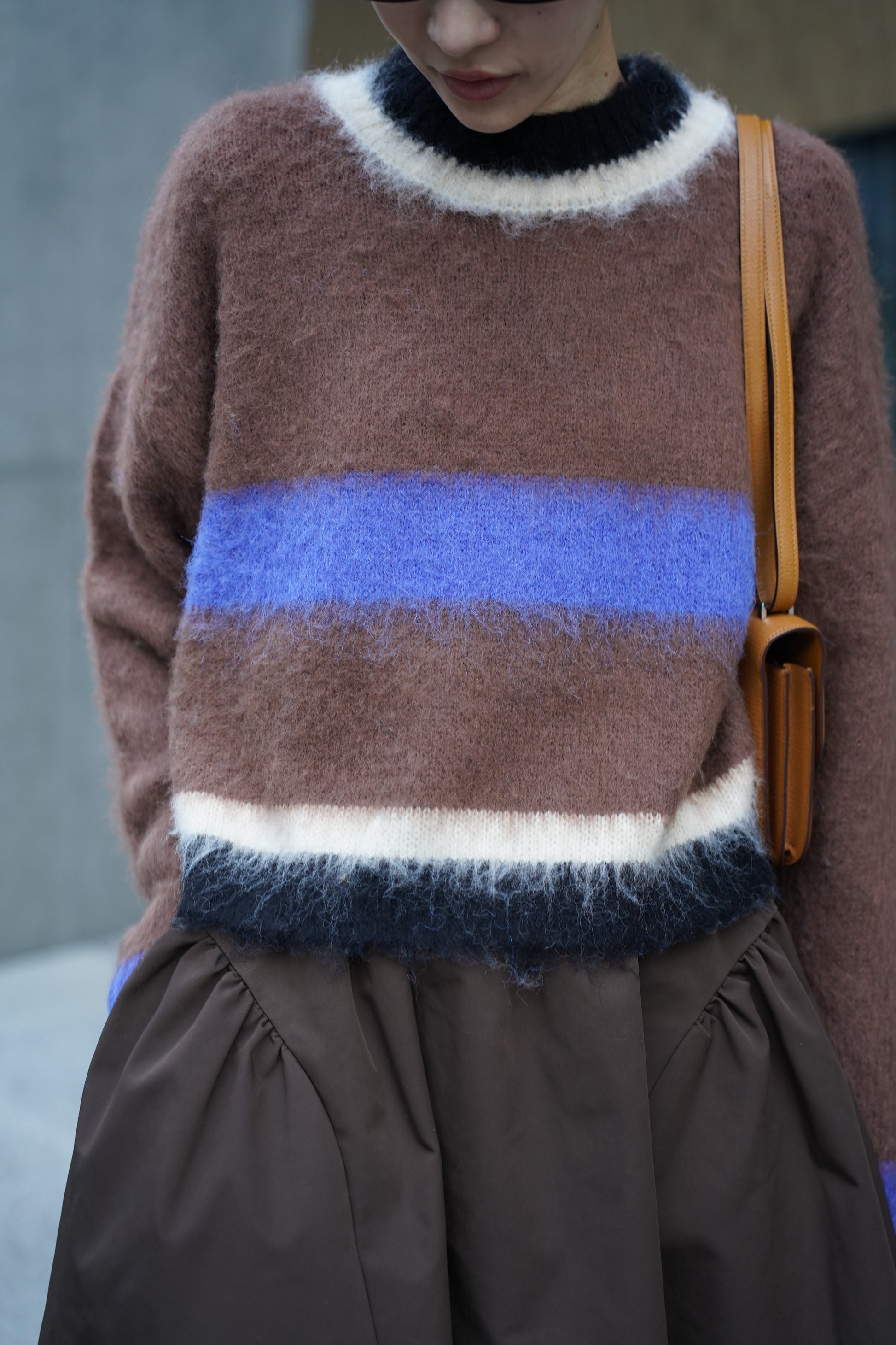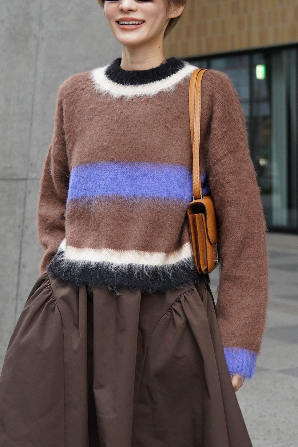 "柔らかく溶け合うような配色が目を惹く、モヘアニット"