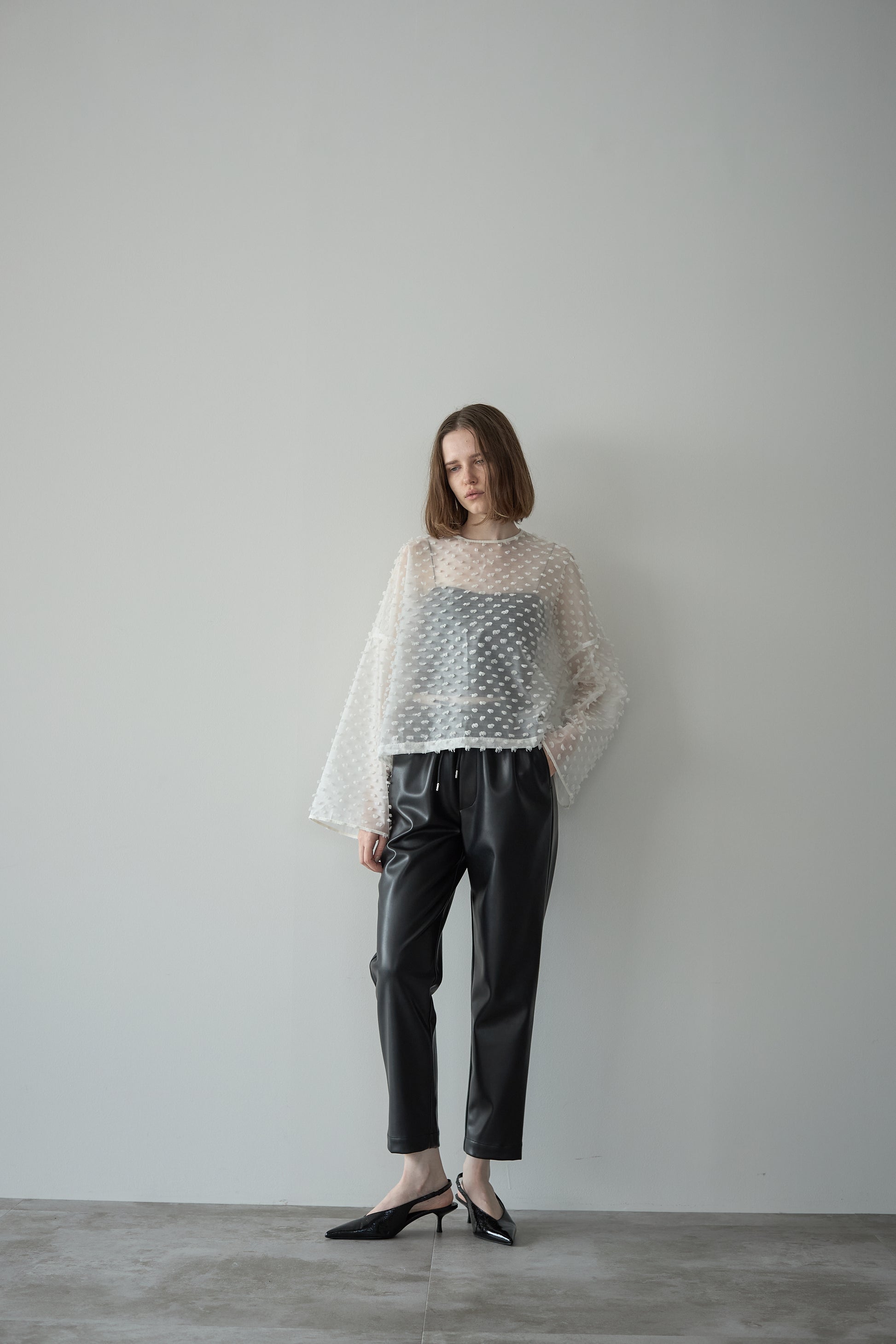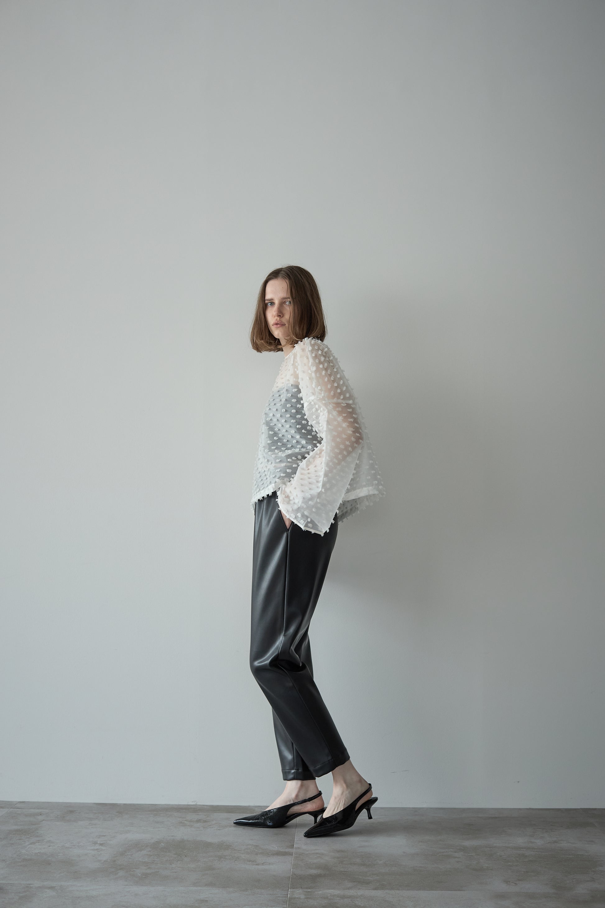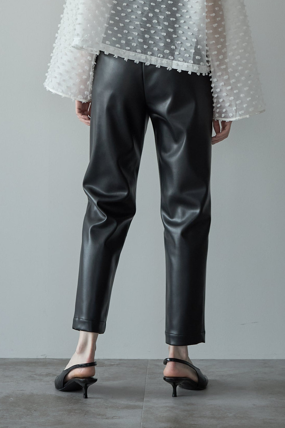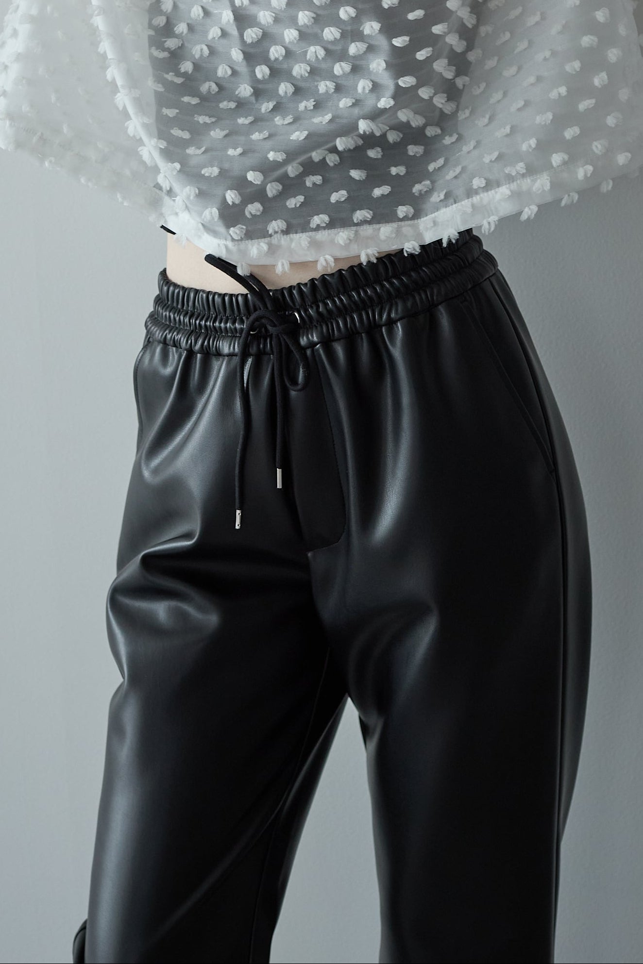しなやかで手触りの良いフェイクレザーを使用しており、動きやすさも抜群です。ハードになりがちなレザー素材も、程よい光沢と柔らかさで上品に仕上げました。