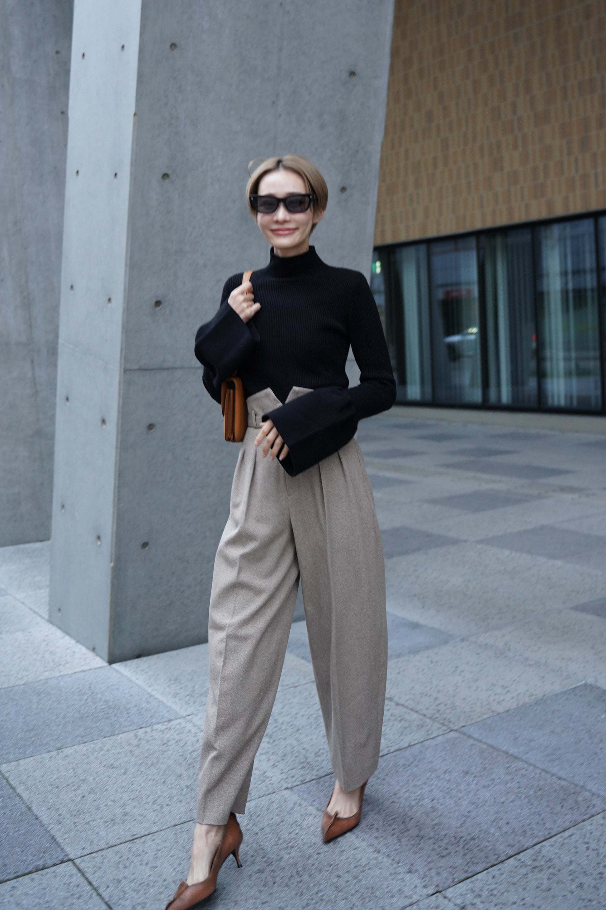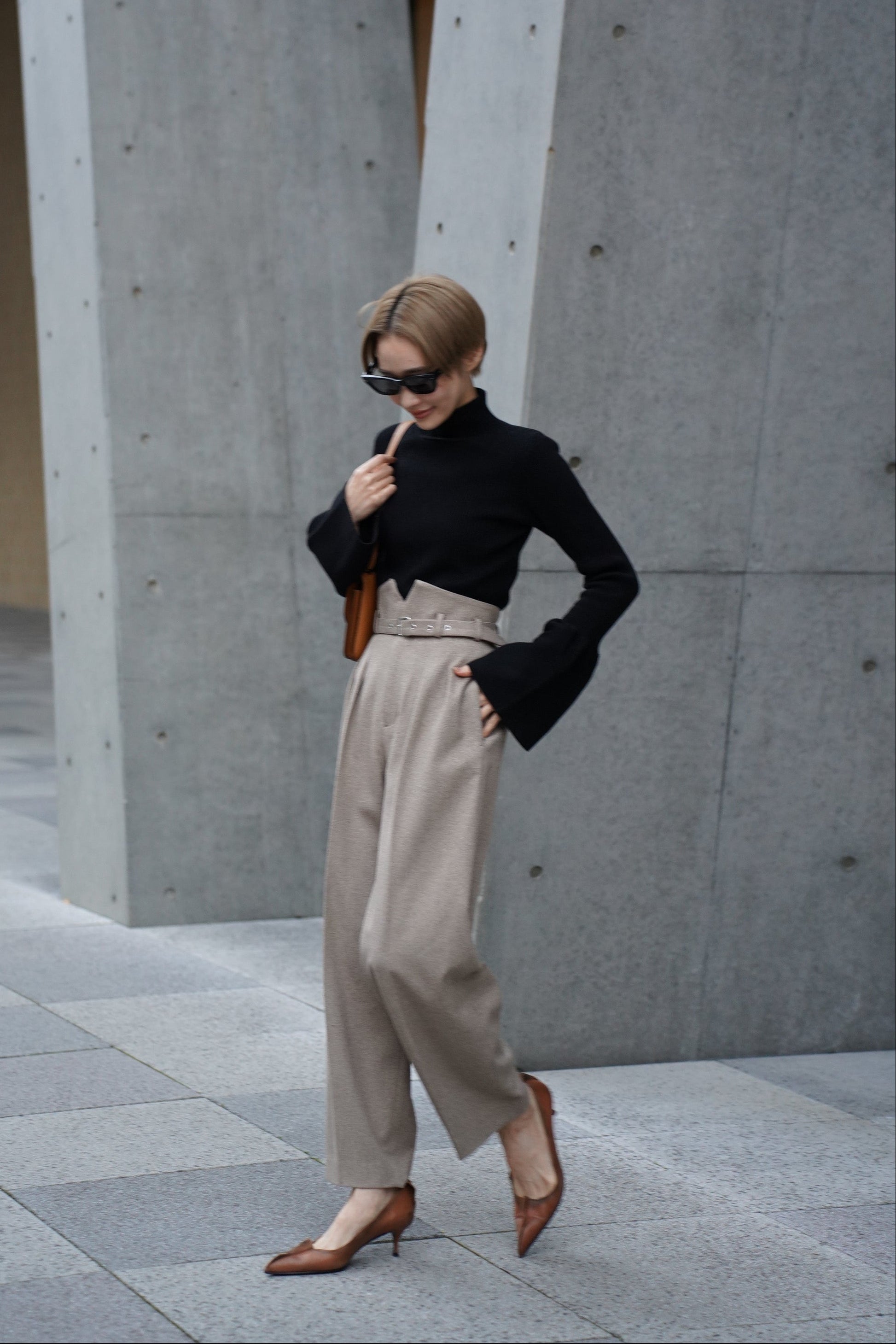 シンプルなニットやカットソーを合わせるだけで洗練された着こなしが完成します。