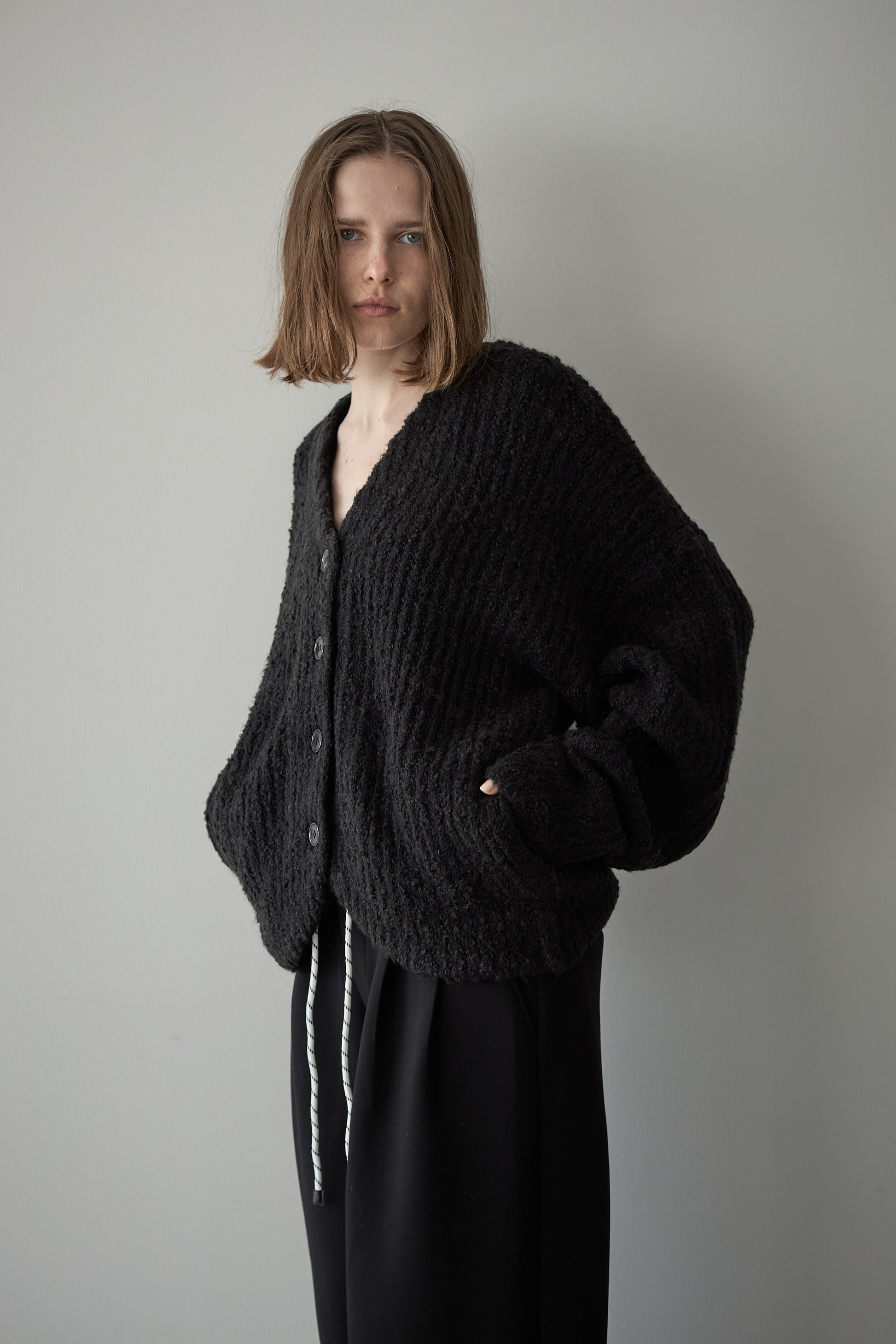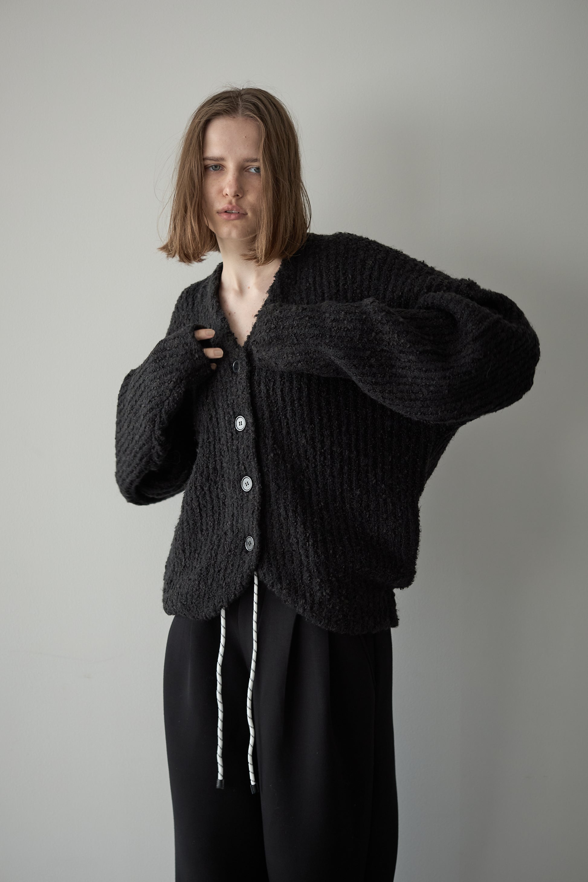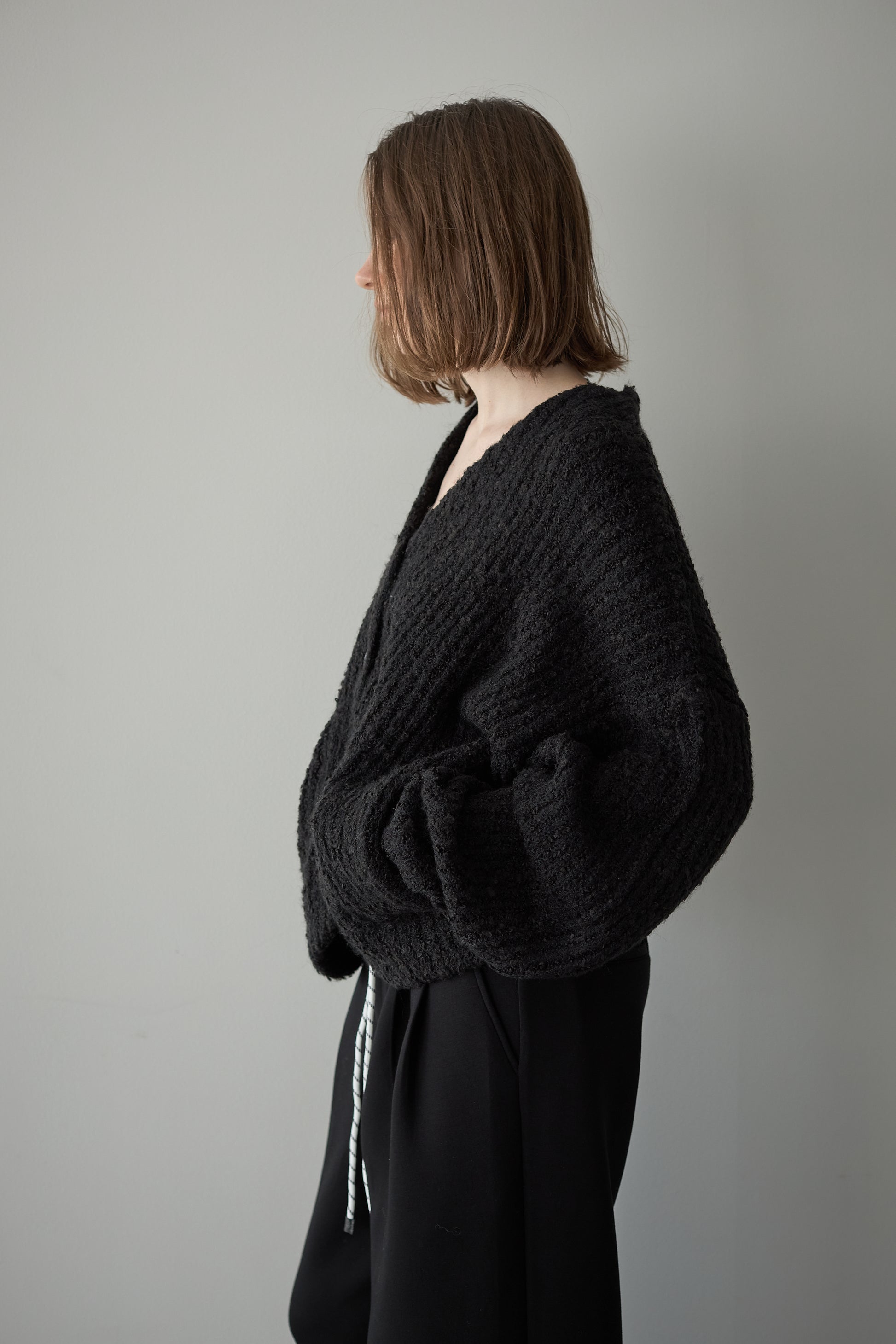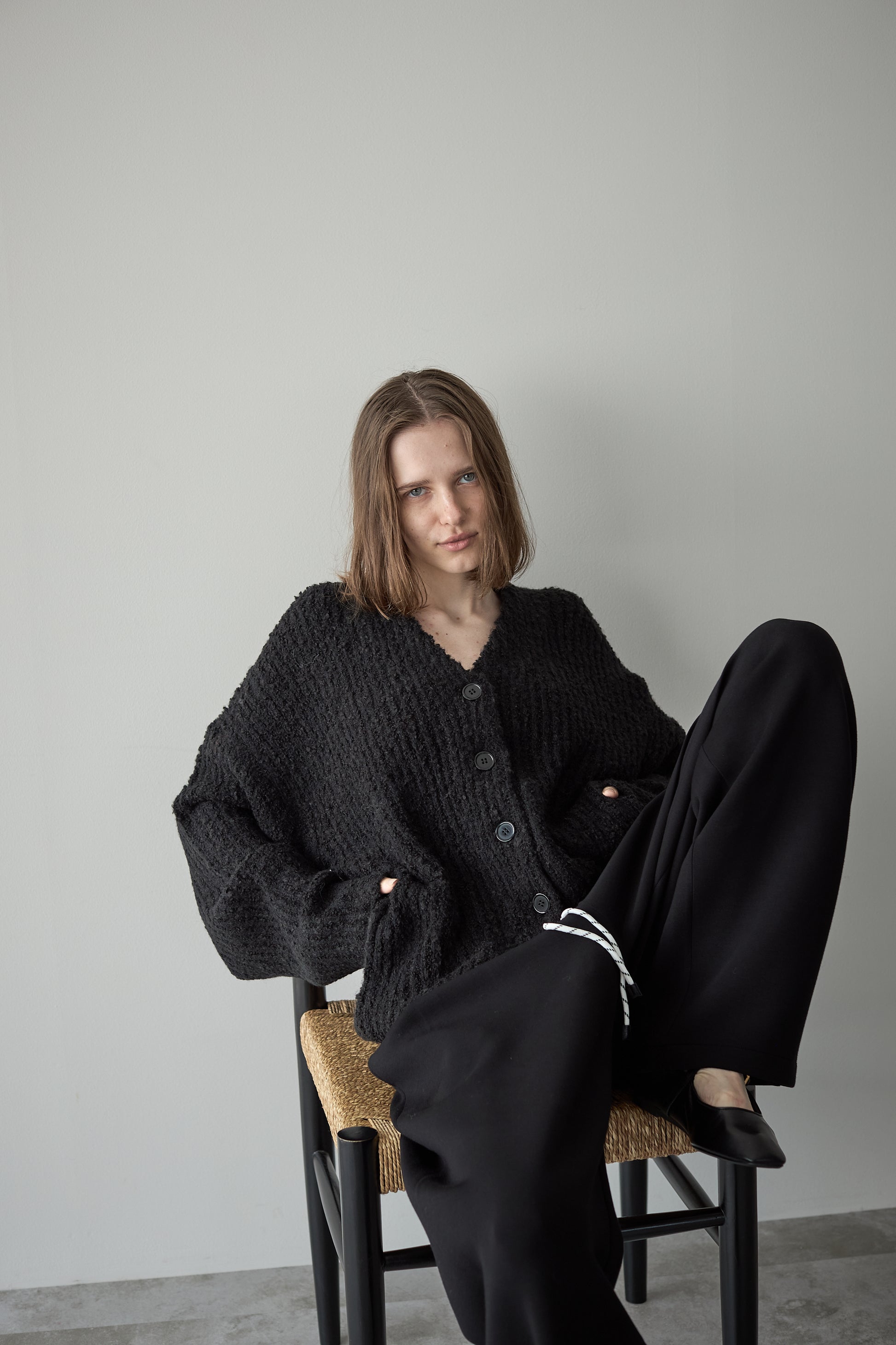 ふんわりとしたブークレ素材で仕立てたロングカーディガン。