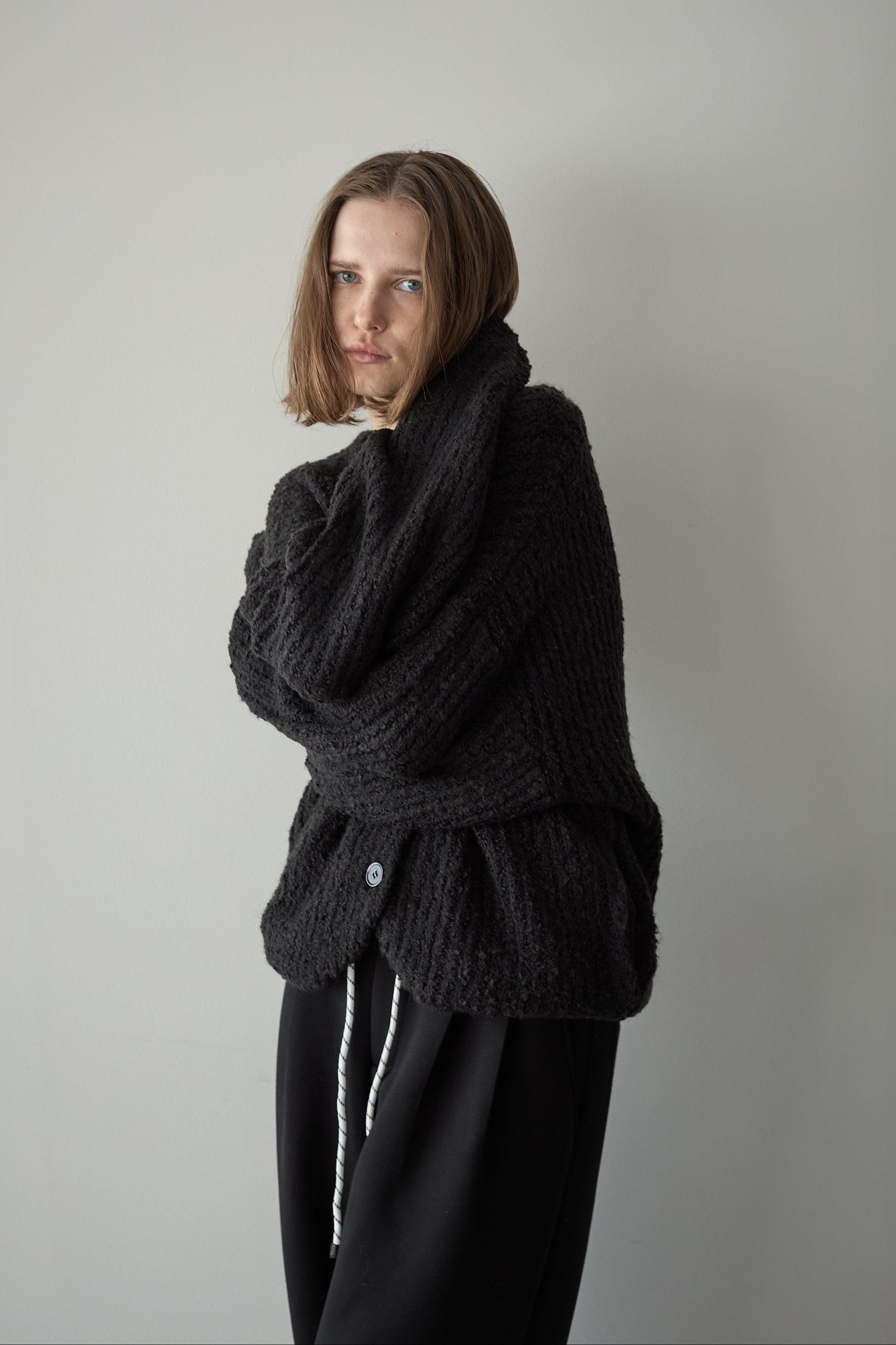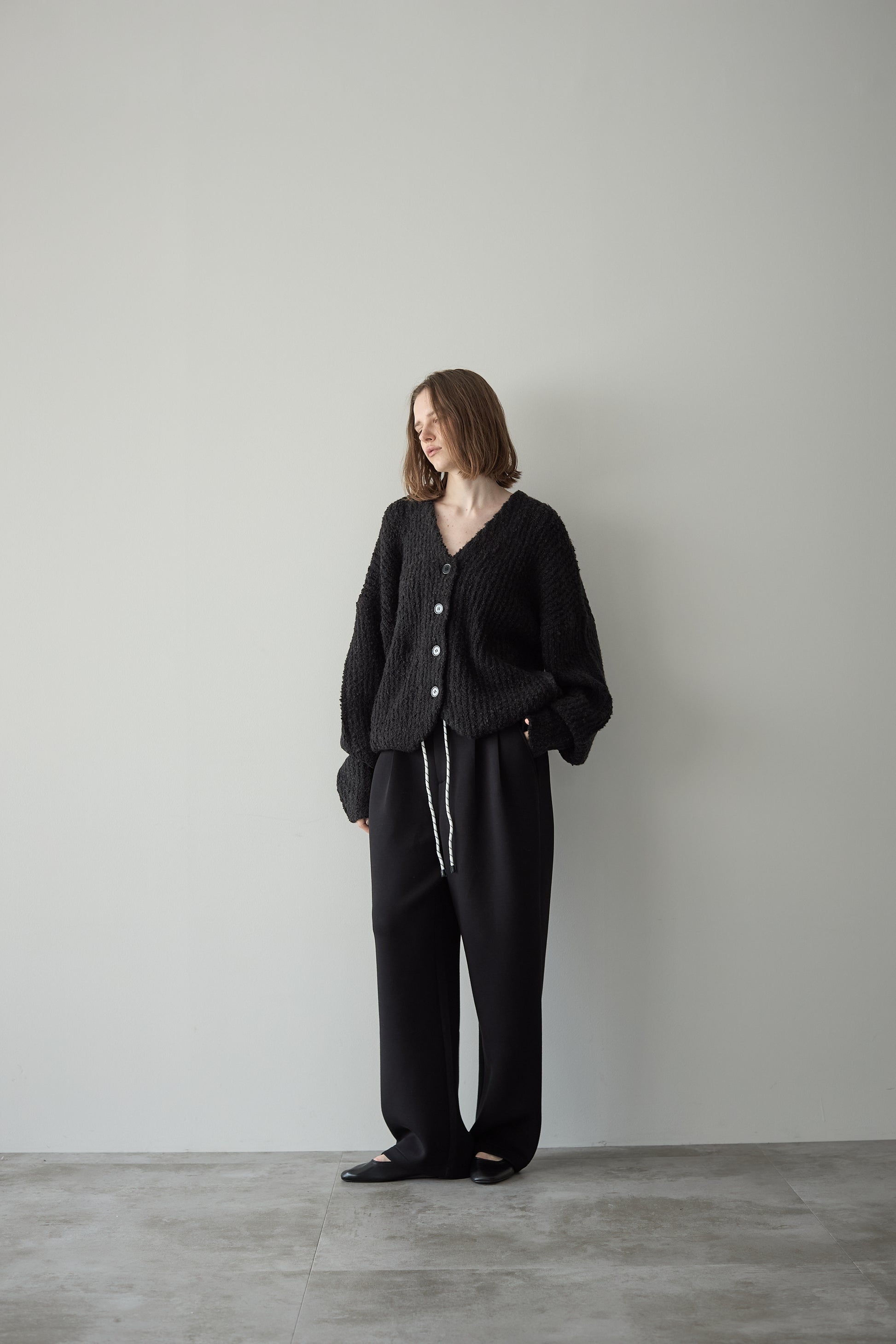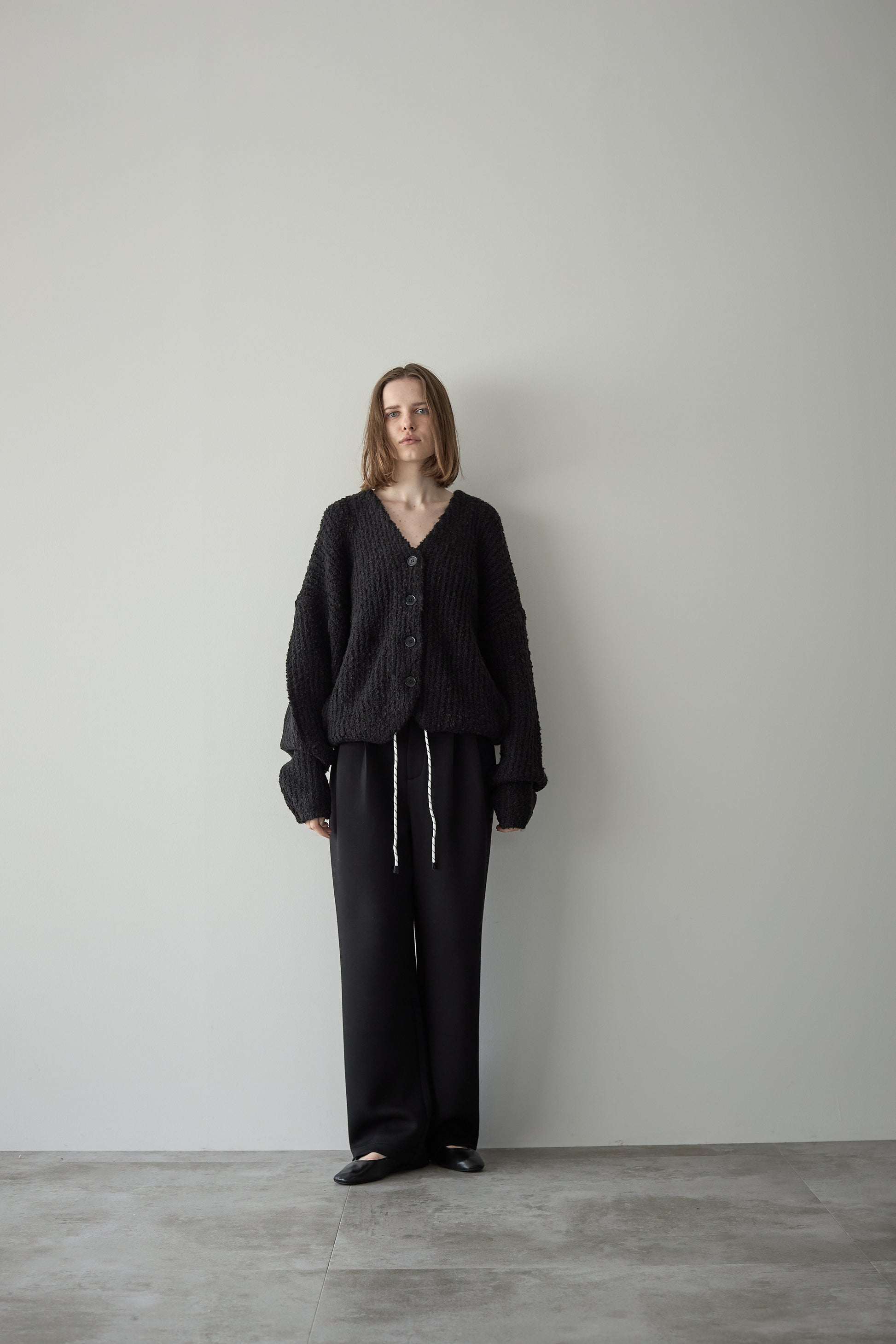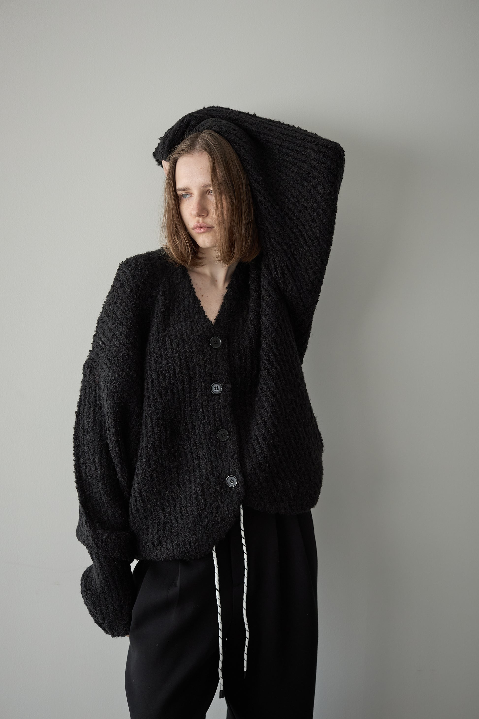 ふんわりとしたブークレ素材で仕立てたロングカーディガン。