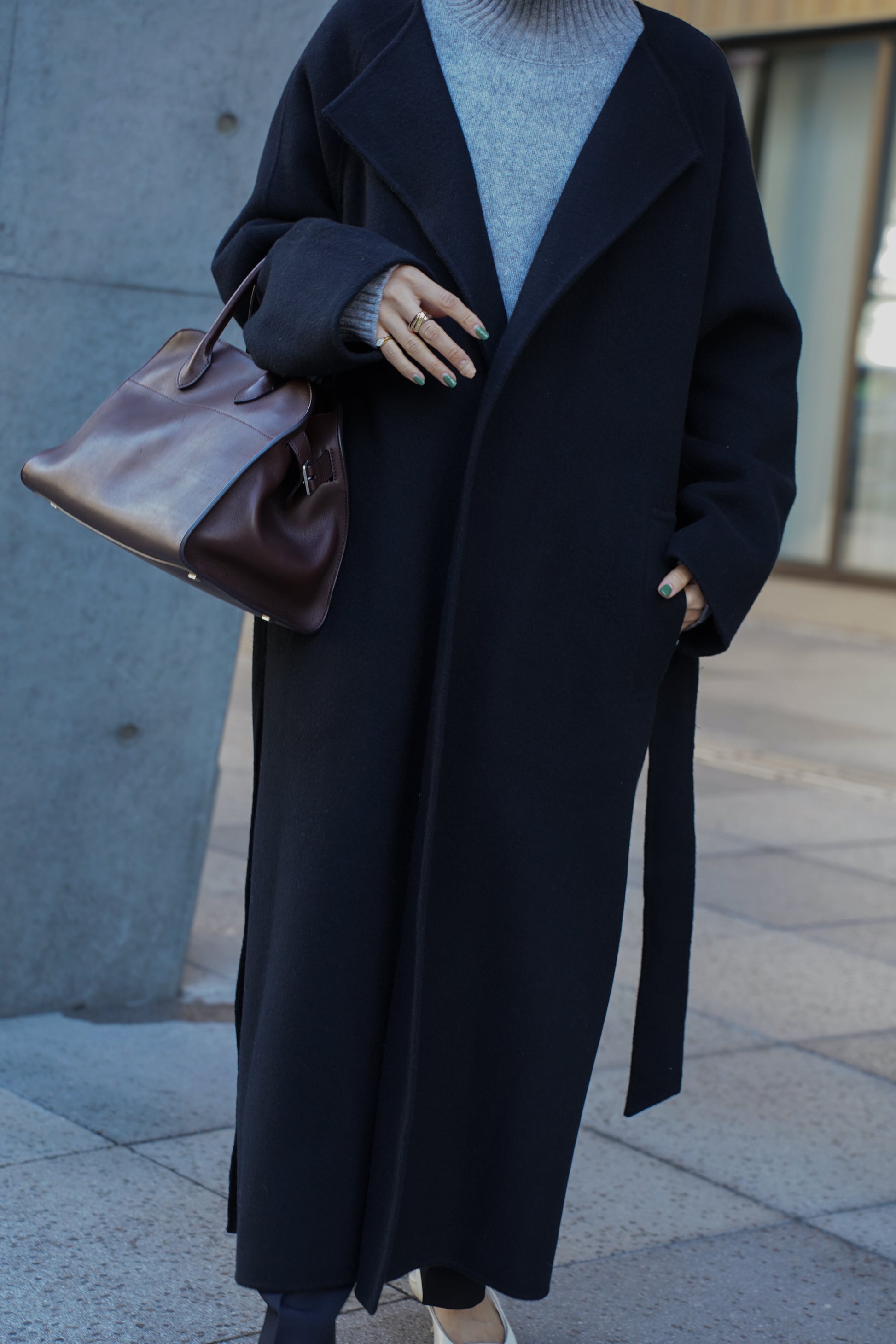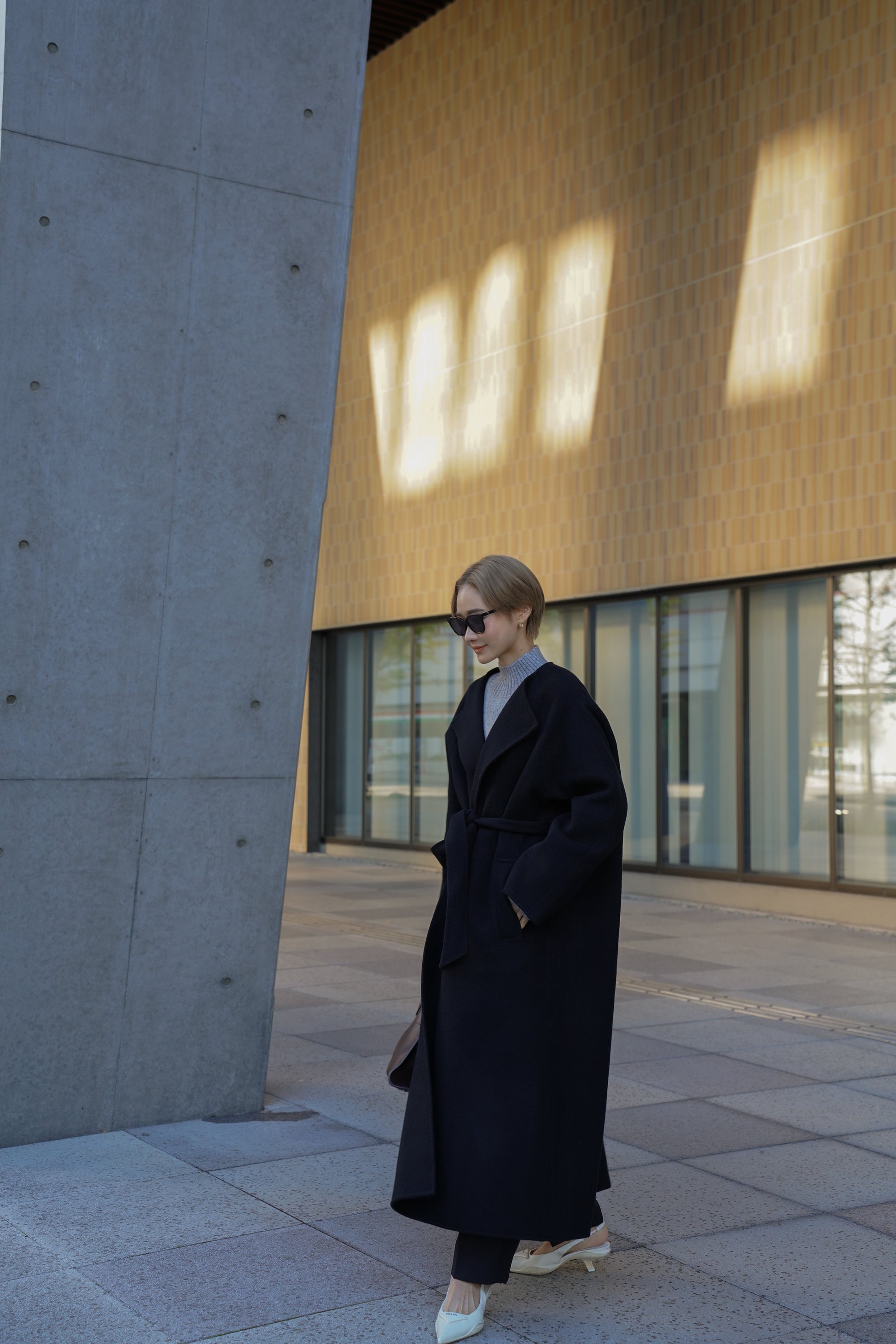 上質なSUPER140ウールを贅沢に使用したリバー仕立てのロングコート。
