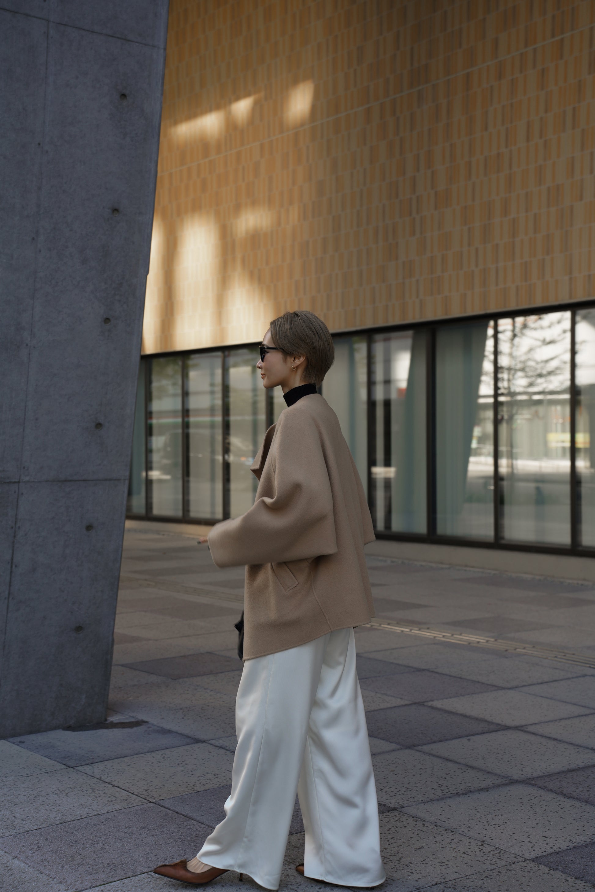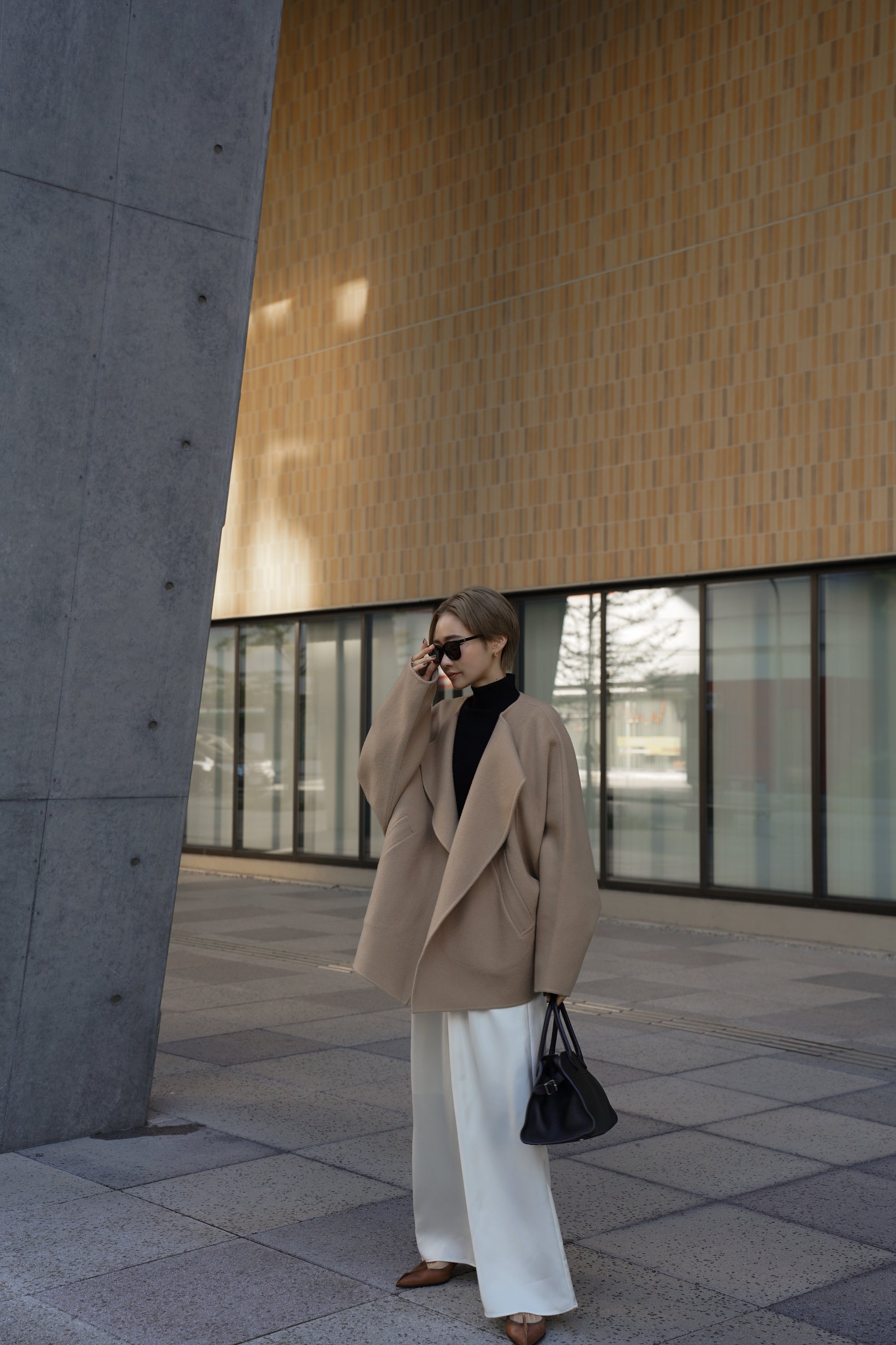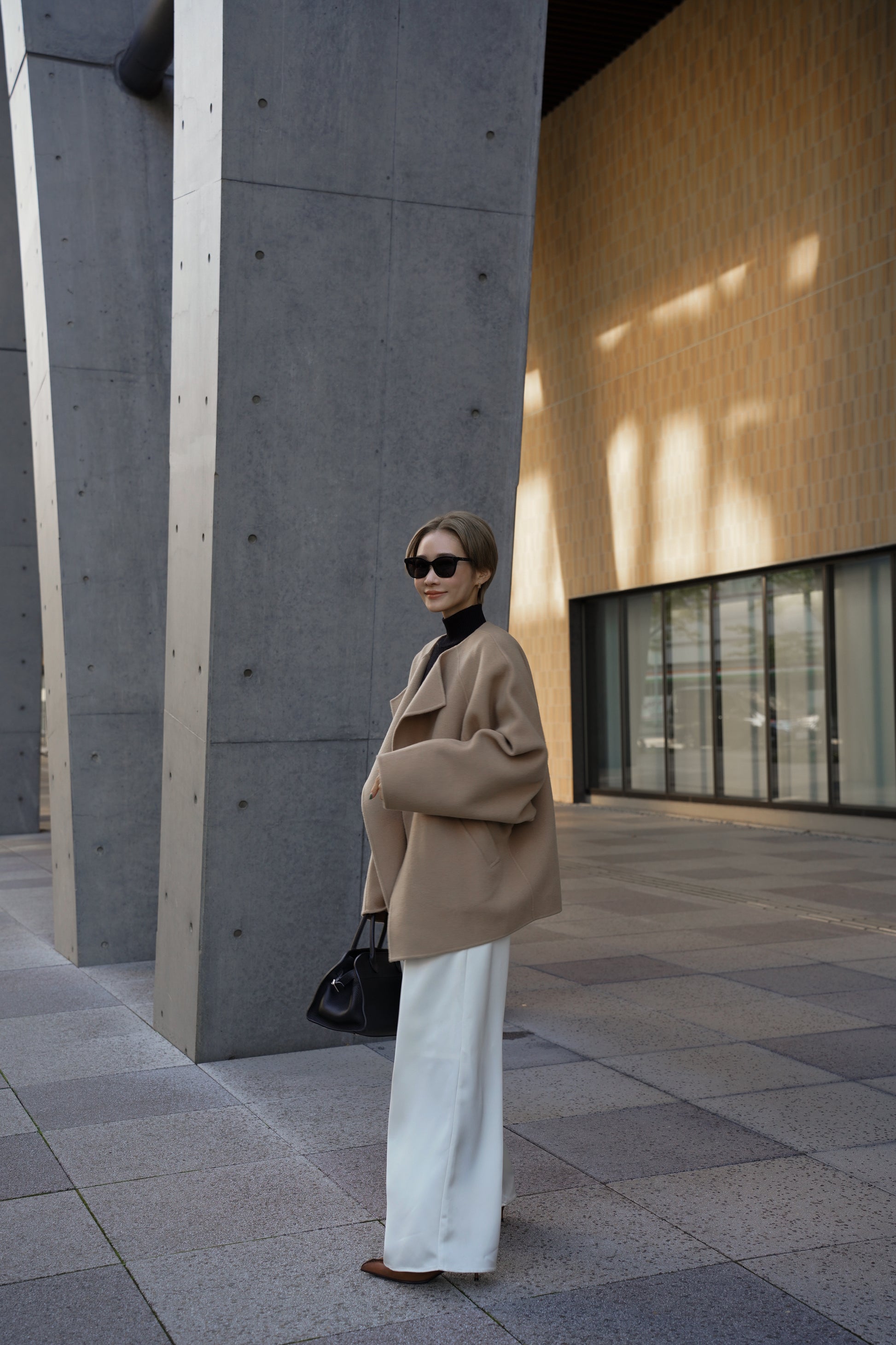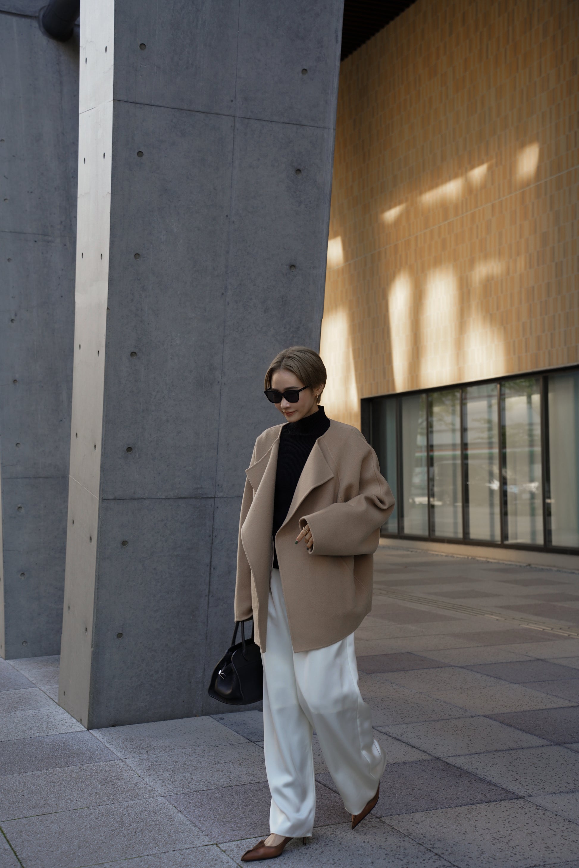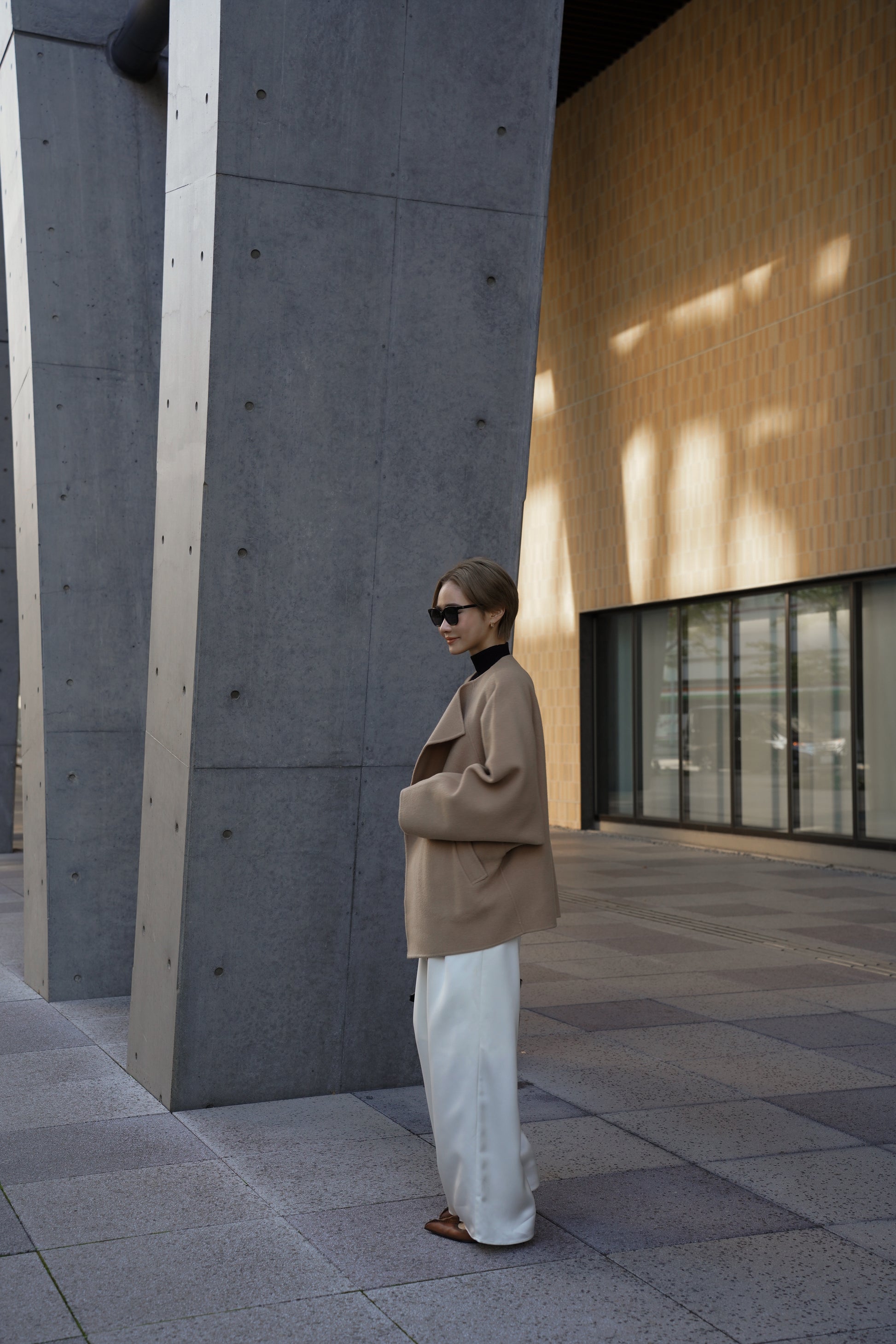 "柔らかなフォルムで魅せる、軽やかなショートコート"