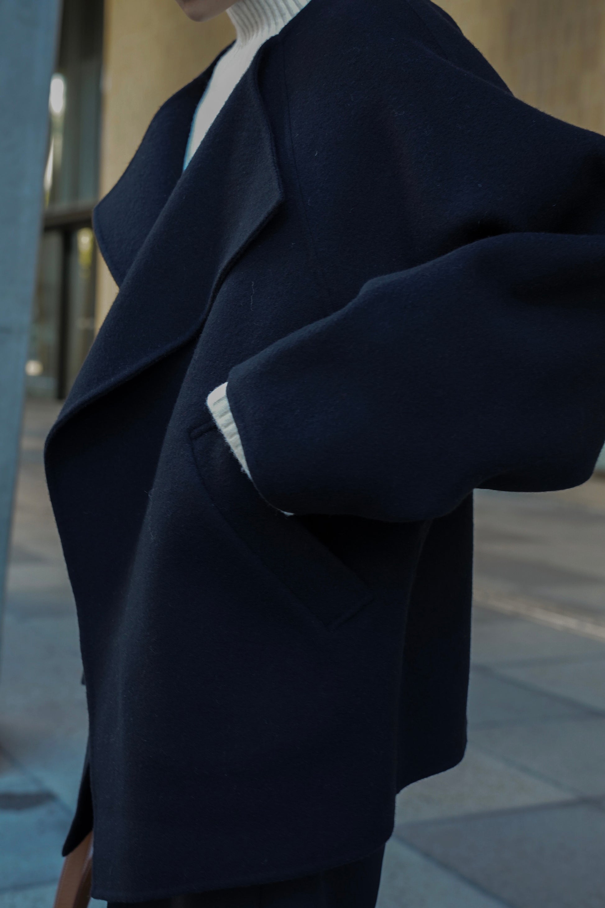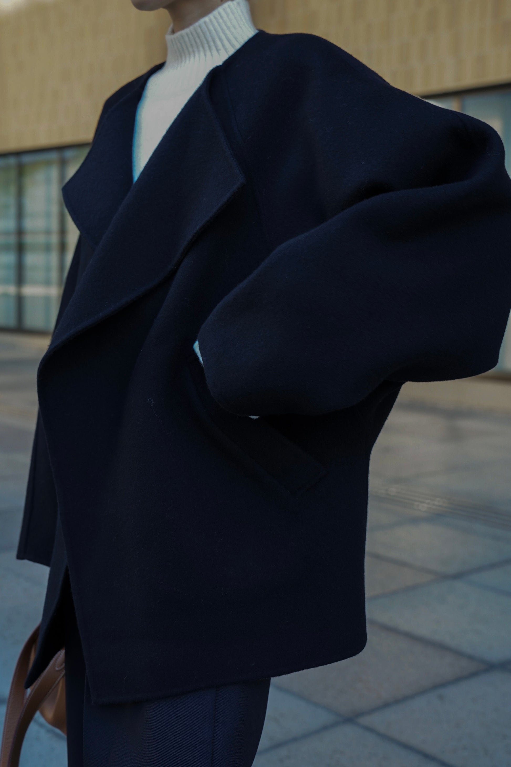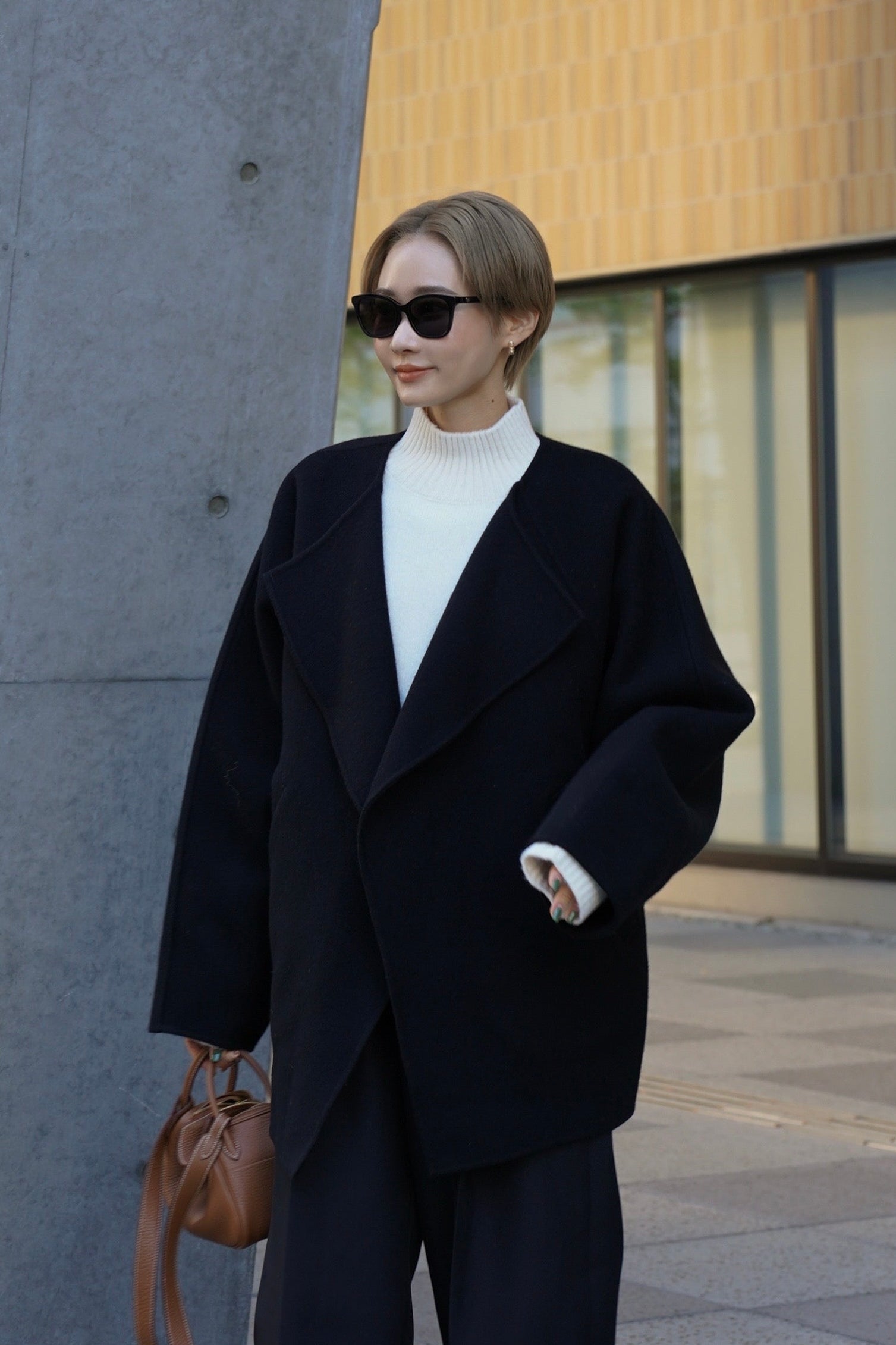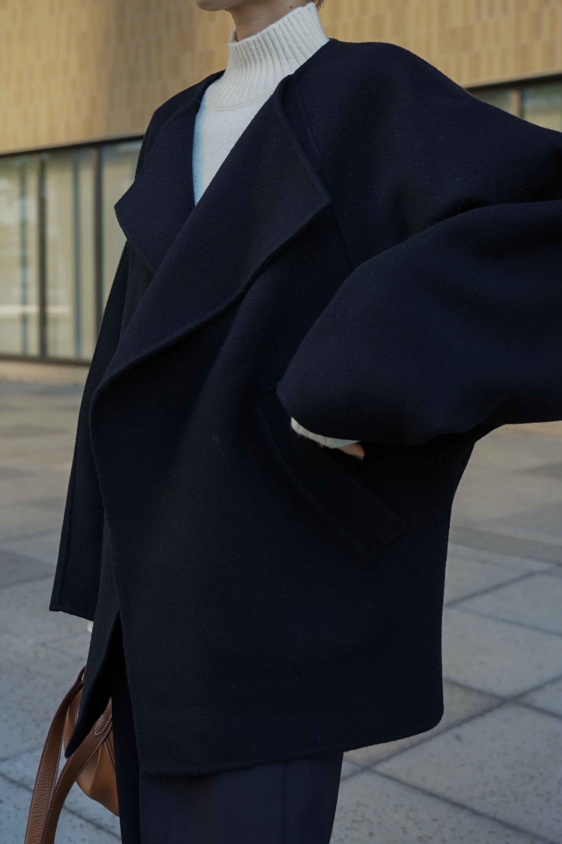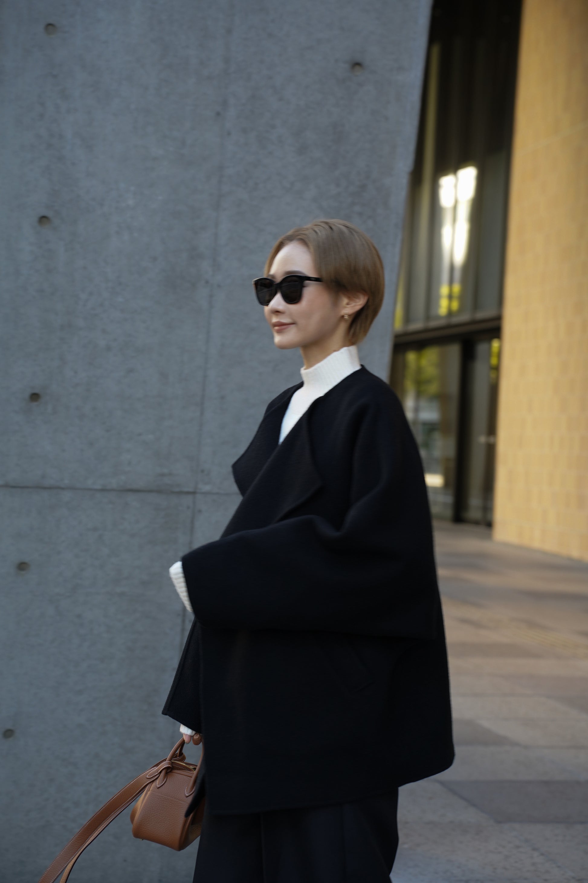 "柔らかなフォルムで魅せる、軽やかなショートコート"