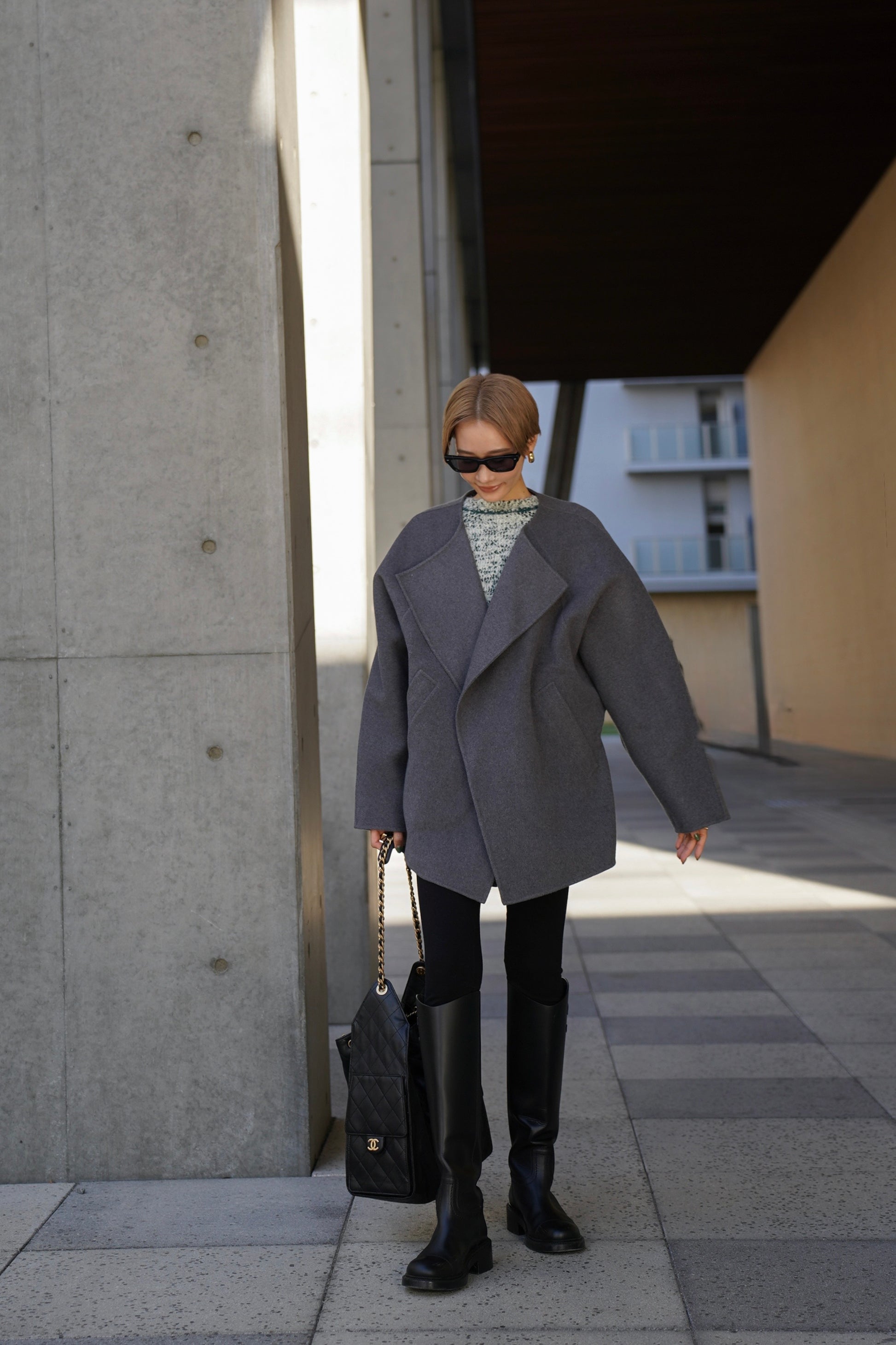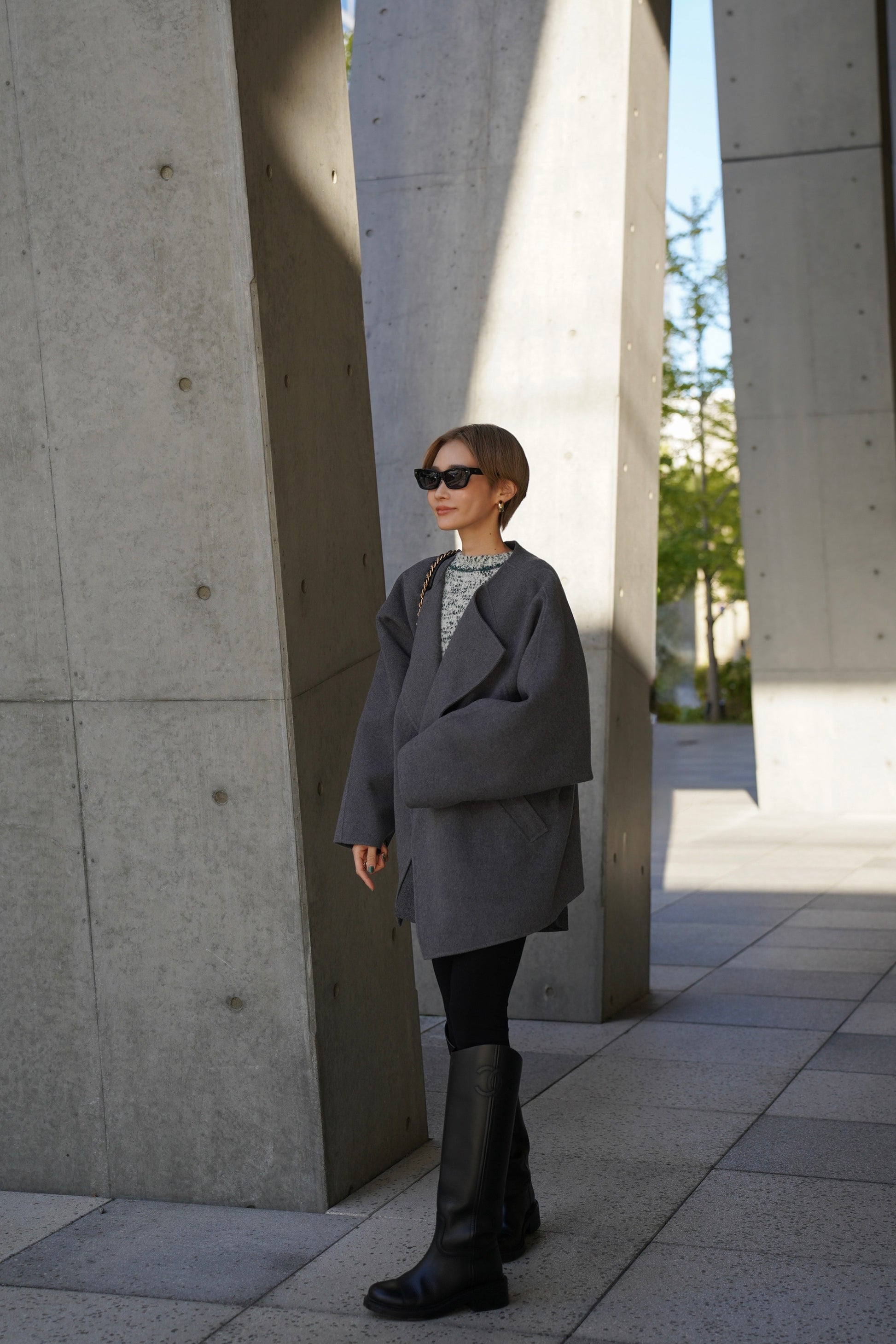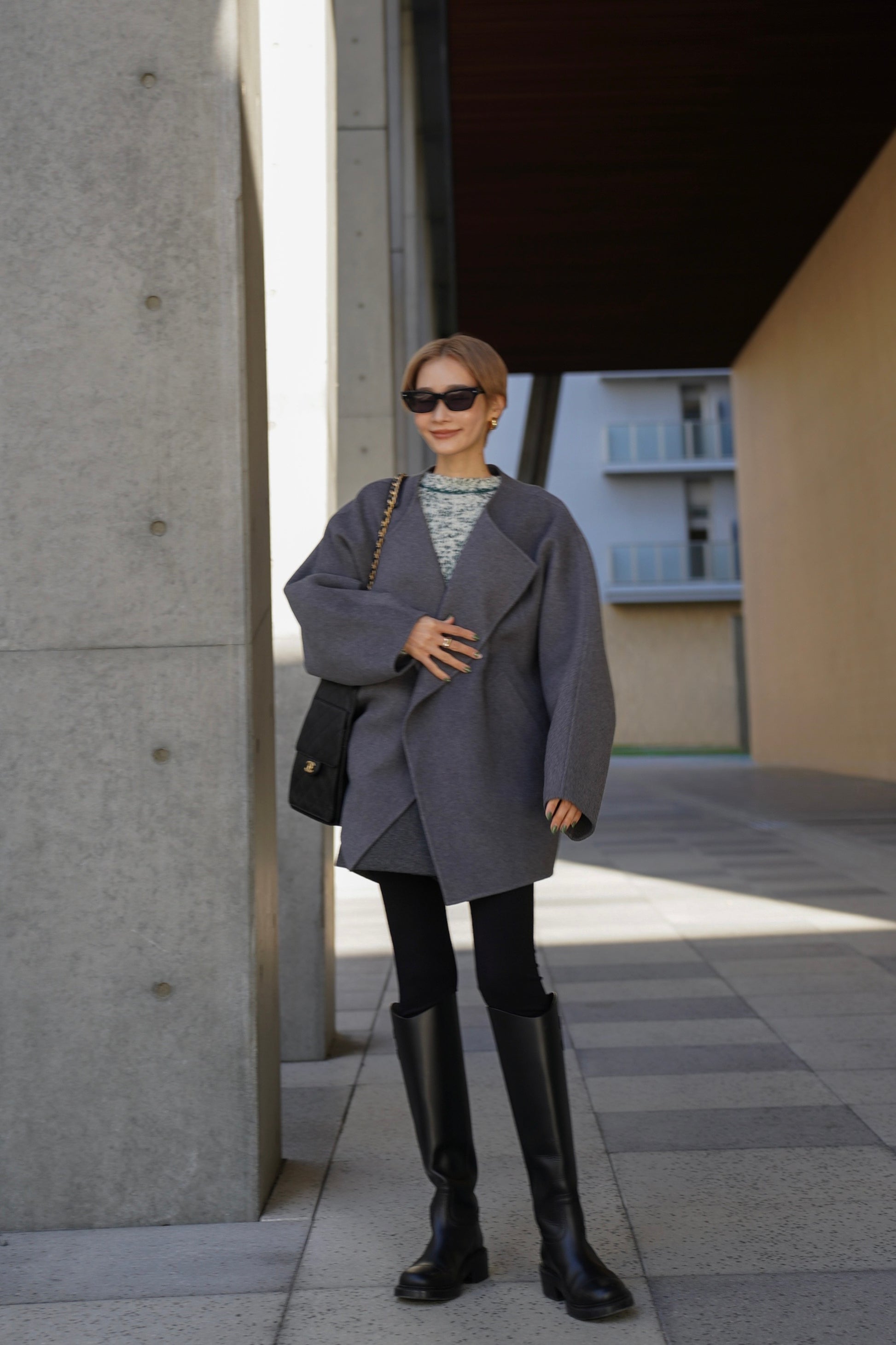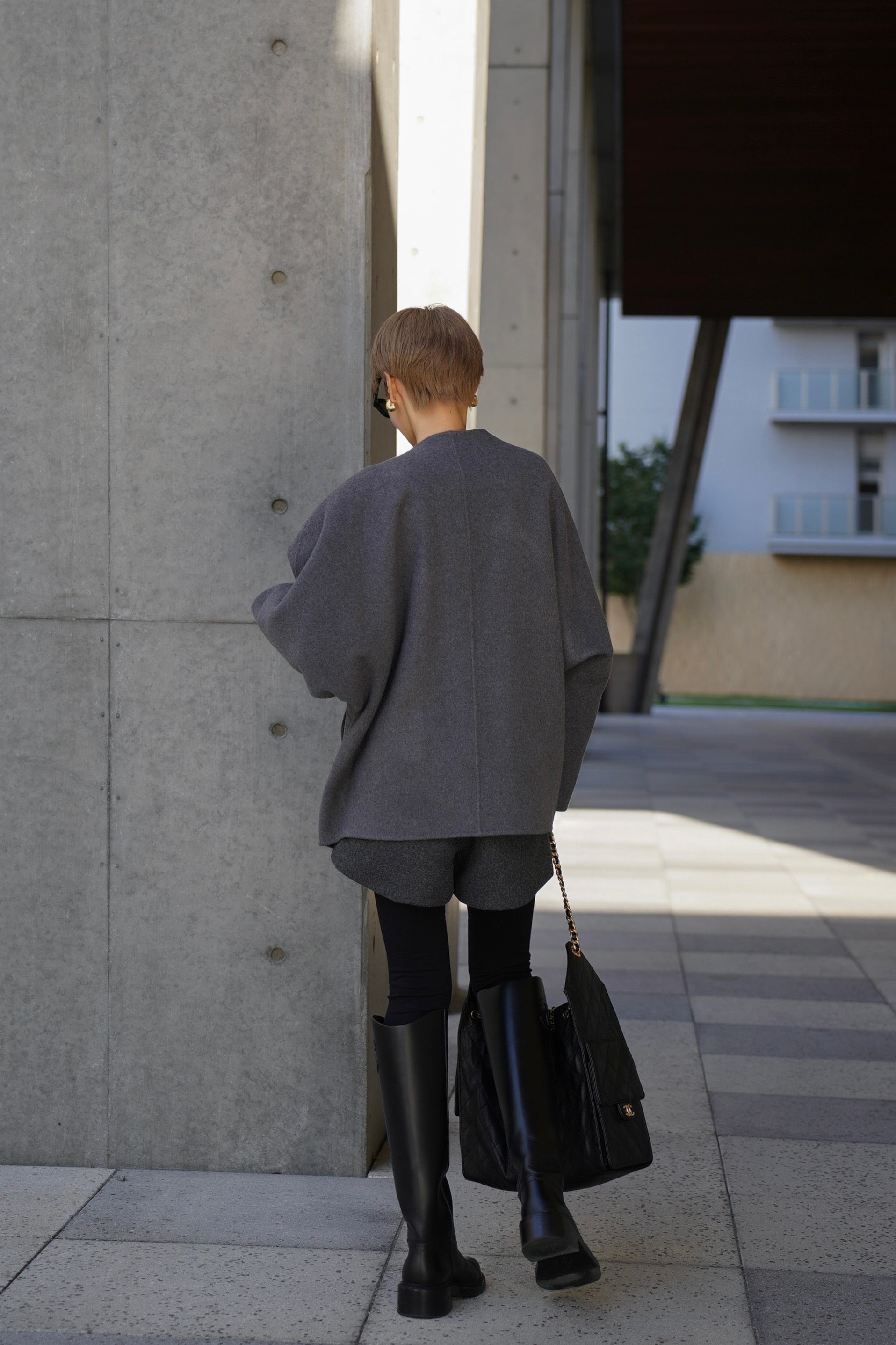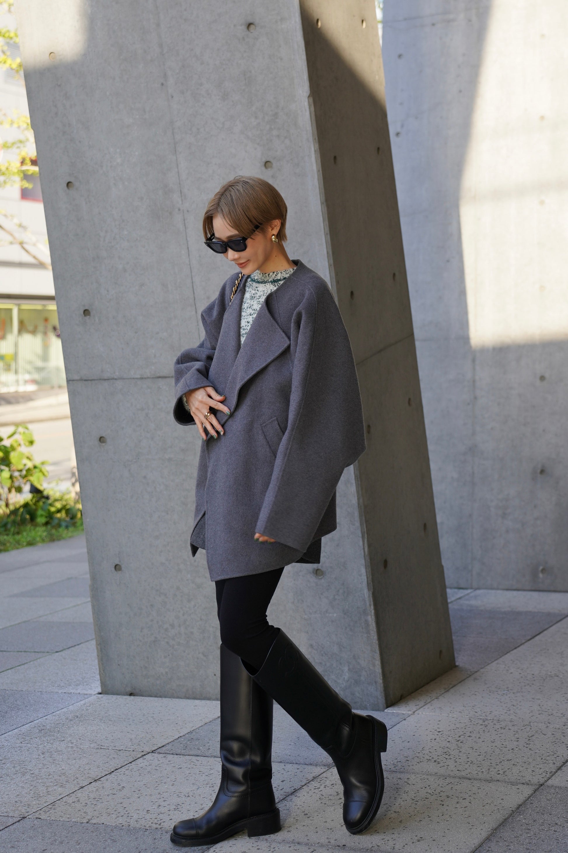 "柔らかなフォルムで魅せる、軽やかなショートコート"