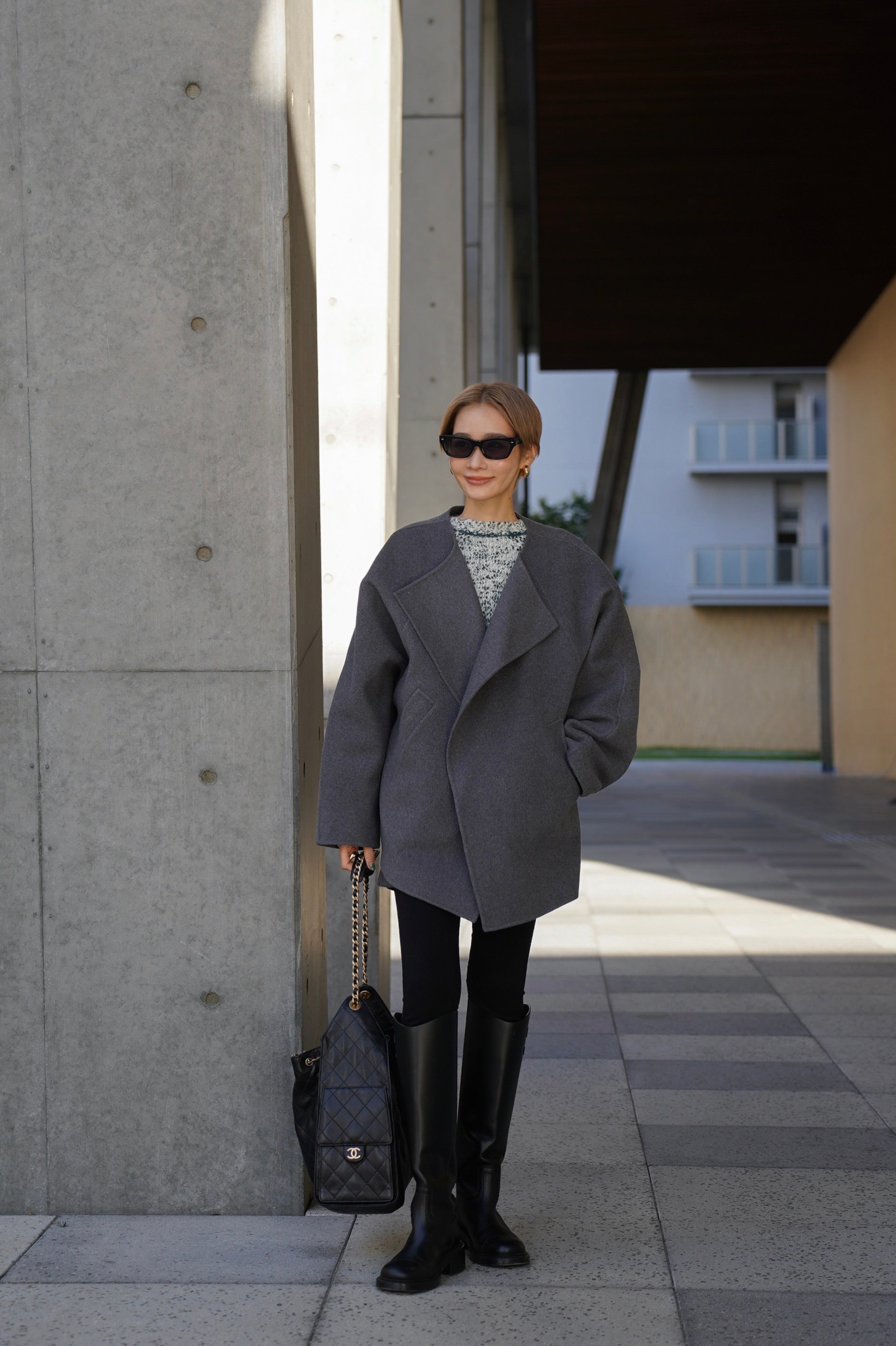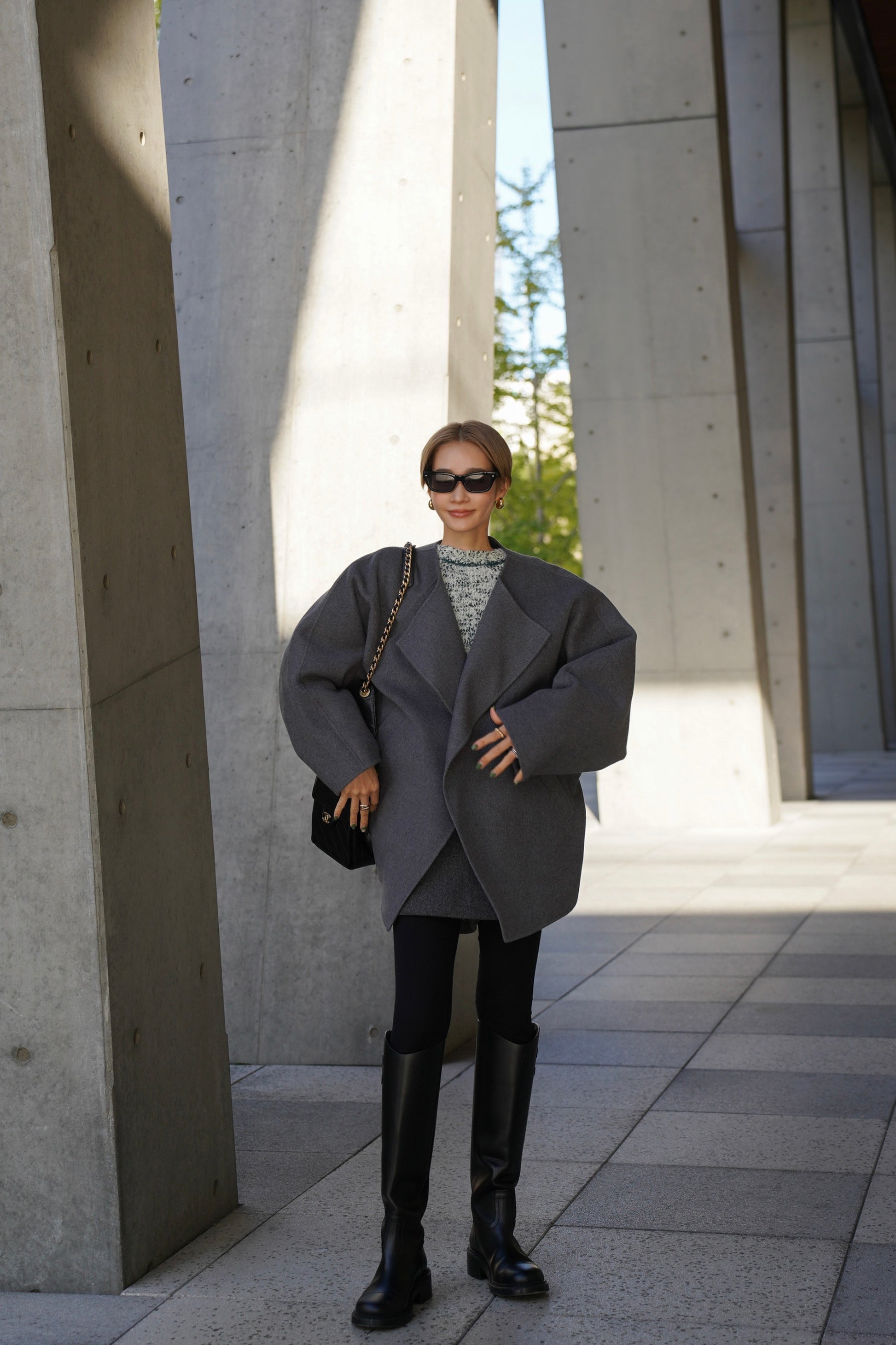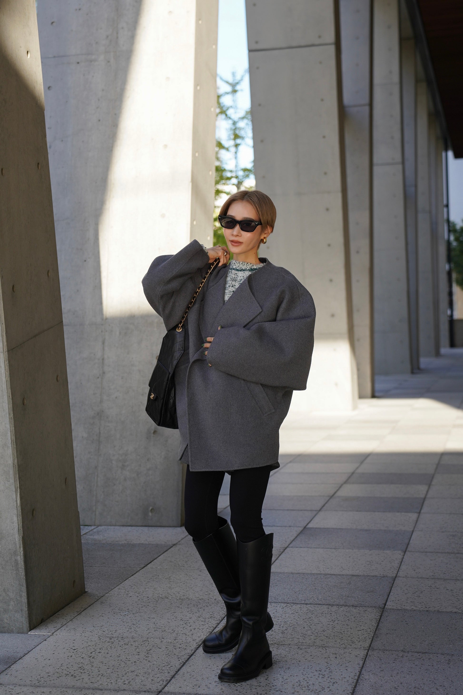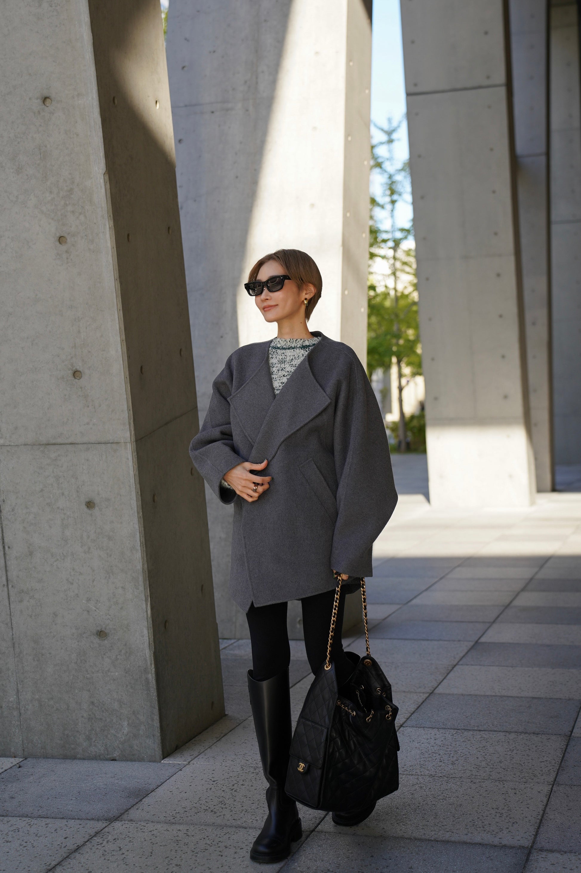 "柔らかなフォルムで魅せる、軽やかなショートコート"