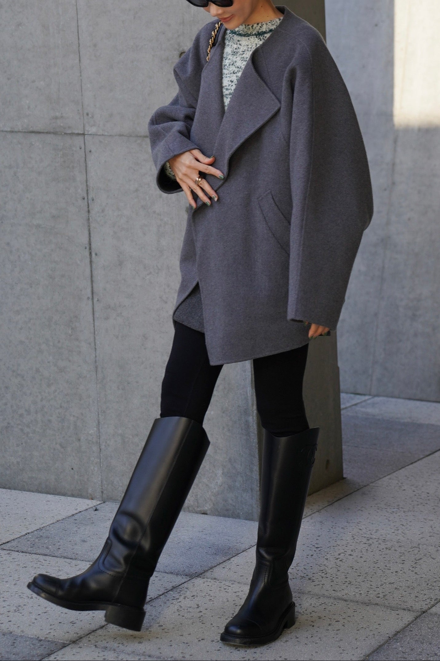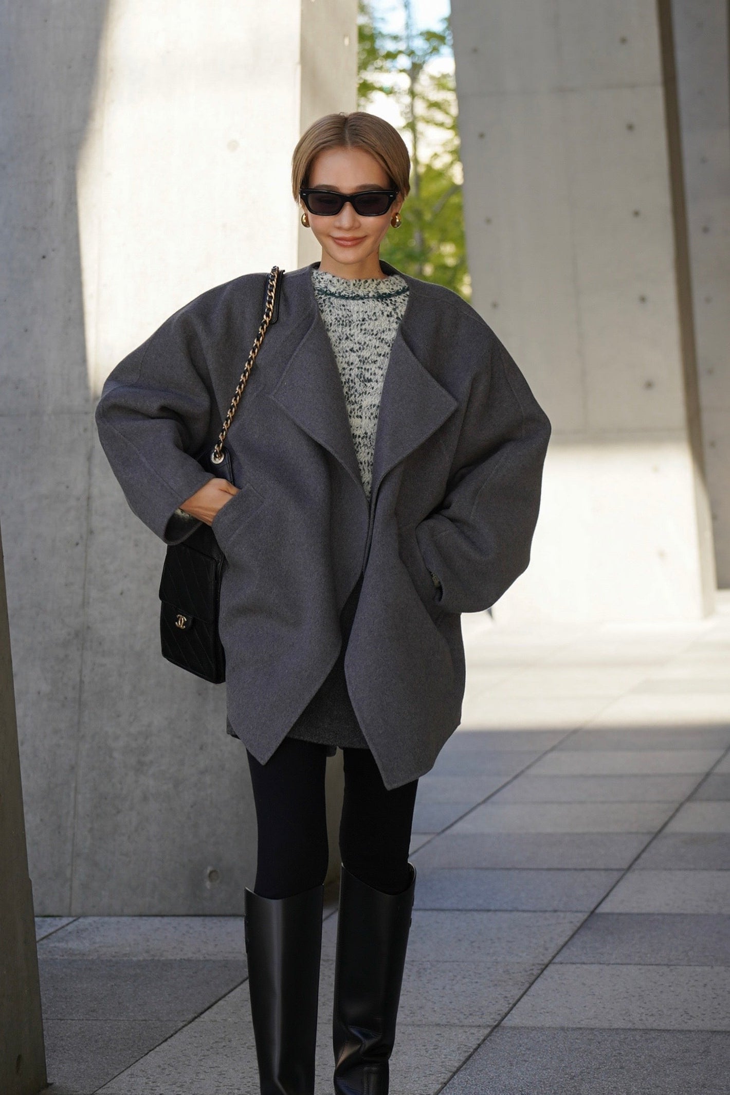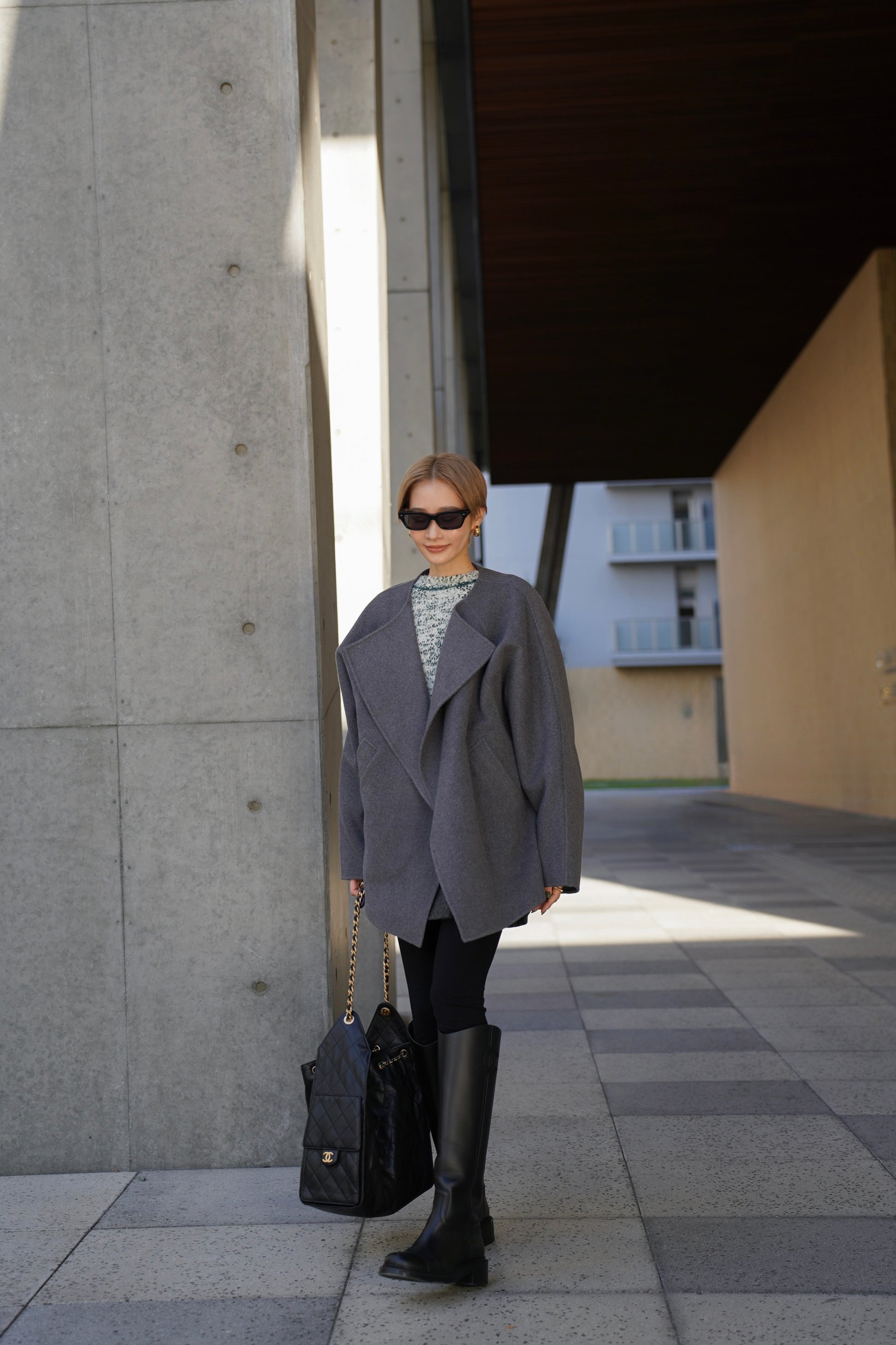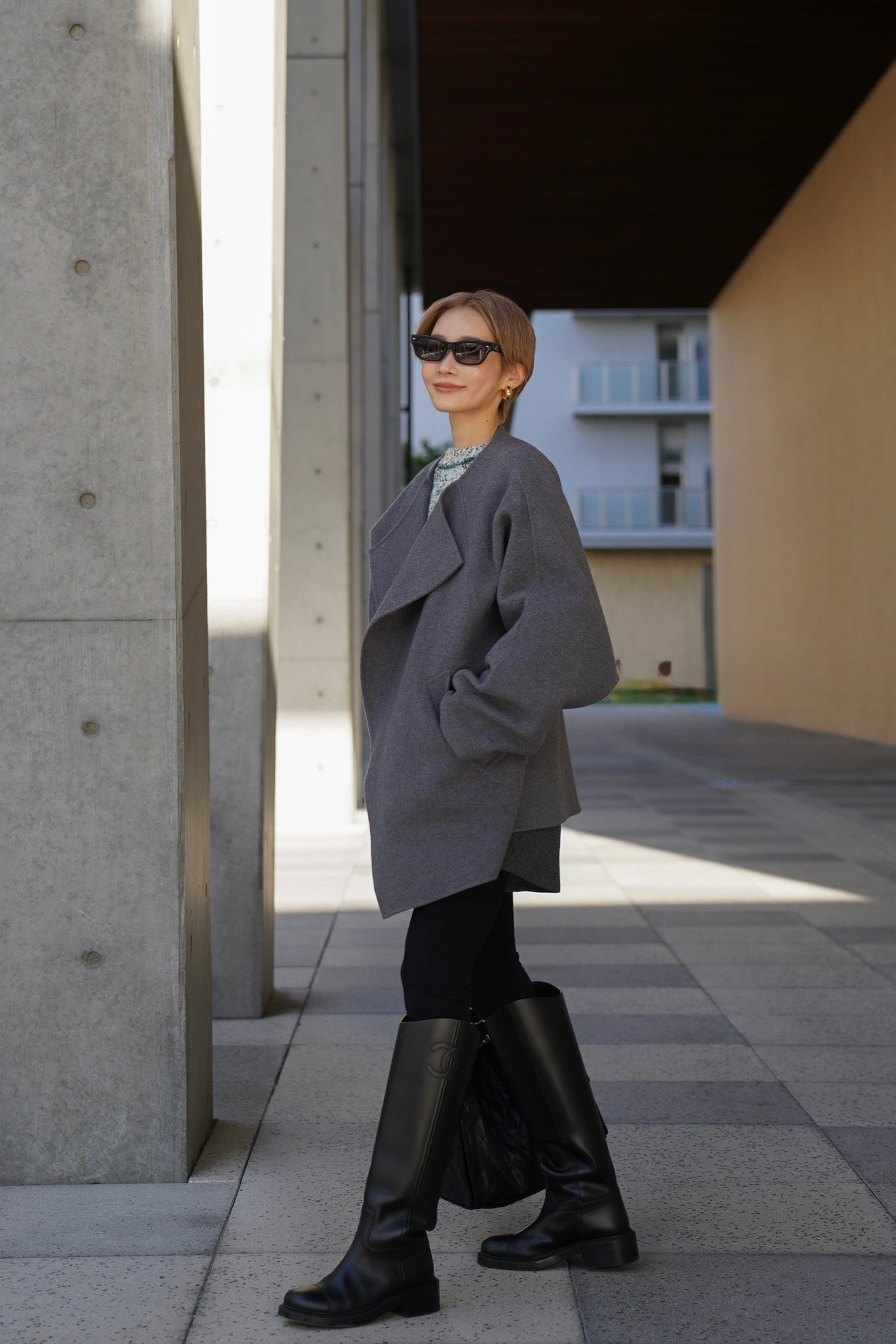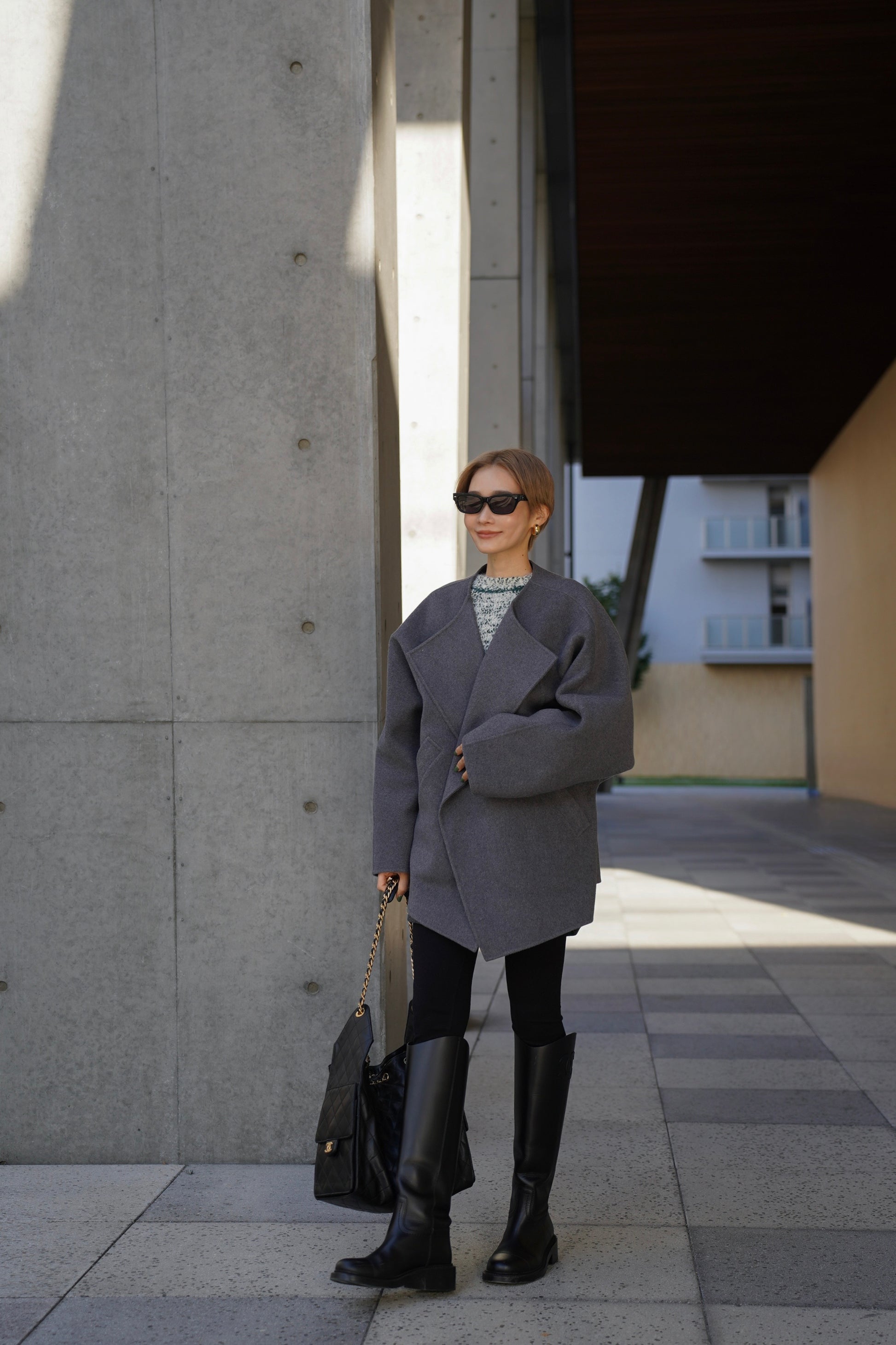 "柔らかなフォルムで魅せる、軽やかなショートコート"