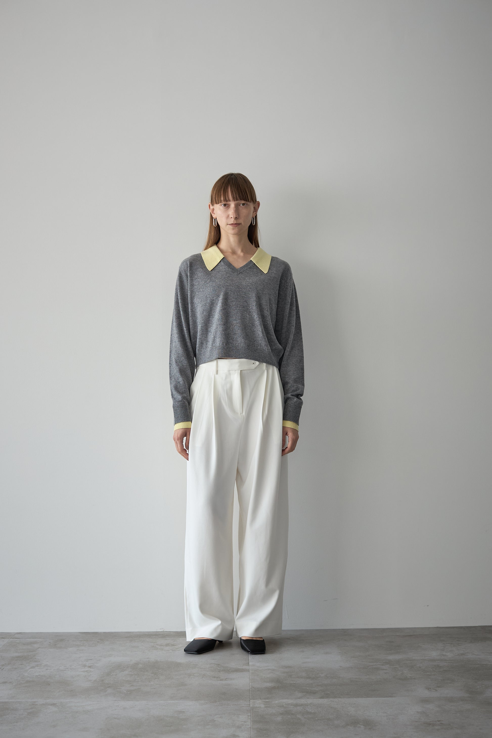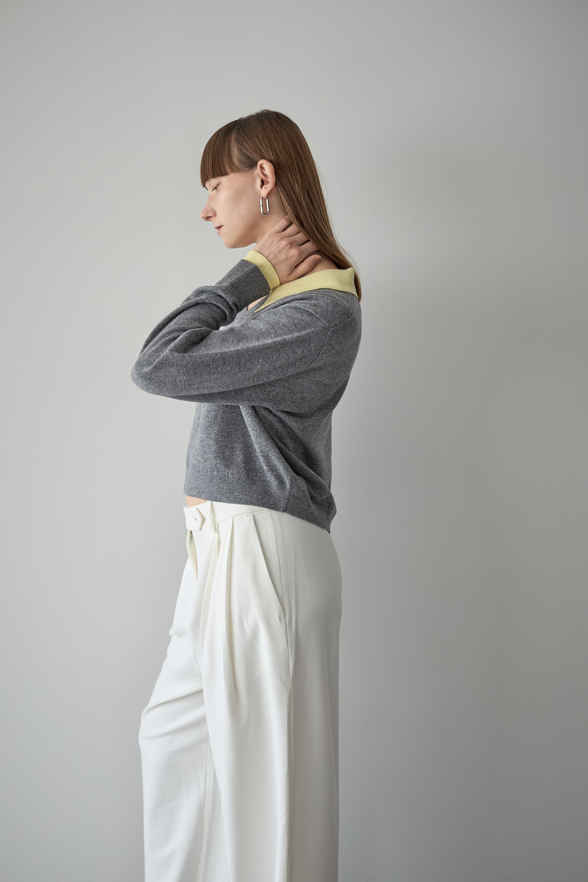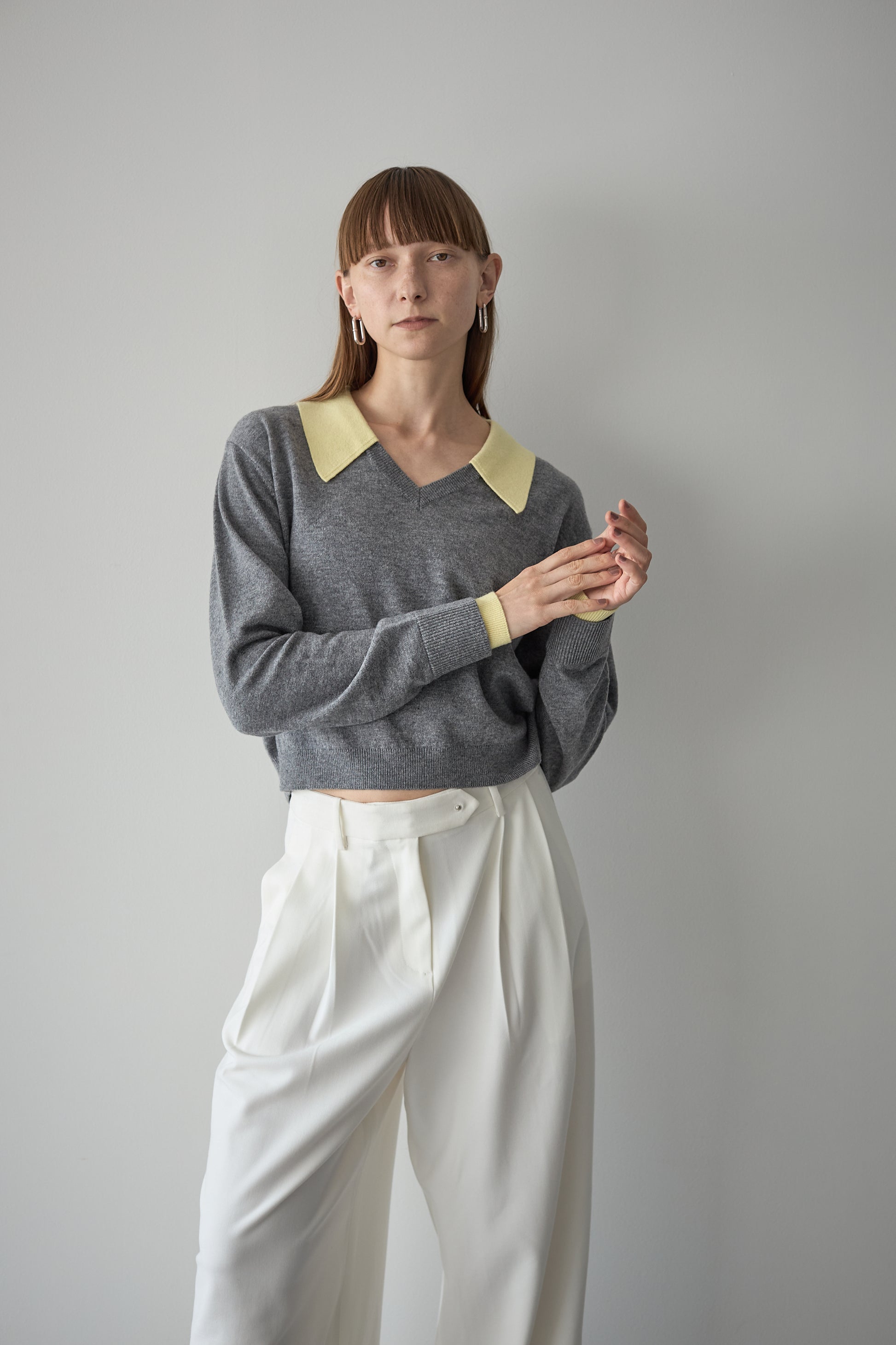 シンプルながらも印象的なスタイリングが叶うニットです。