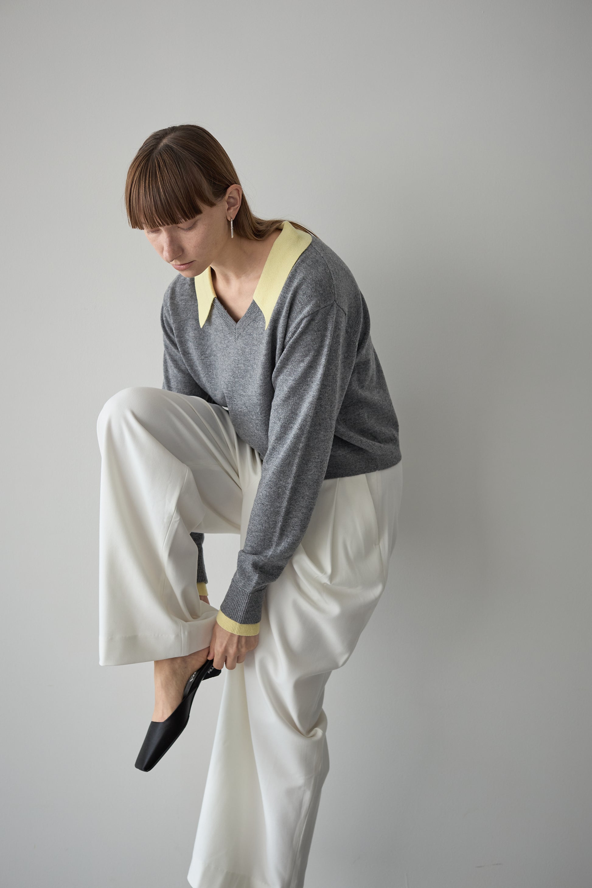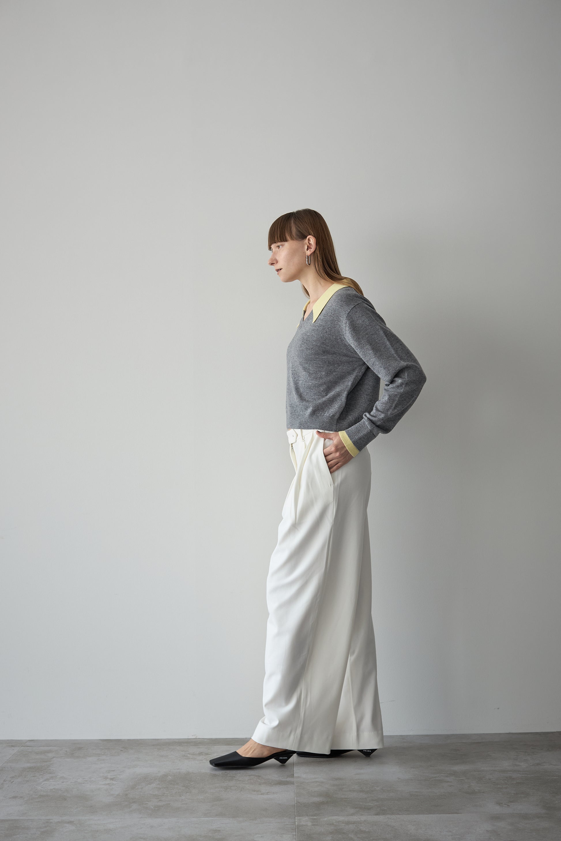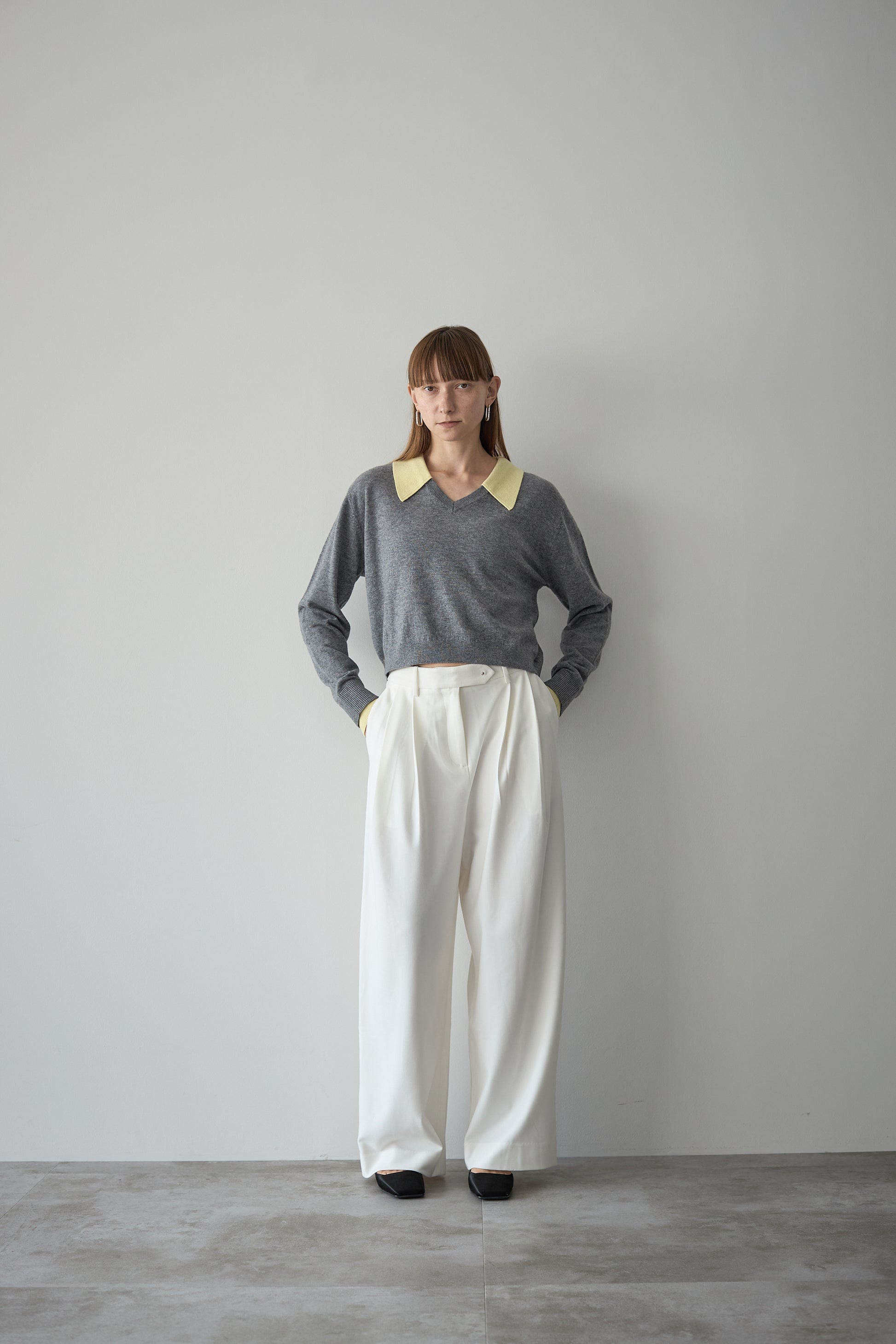 シンプルながらも印象的なスタイリングが叶うニットです。