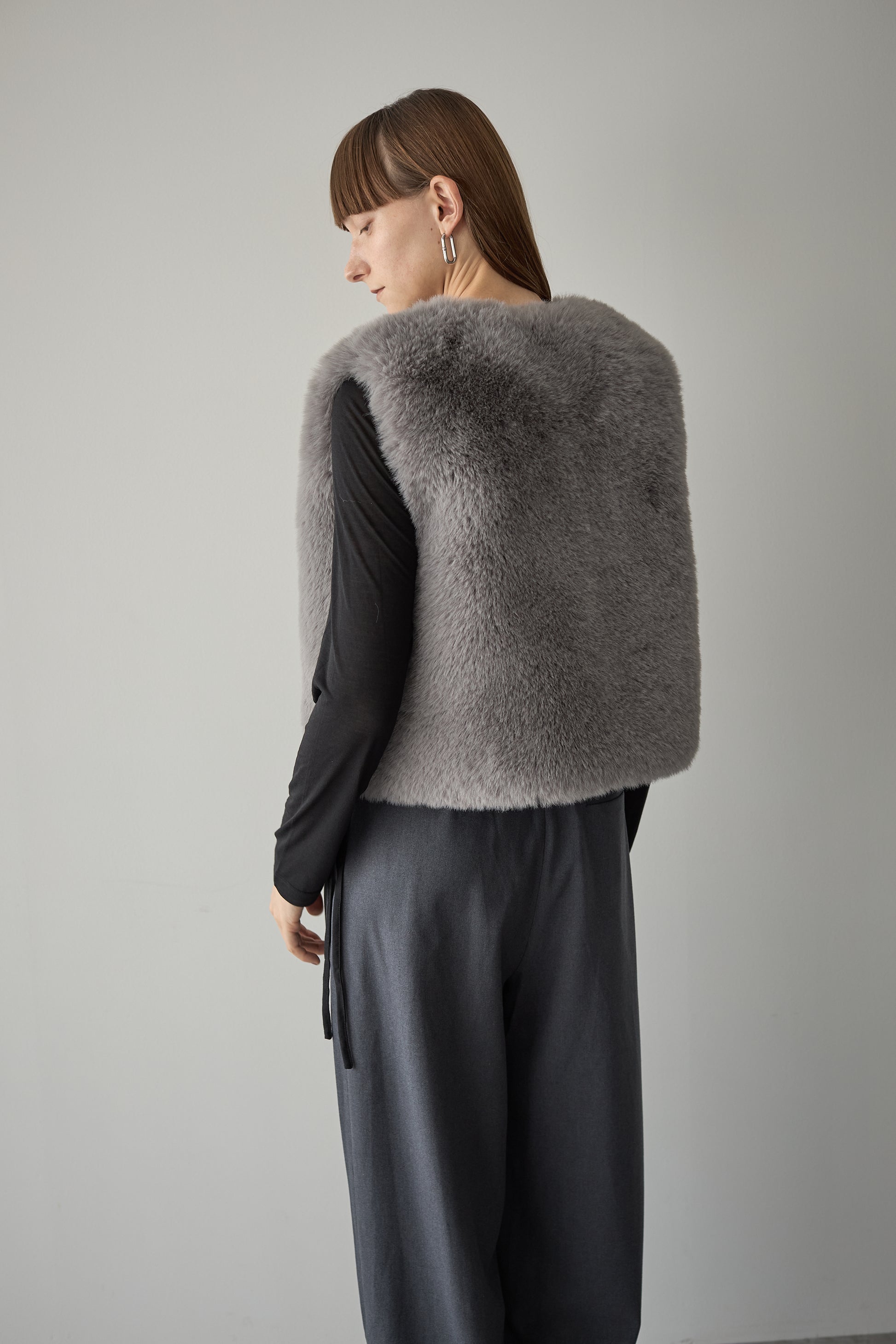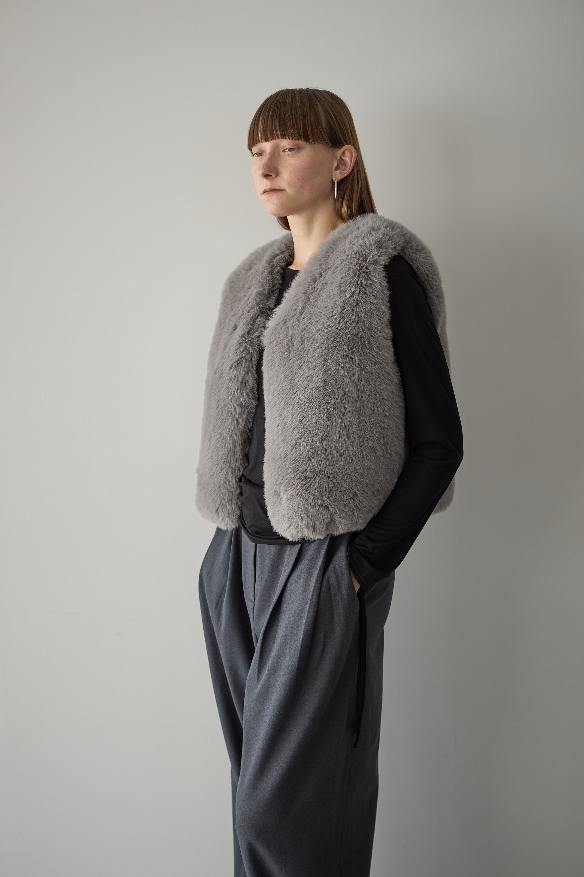 "品のある暖かみを纏う、ふわりと軽やかなフェイクファーベスト"