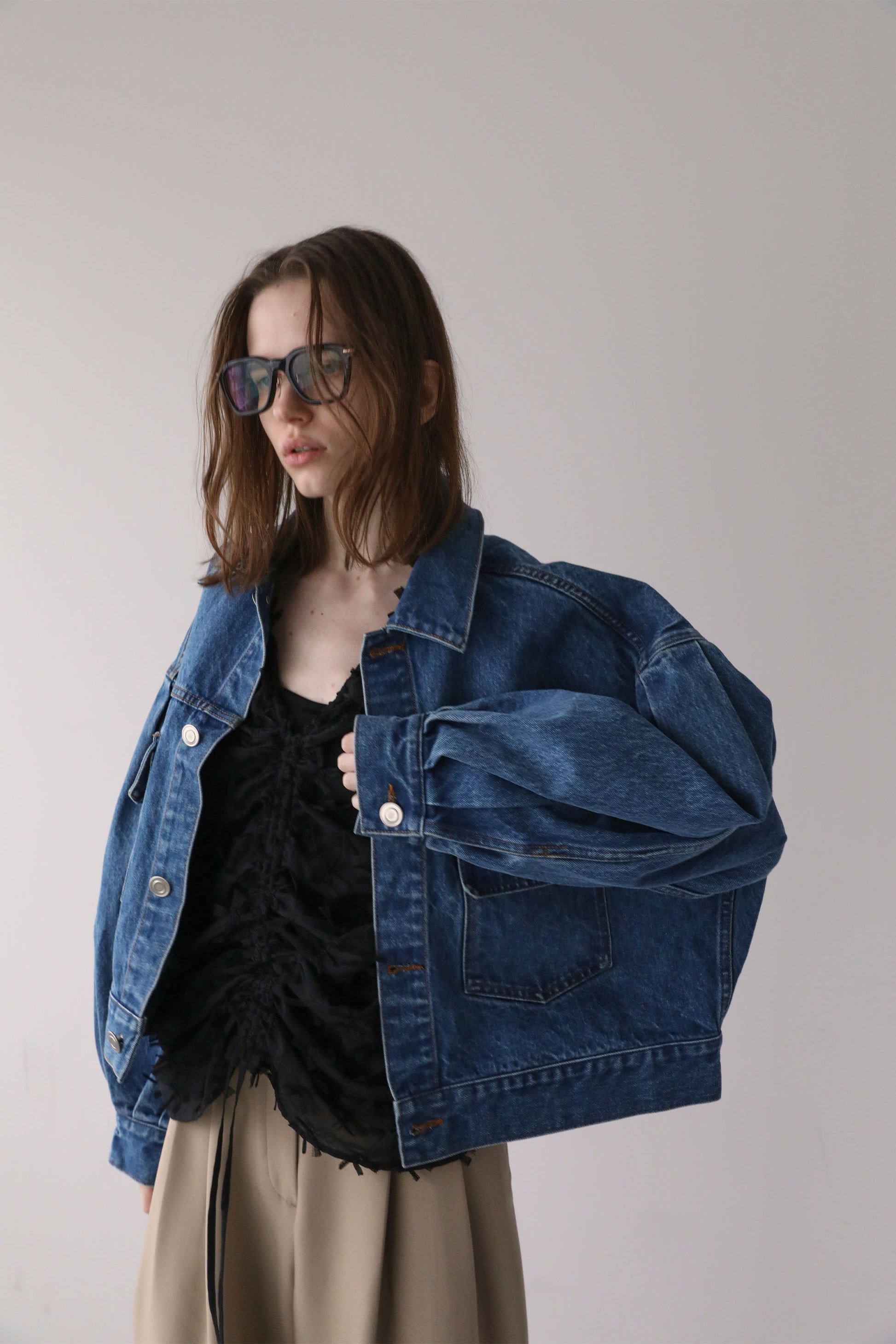 ゆとりのある身幅とドロップショルダーで、ラフさの中に抜け感のあるシルエットに仕上げています。