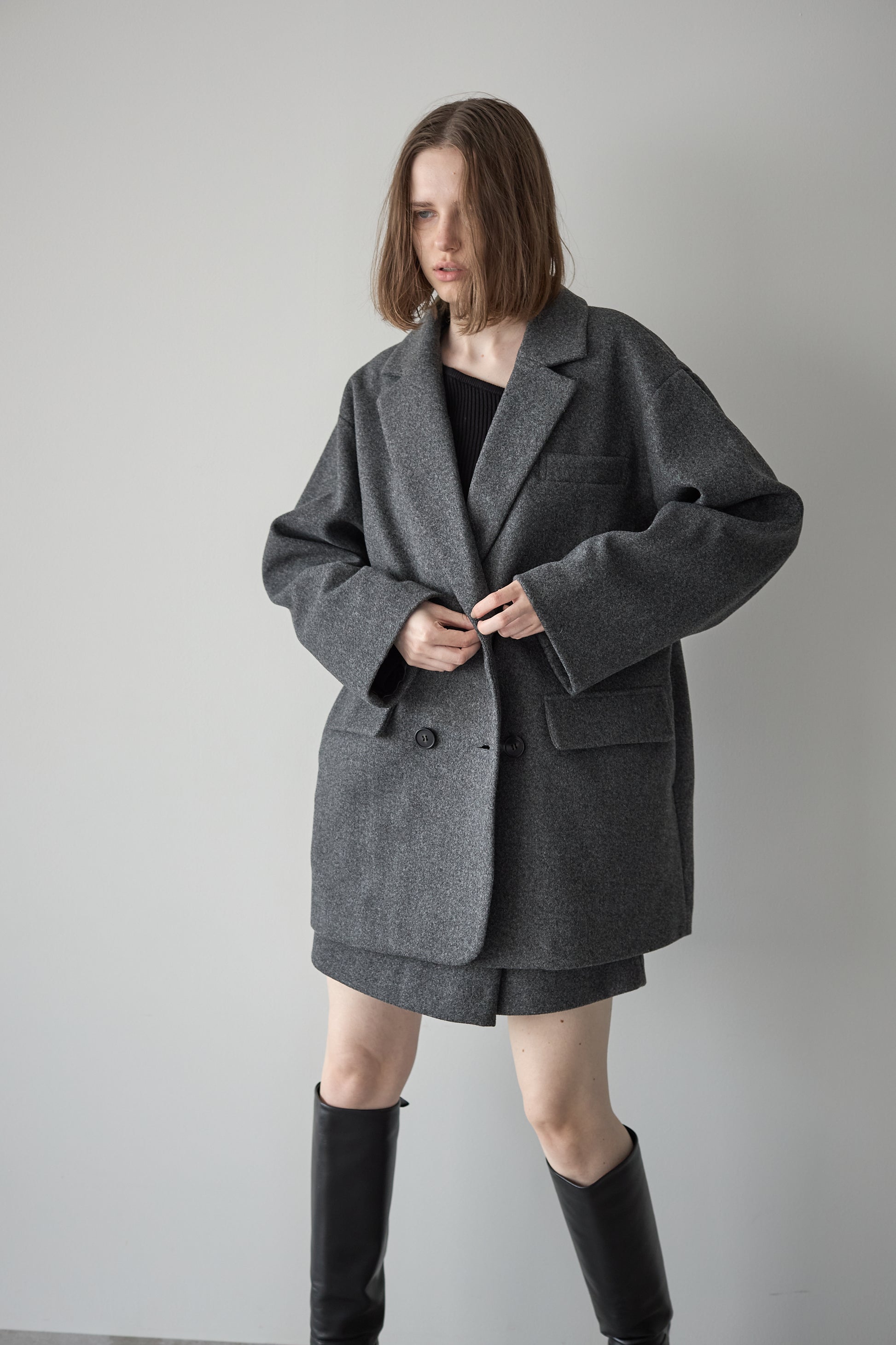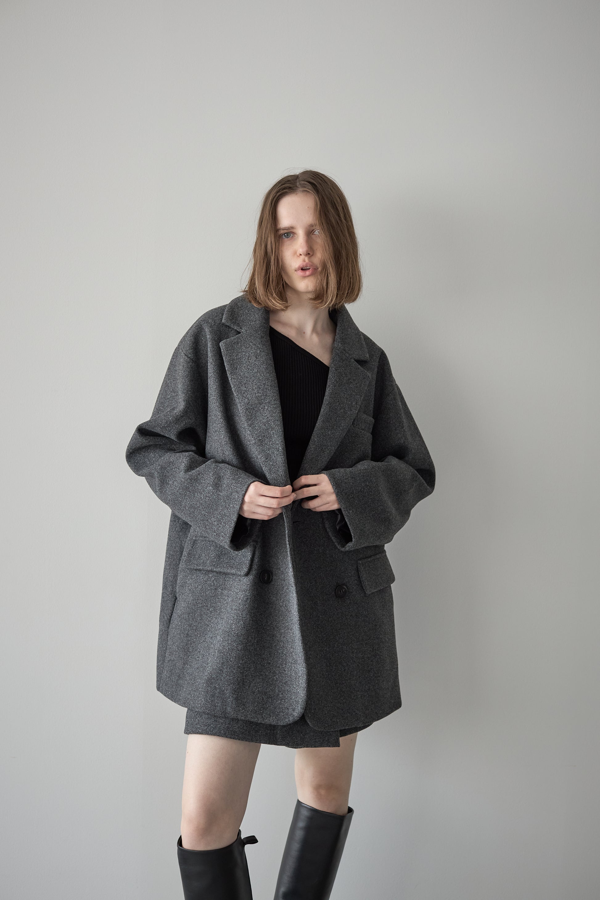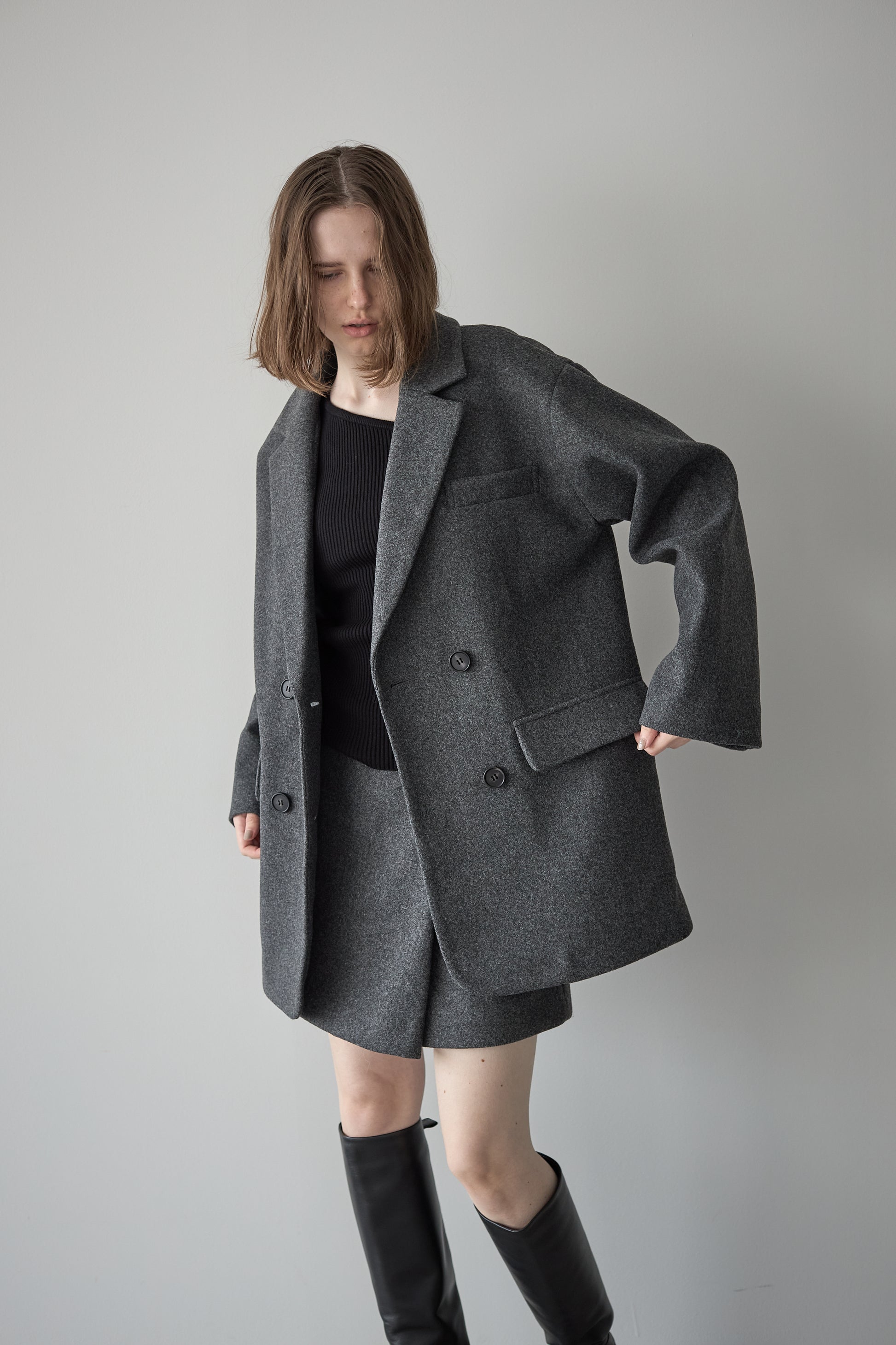 同素材のスコートとセットアップで着用すれば、端正でモードな雰囲気に仕上がります。