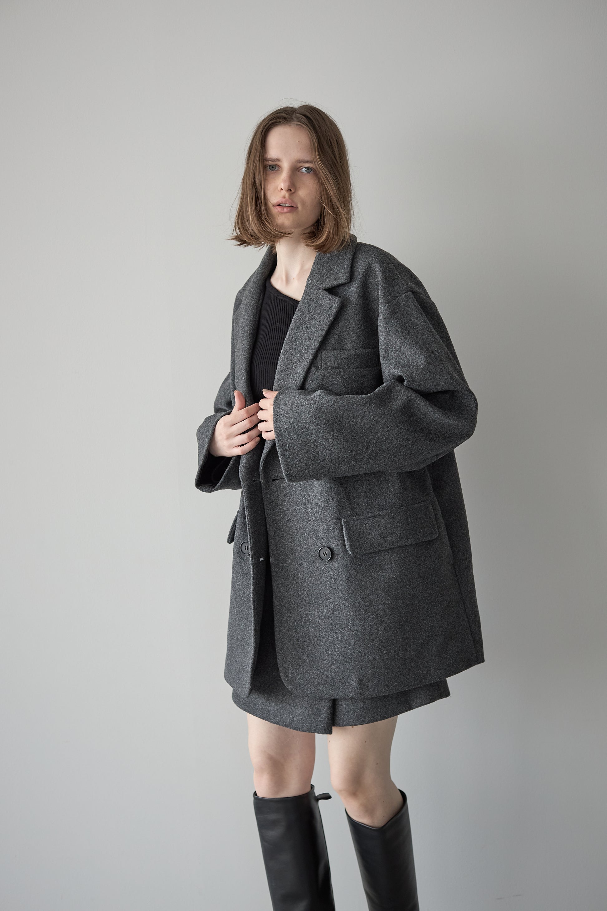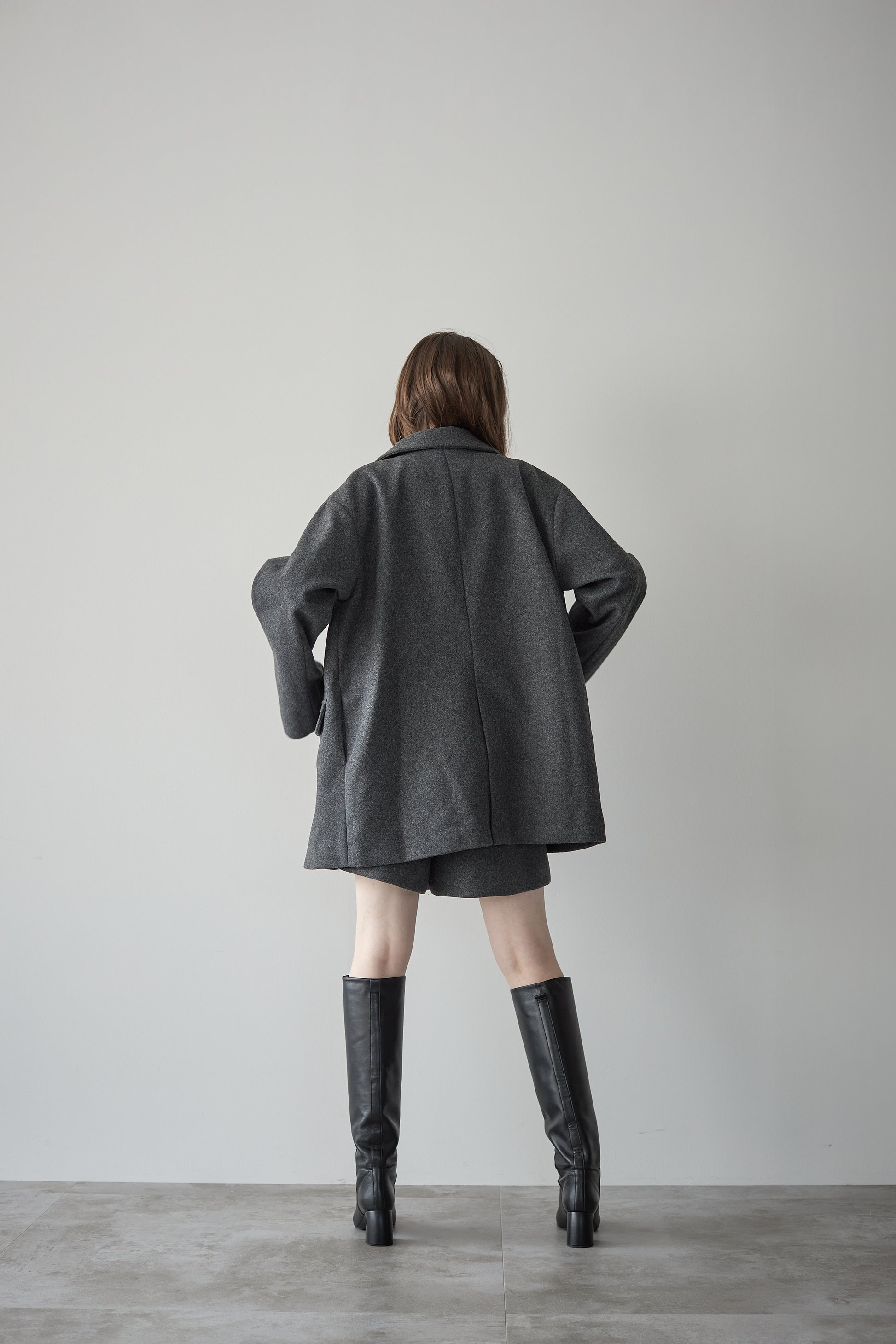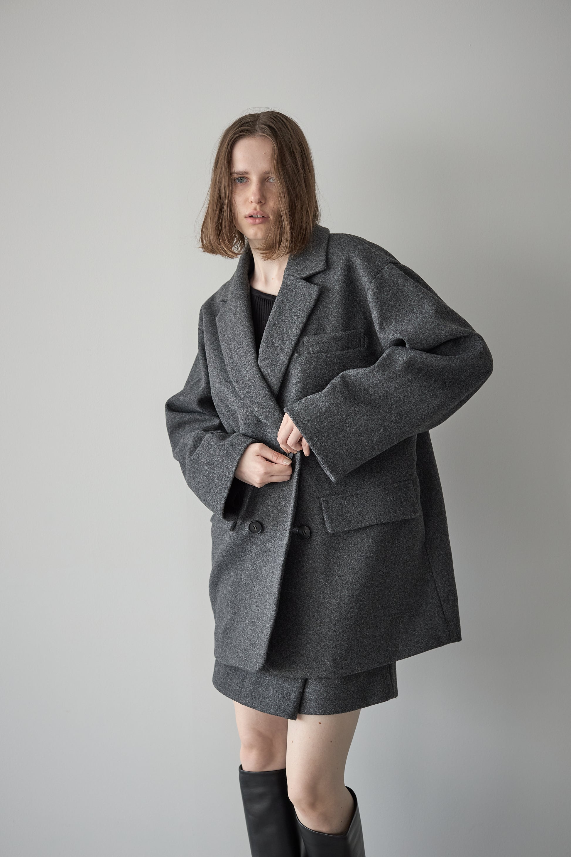 同素材のスコートとセットアップで着用すれば、端正でモードな雰囲気に仕上がります。