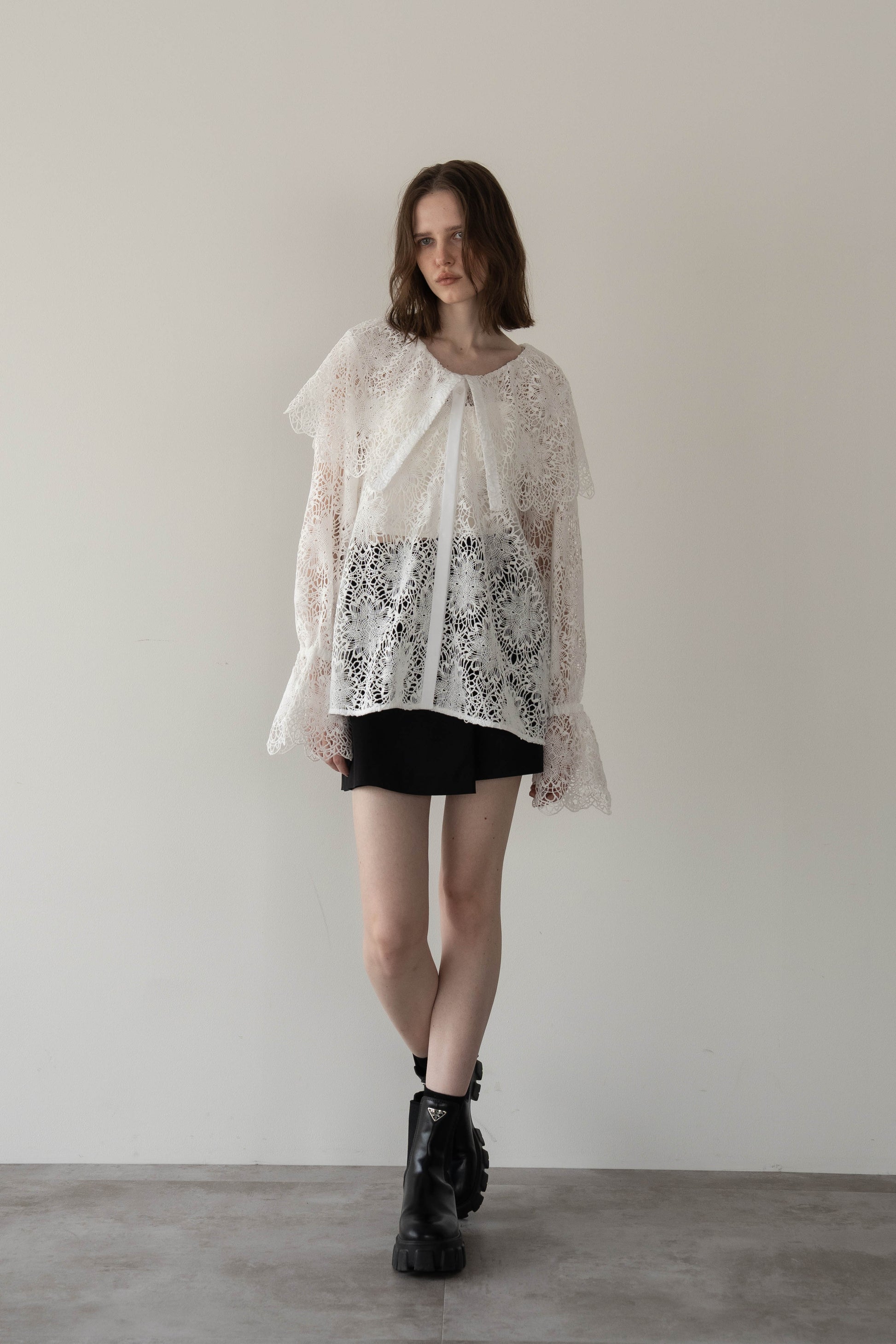 広がりすぎないシルエットで脚をすっきり見せ、動きやすさも◎。