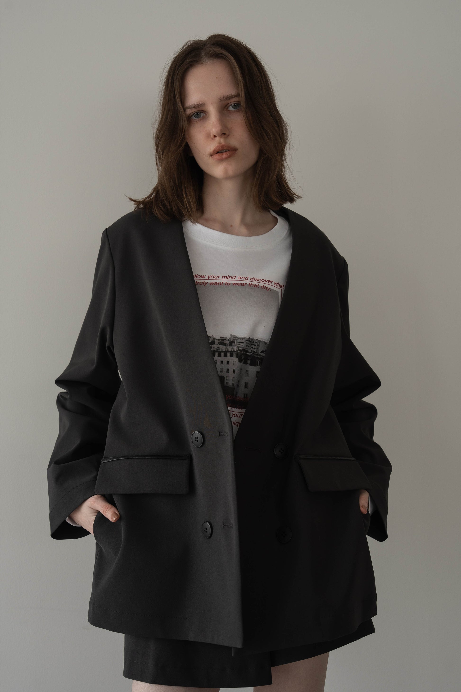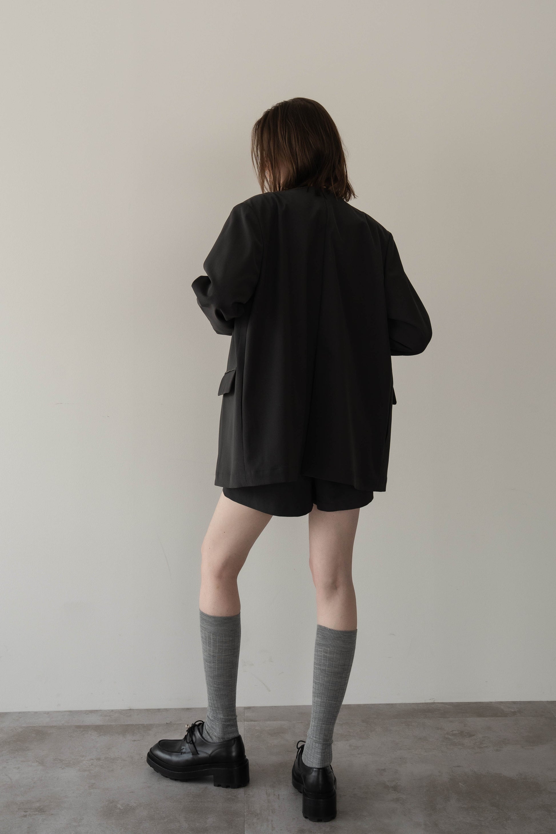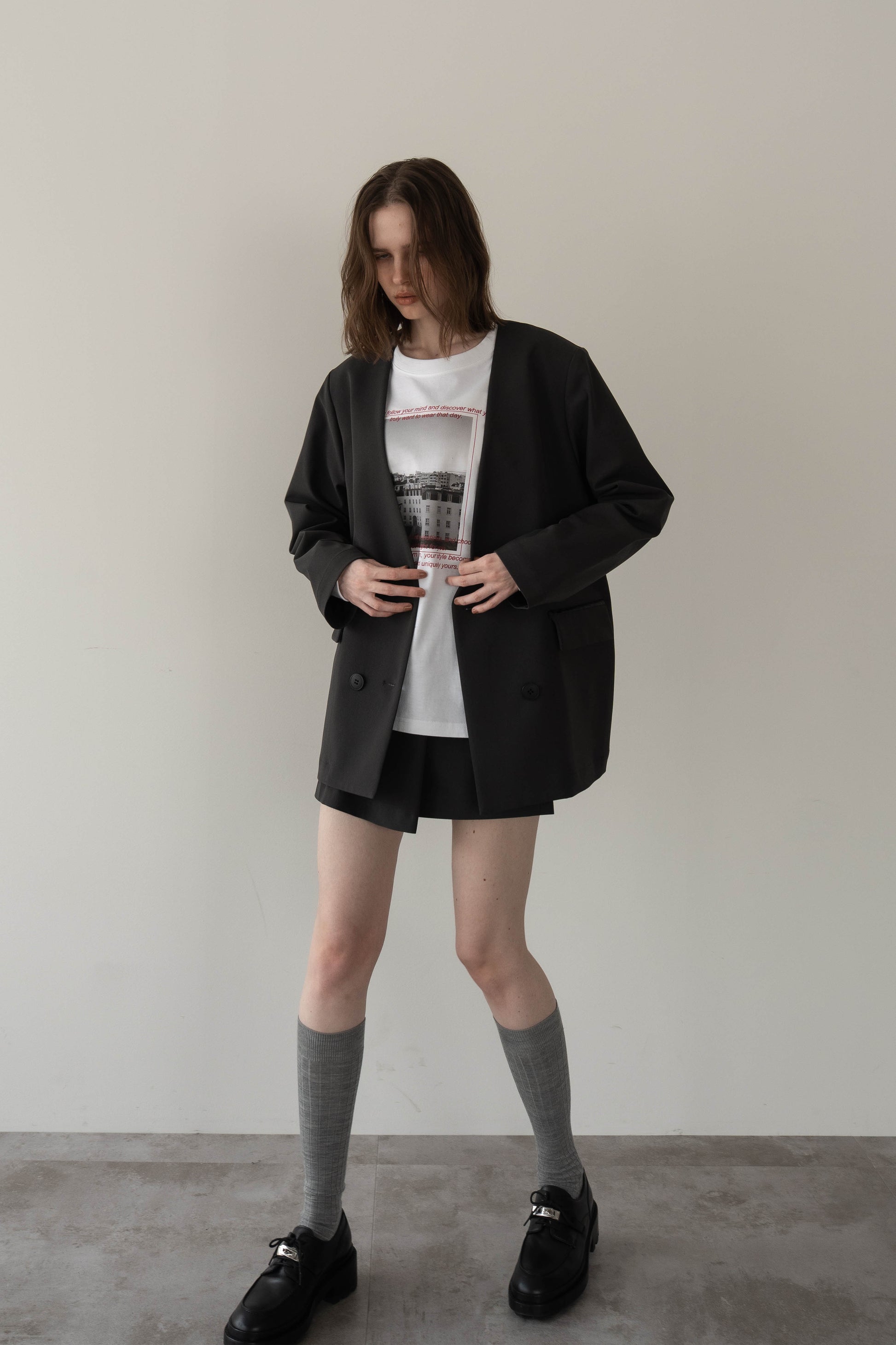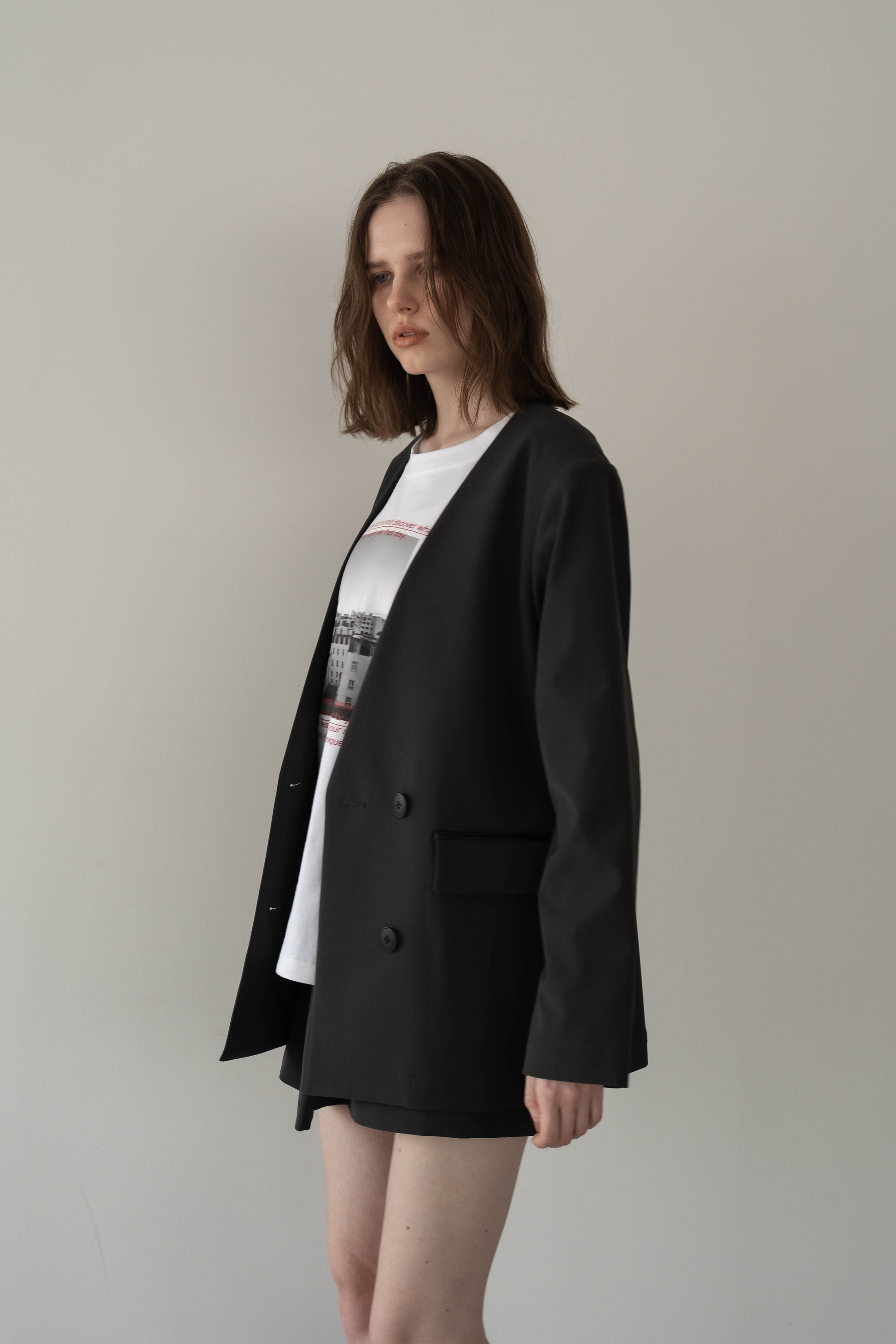 無駄を削ぎ落としたミニマルなノーカラージャケット。