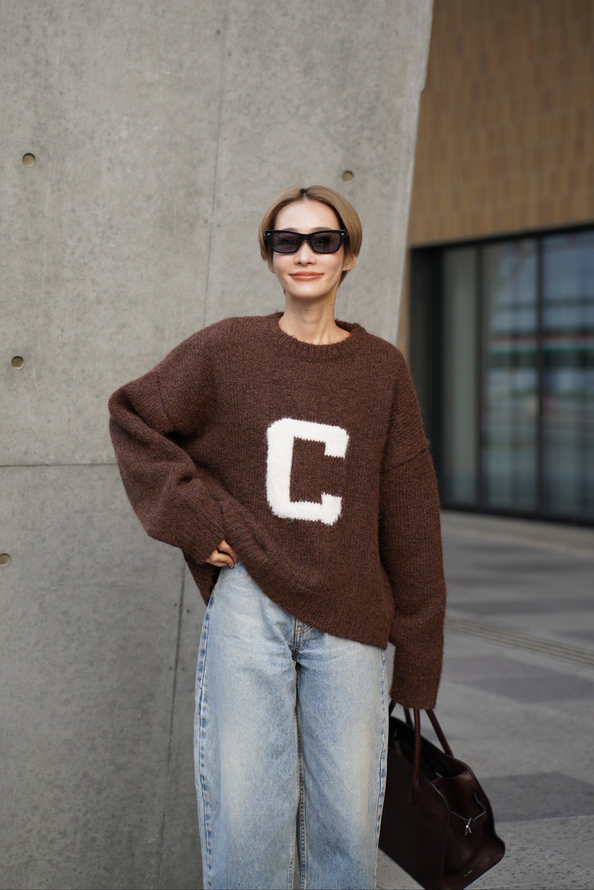 "大人のスタイリングに程よい遊び心を添える、ハンドメイドロゴニット"
