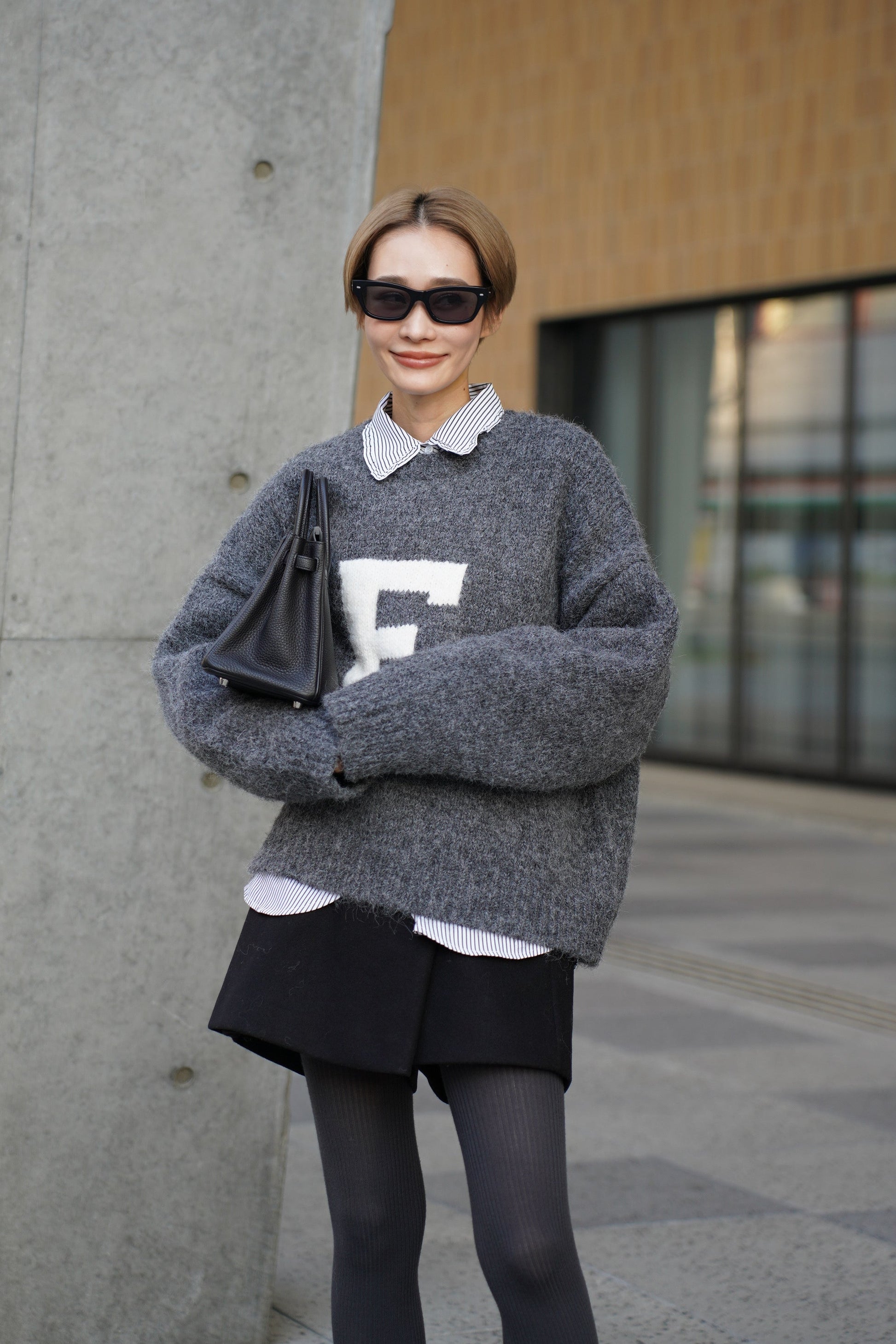 "大人のスタイリングに程よい遊び心を添える、ハンドメイドロゴニット"