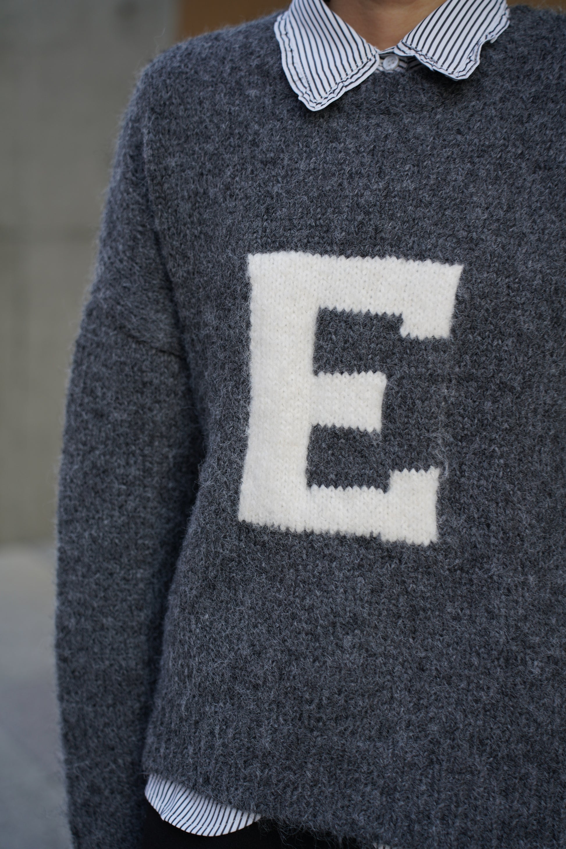 ふんわりとした柔らかな編み地に、手編みならではの立体感のある“E”ロゴをあしらいました。