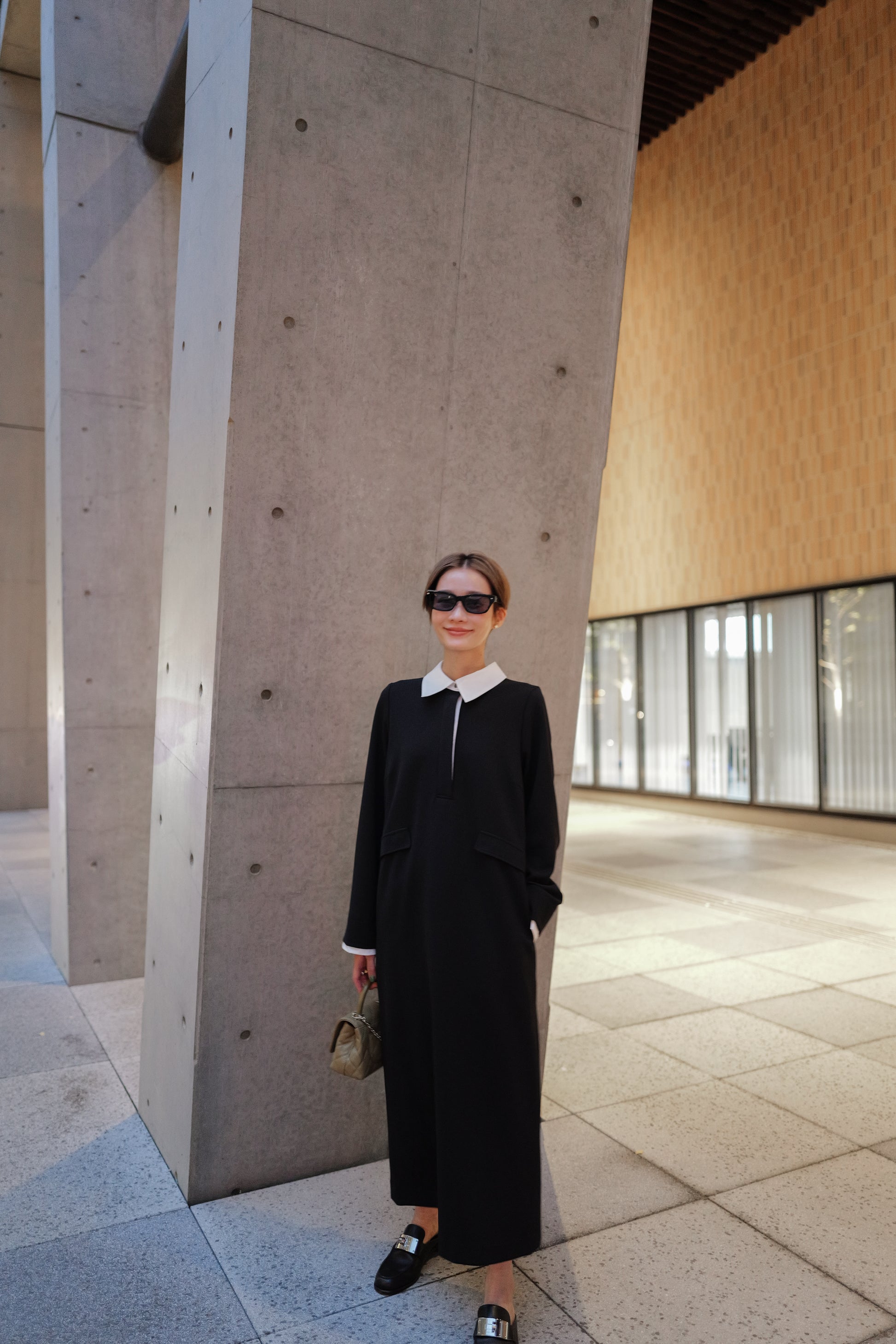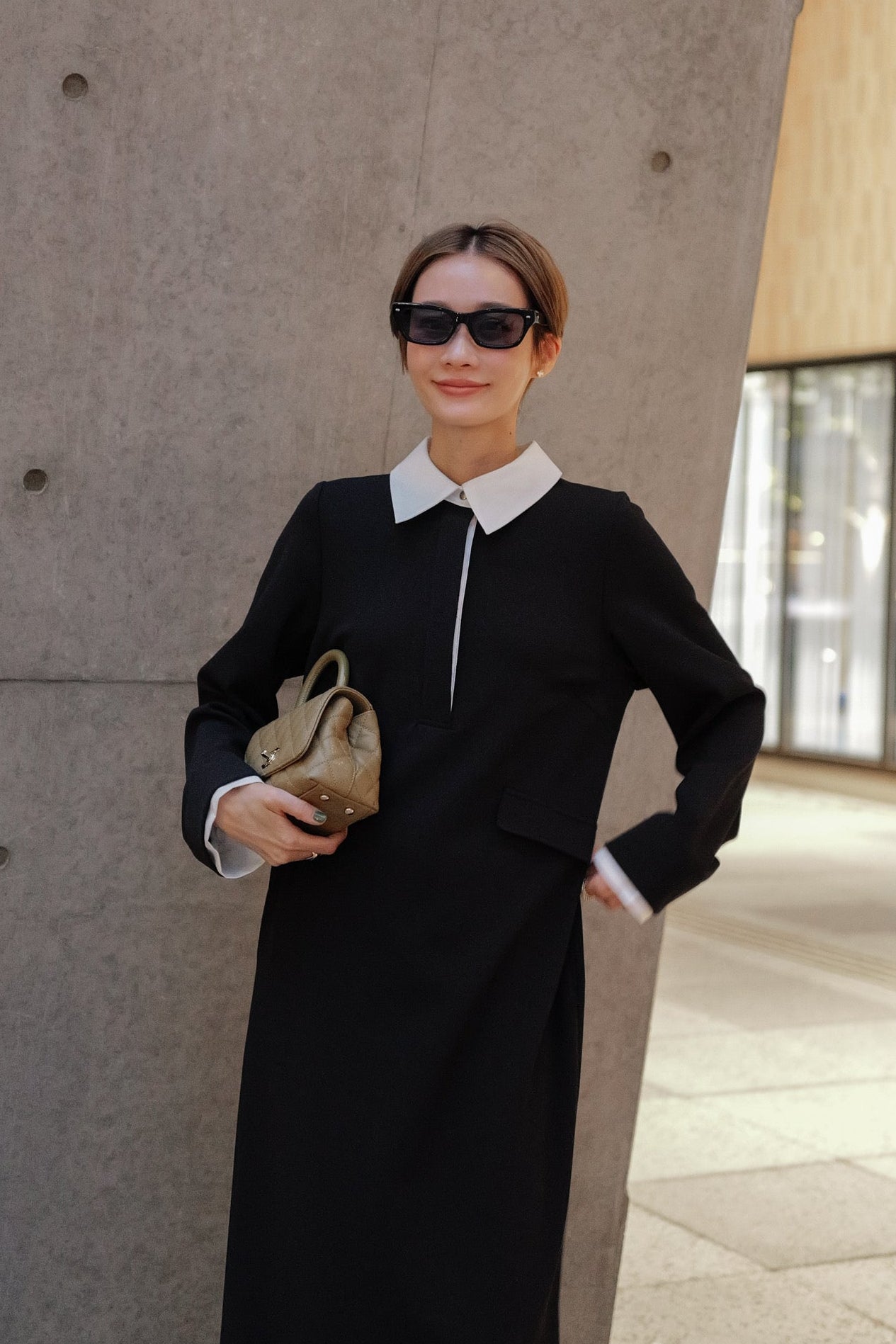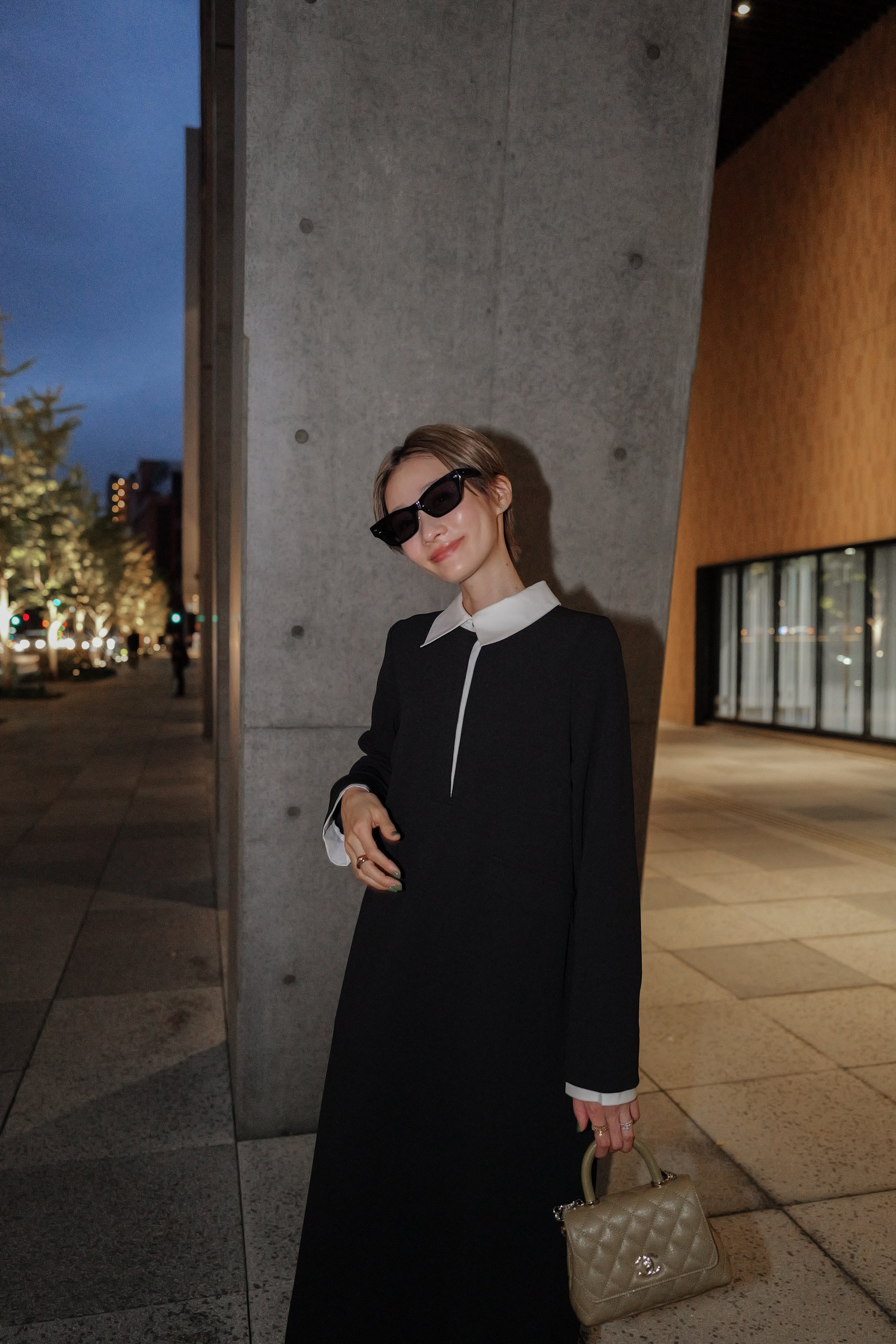 軽やかなジョーゼット素材で仕立てた、上品なバイカラードレス。