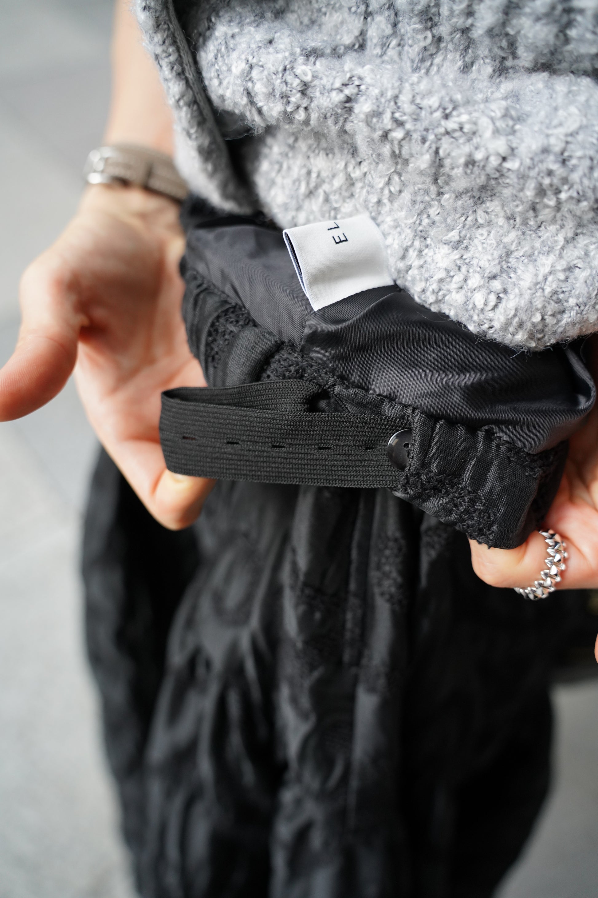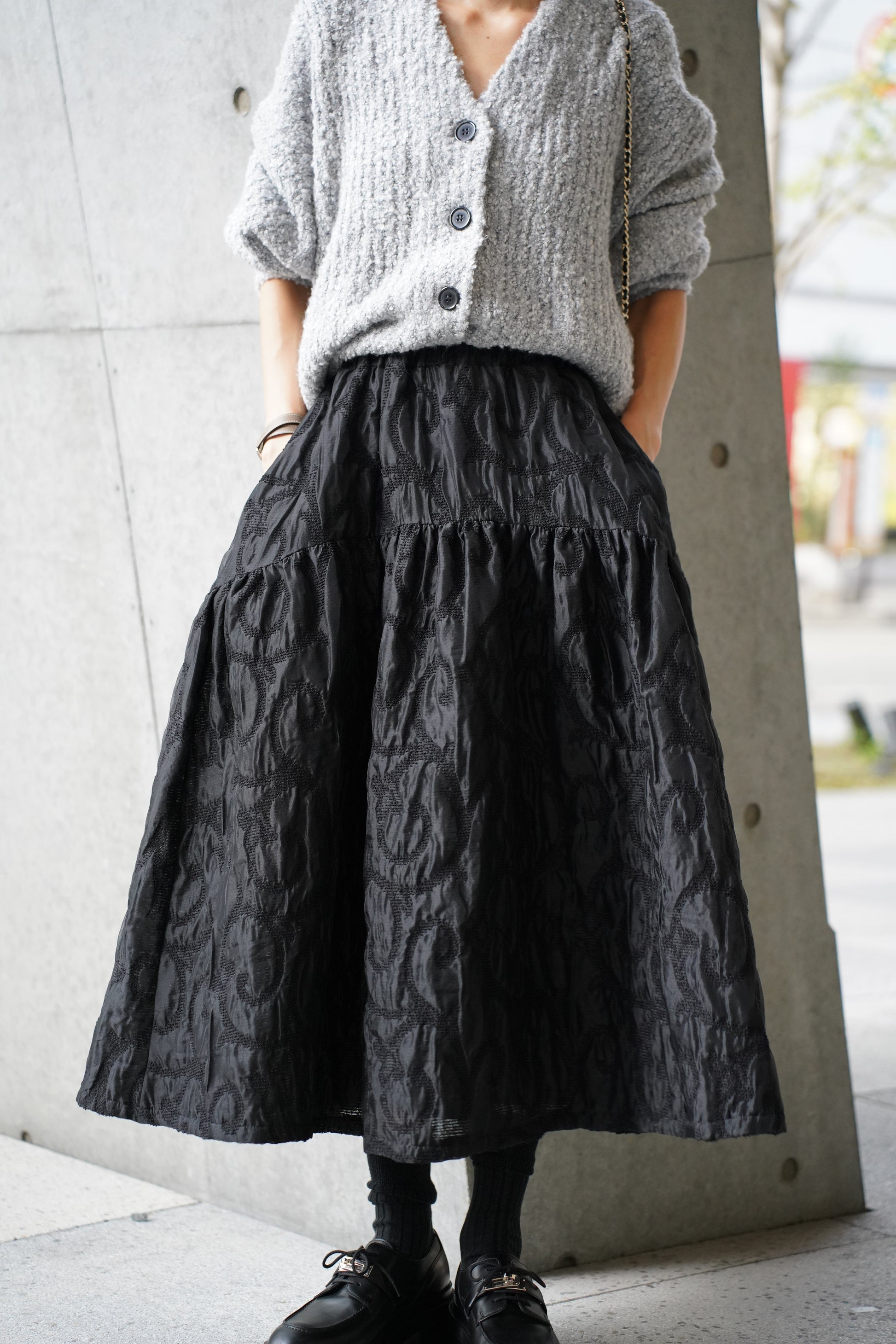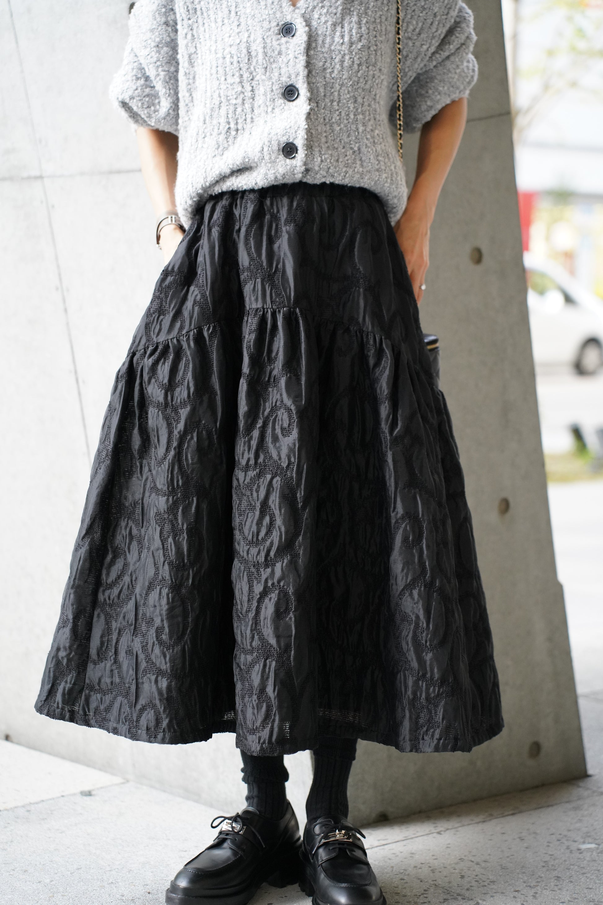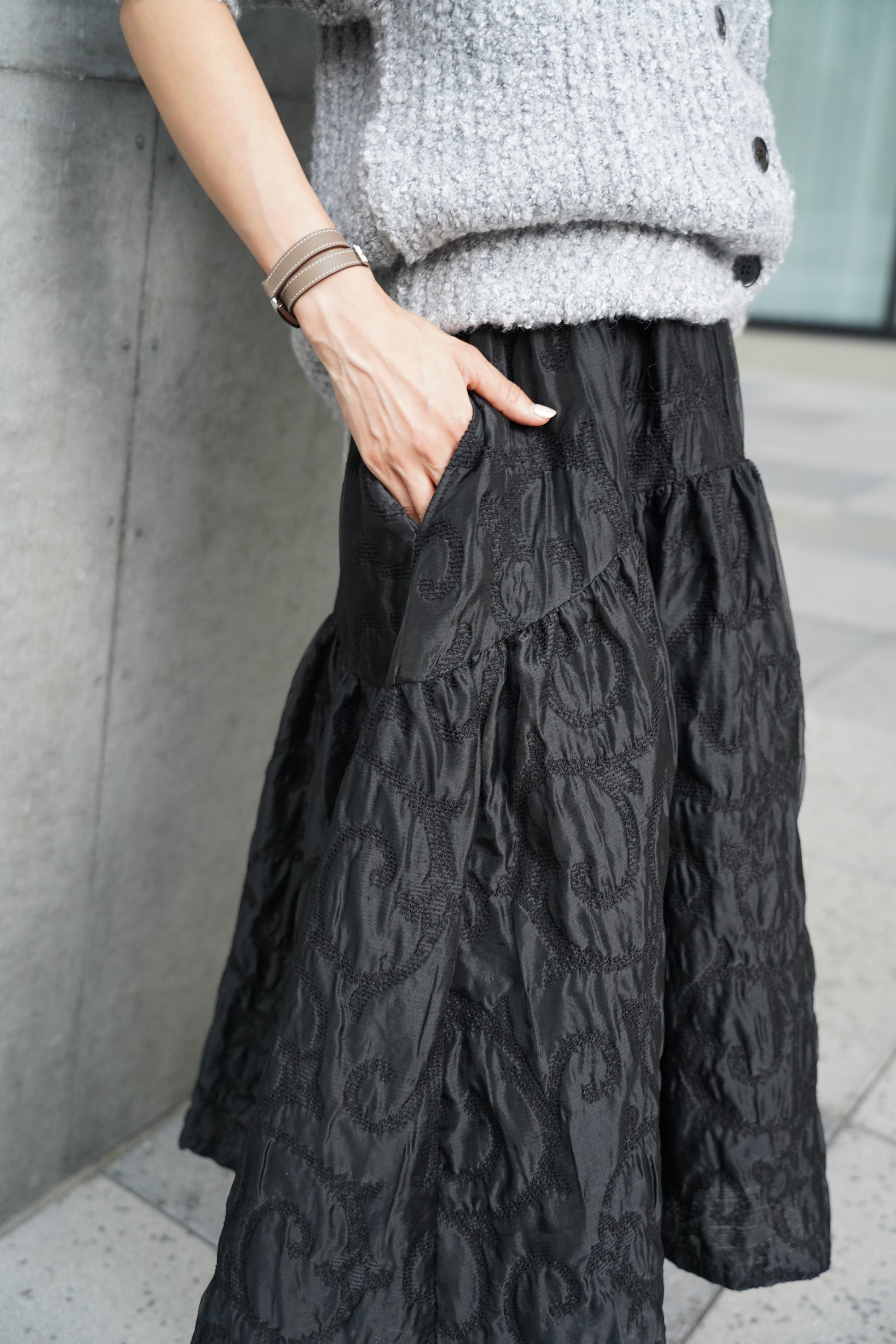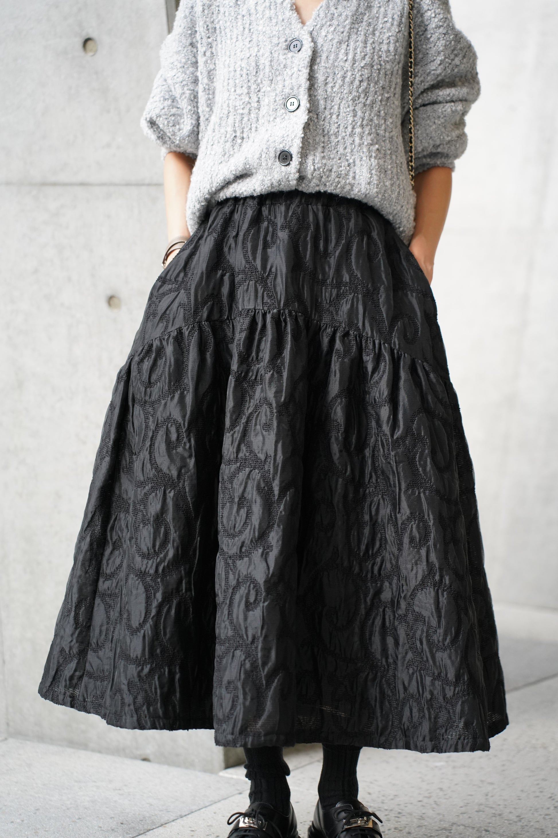 トルコ産のジャカード生地を使用した、存在感あふれるスカート。