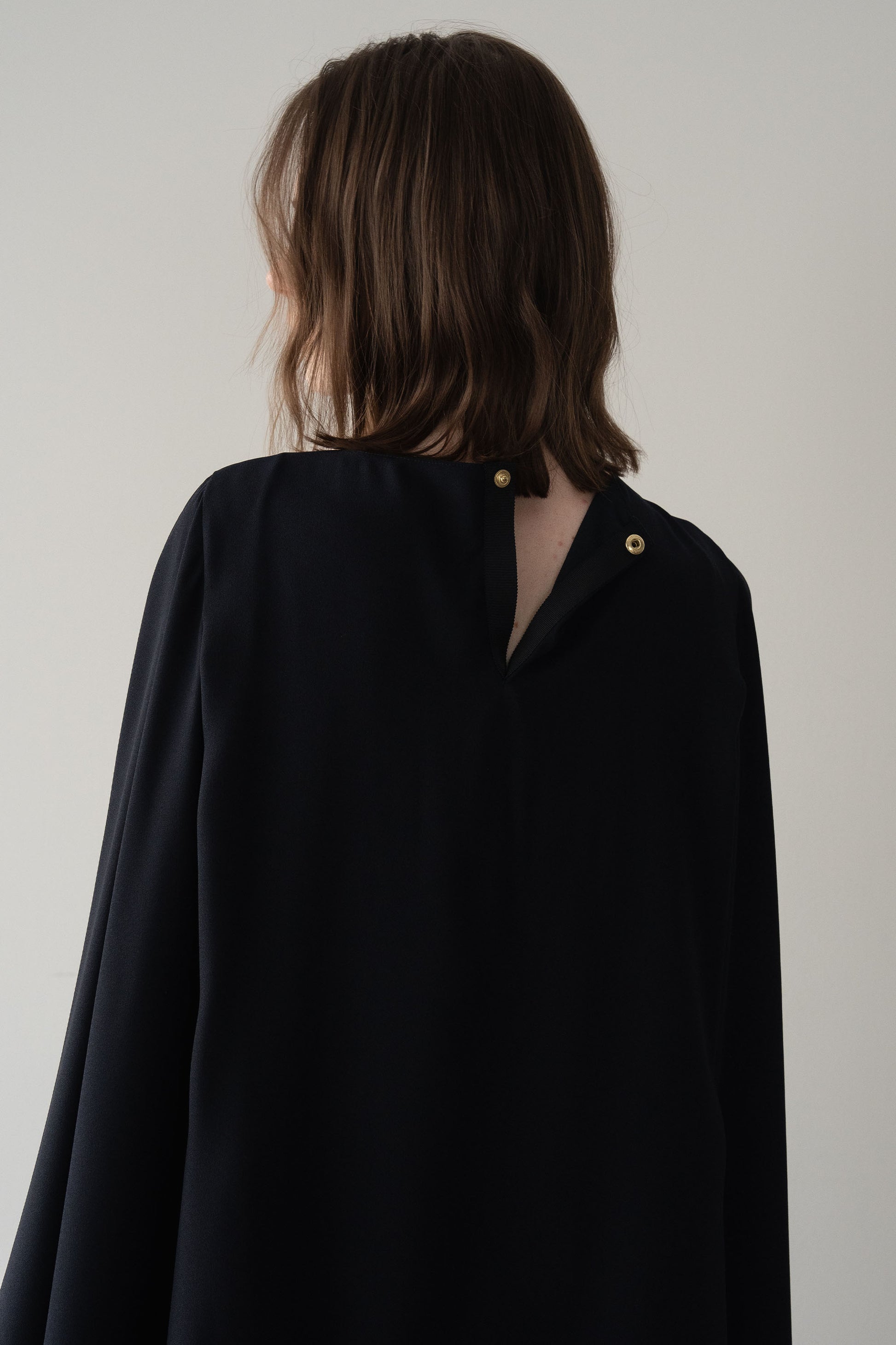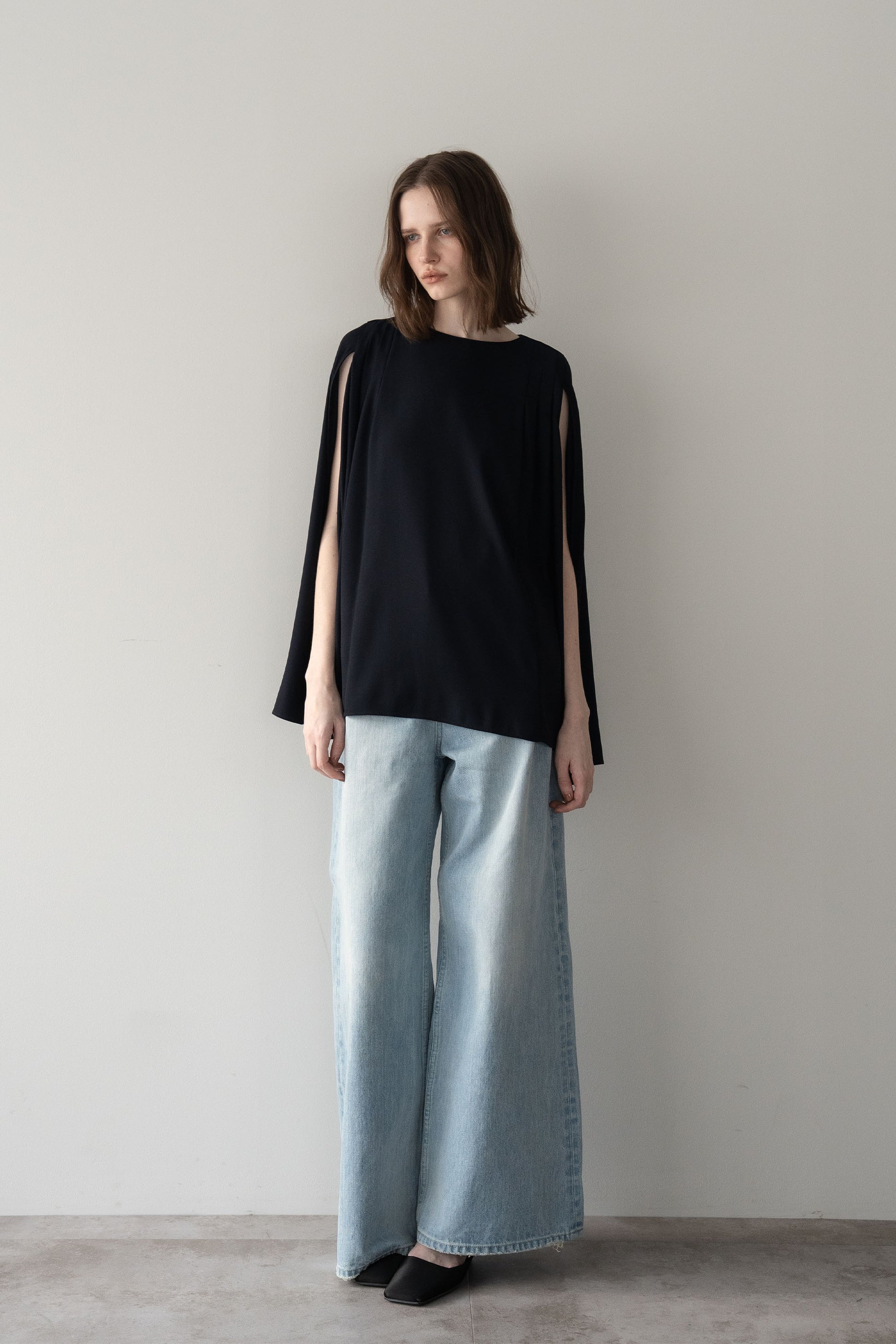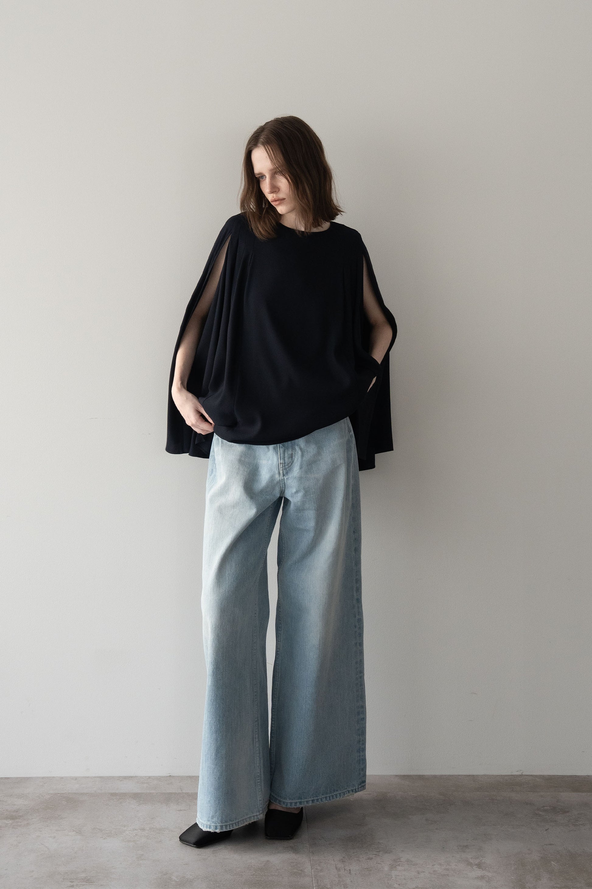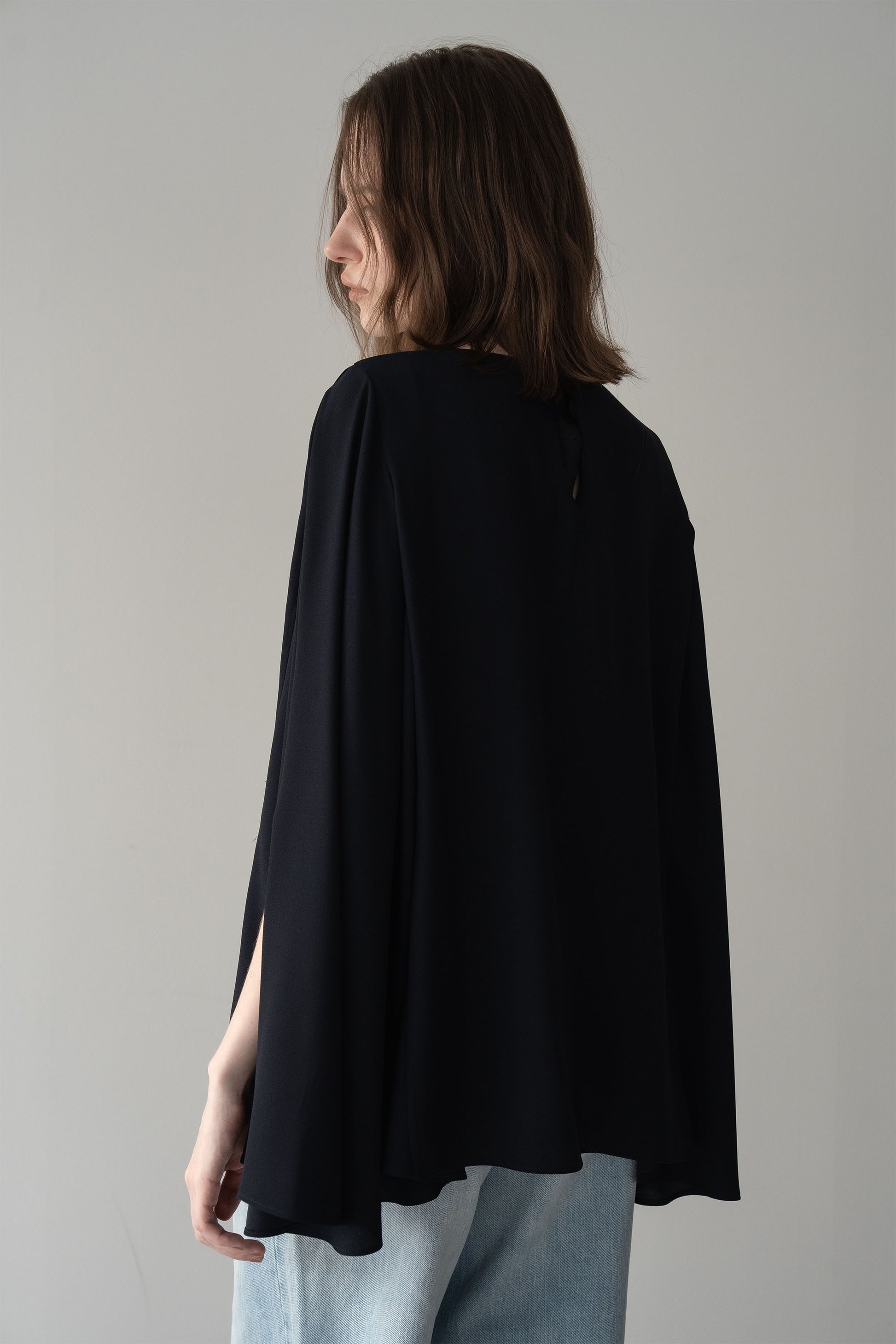 “動きのあるシルエットが印象的な、ポンチョブラウス”