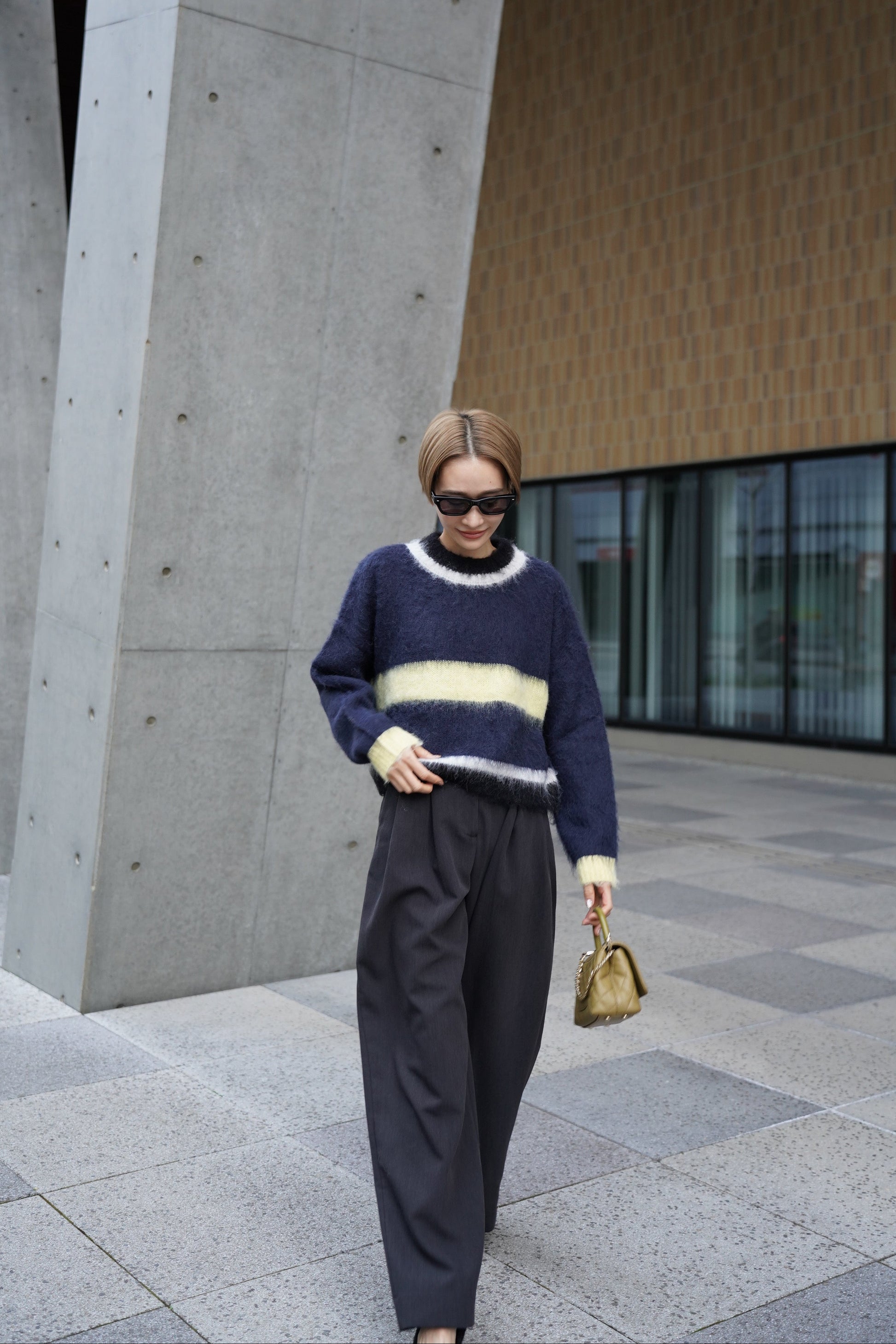 モヘア特有のふわりと軽い質感が、スタイリングに奥行きと抜け感を与えます。