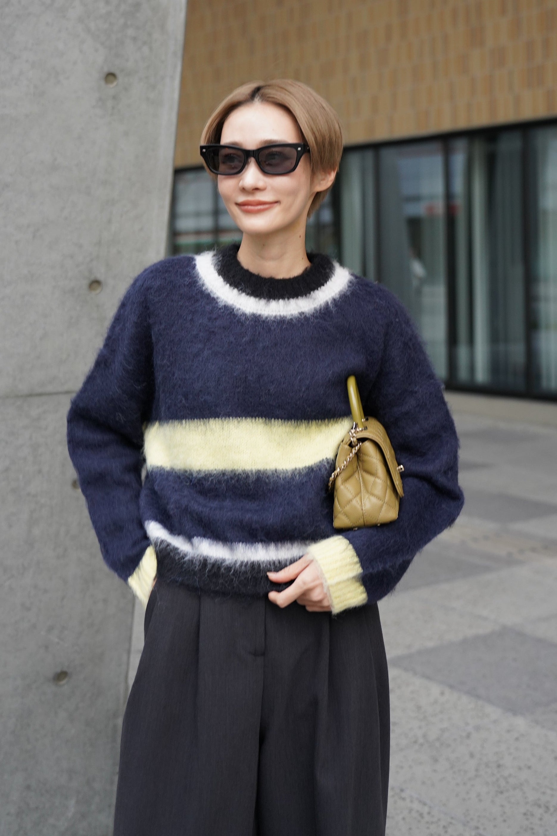 "柔らかく溶け合うような配色が目を惹く、モヘアニット"